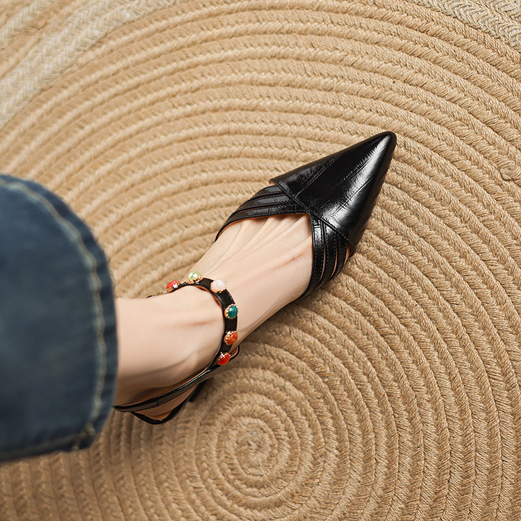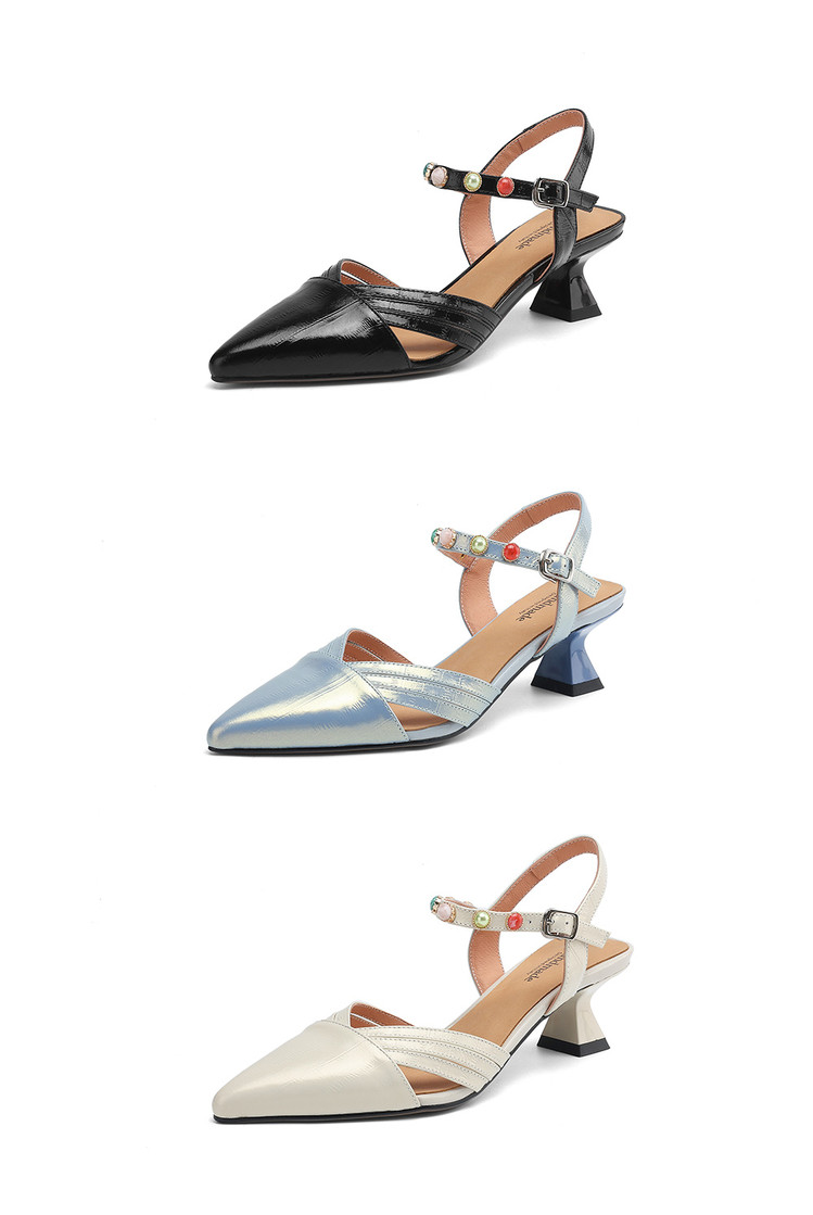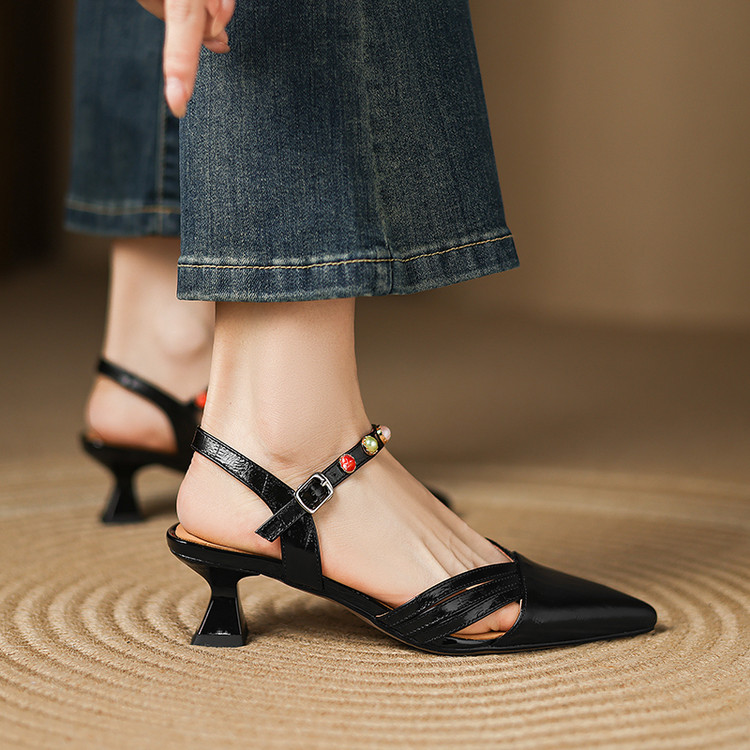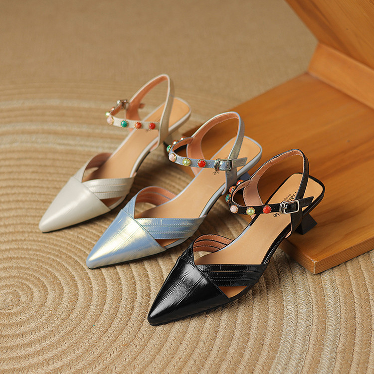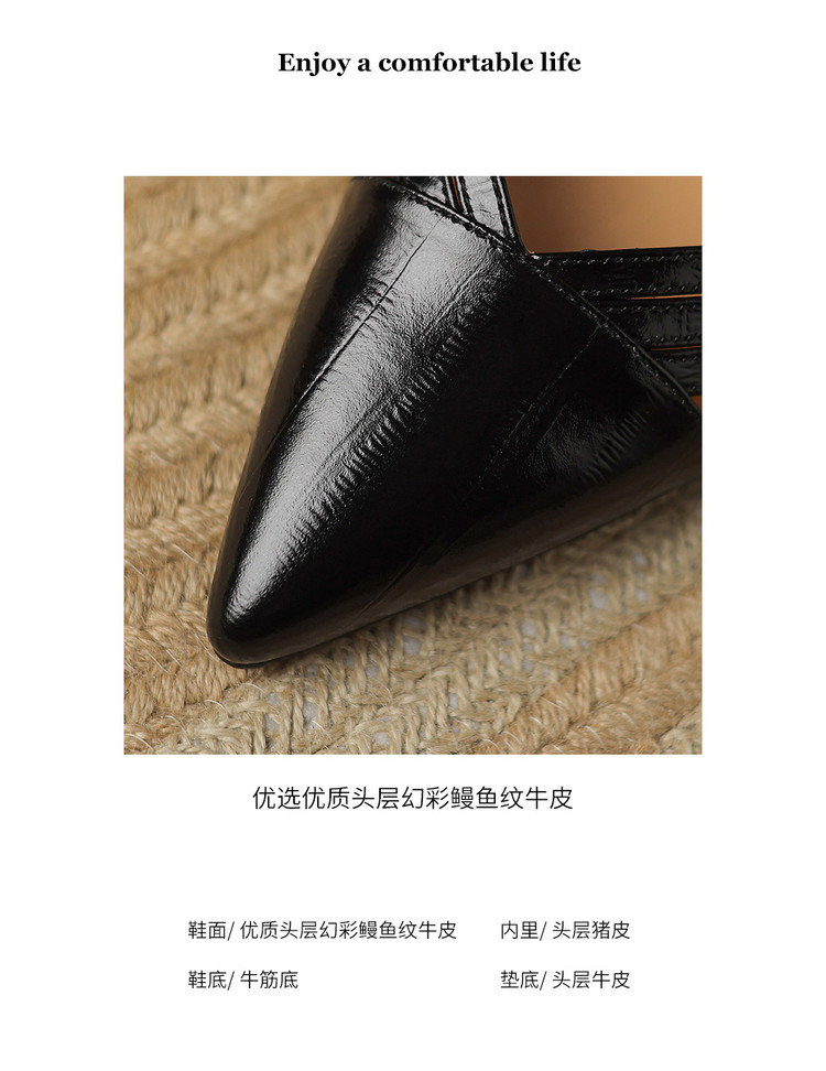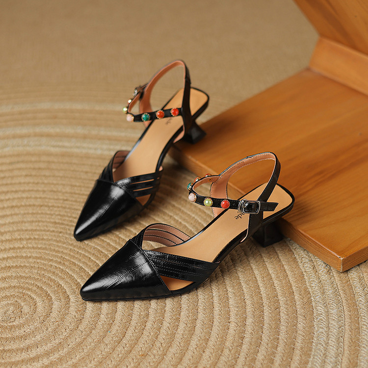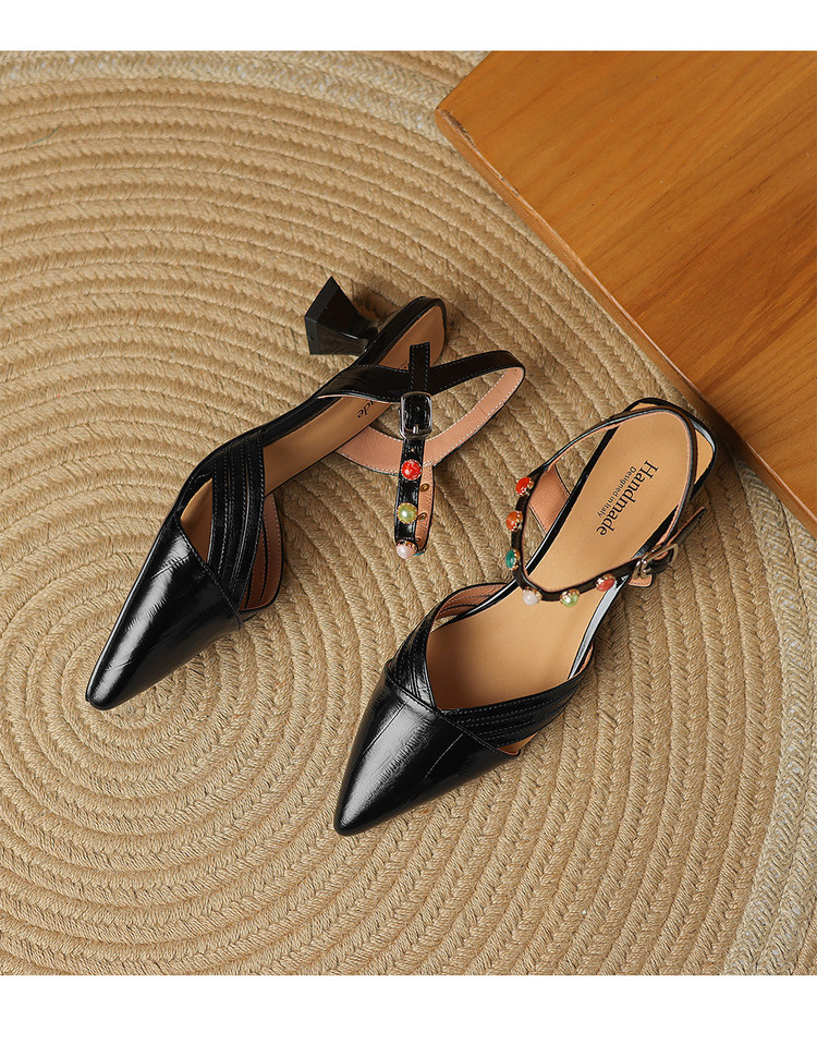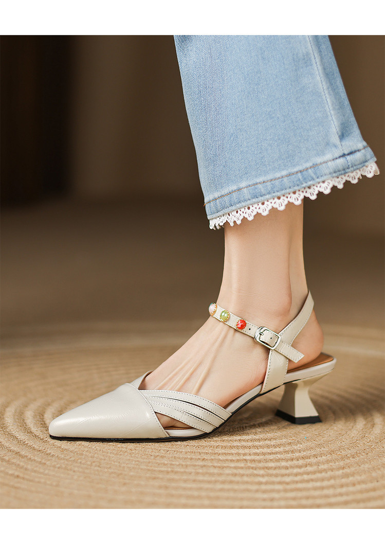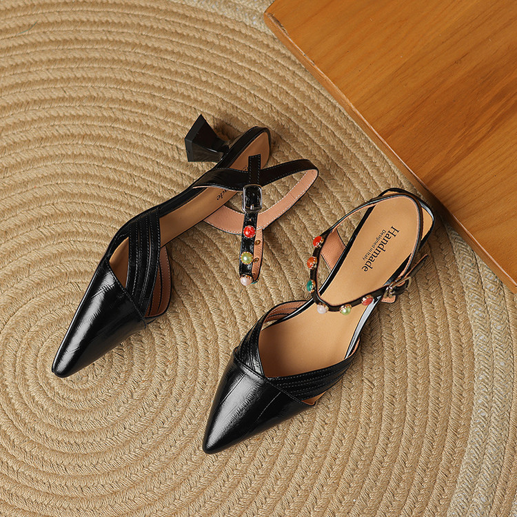 【预售5天】兰色尖头凉鞋女款夏季高跟鞋女粗跟镂空法式气质一字带包头单鞋女LD&7346