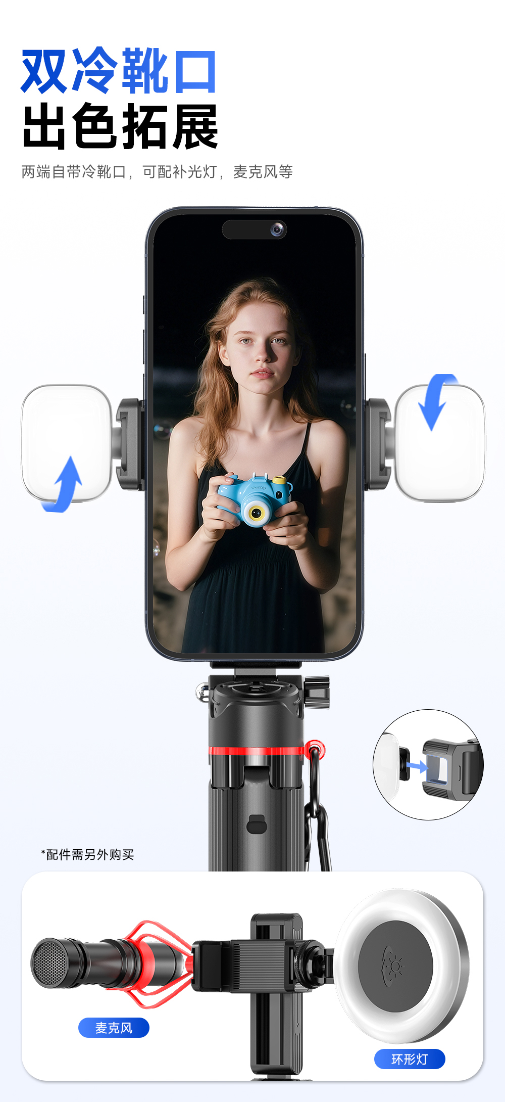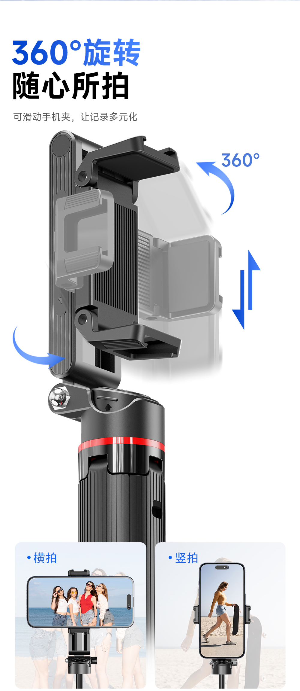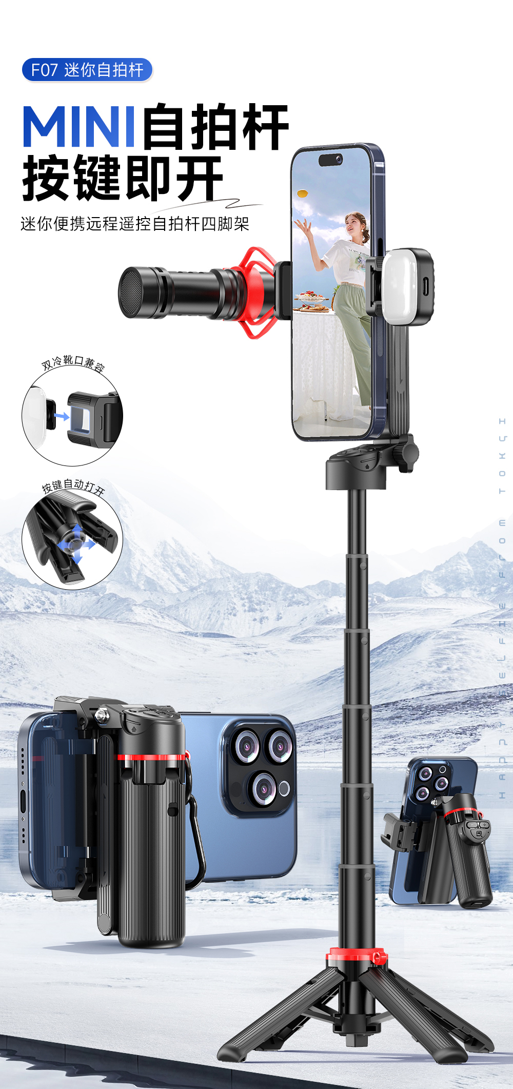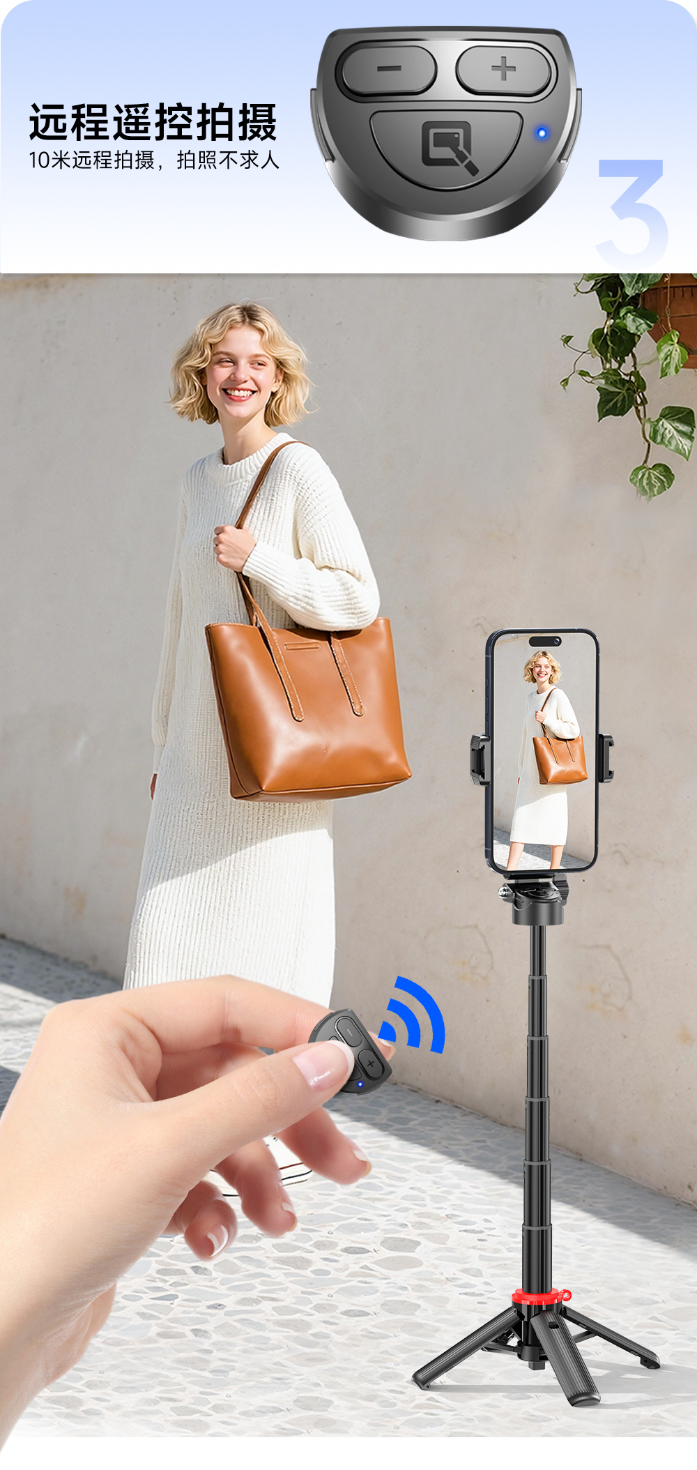 [迷你携带/360度万向/变焦遥控/一键弹开] 变焦自拍杆蓝牙手机助拍拍照神器拍摄适用华为苹果迷你便携落地三脚架支架手持稳定多功能