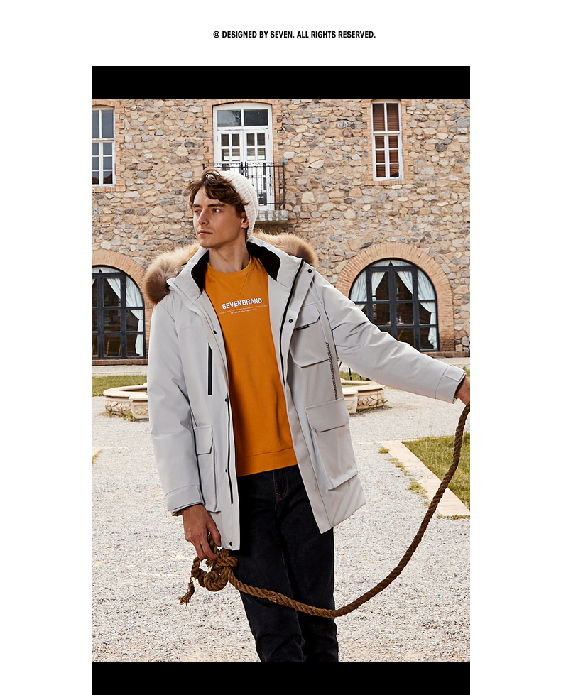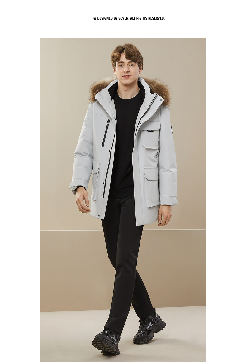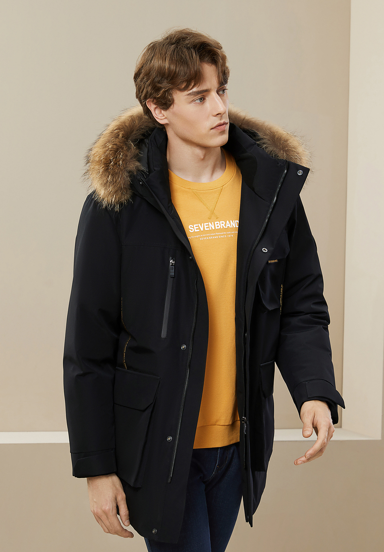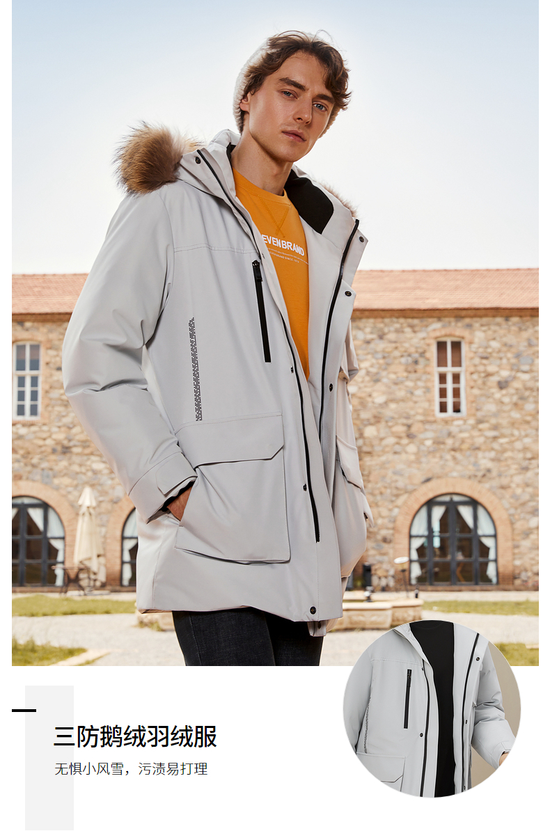 【三防】柒牌中长款羽绒服男冬季新款时尚休闲石墨烯保暖外套 125E70750