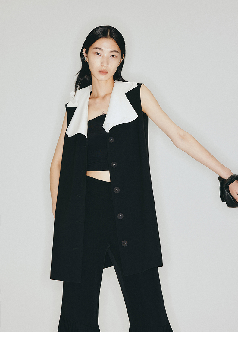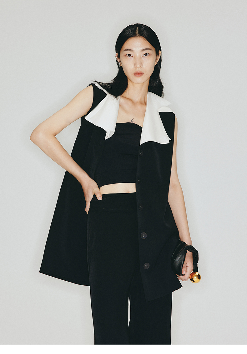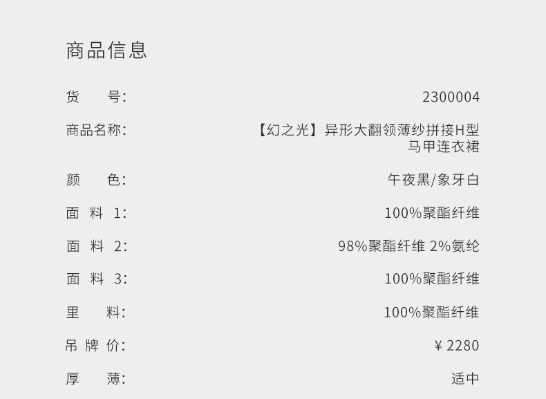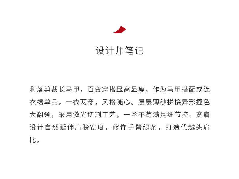 【幻之光】异形大翻领薄纱拼接H型马甲连衣裙/2300004