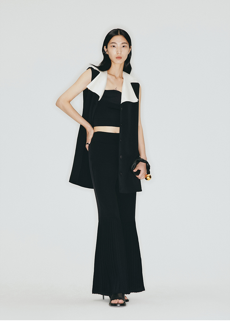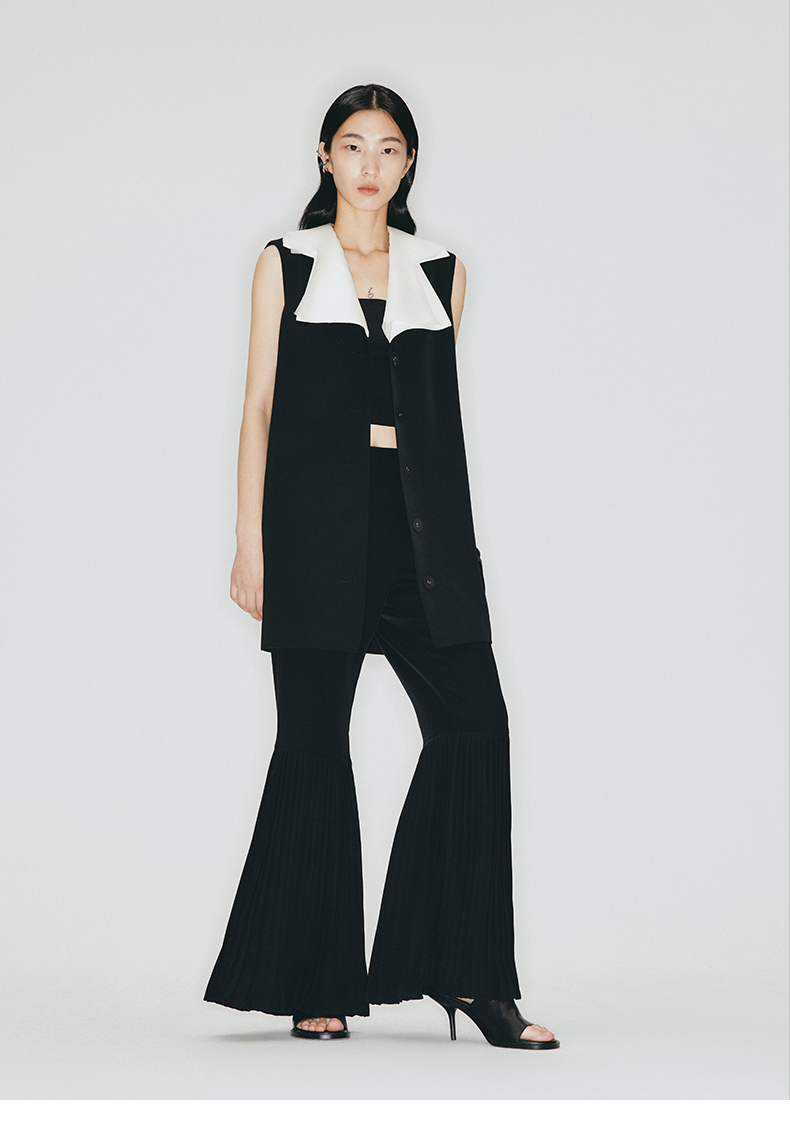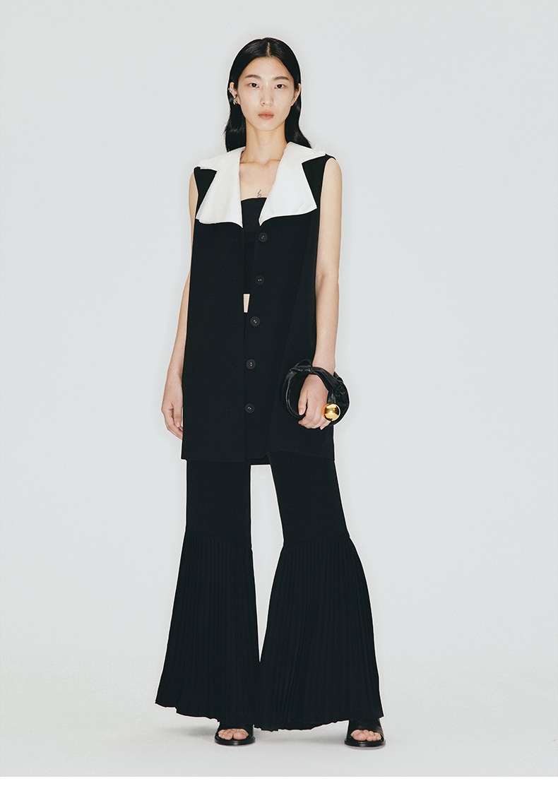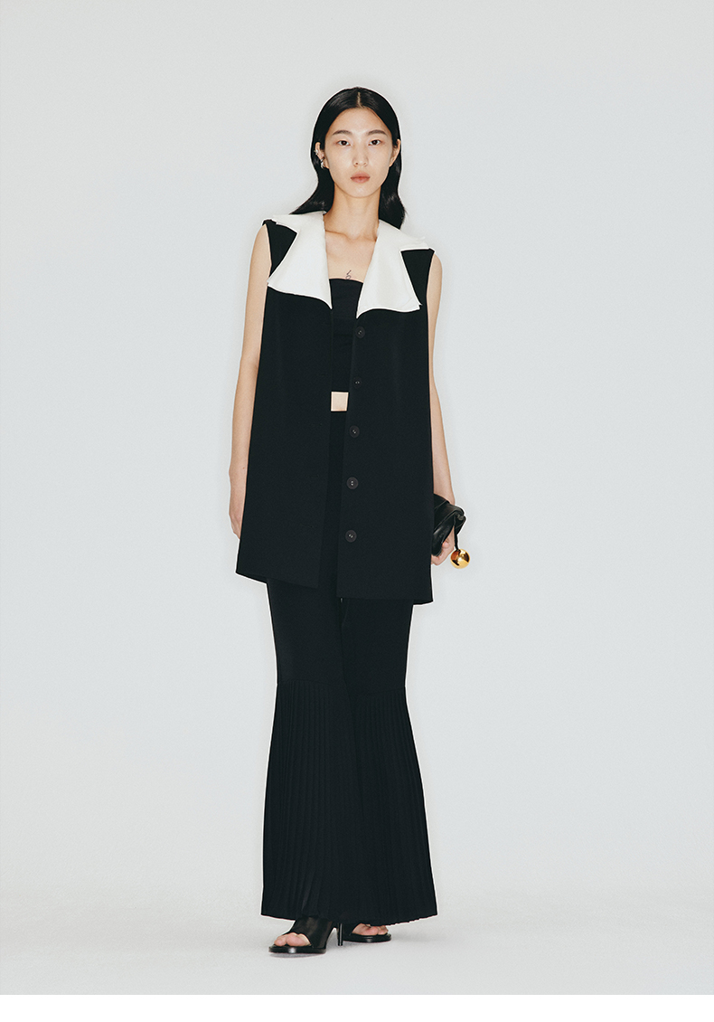 【幻之光】异形大翻领薄纱拼接H型马甲连衣裙/2300004