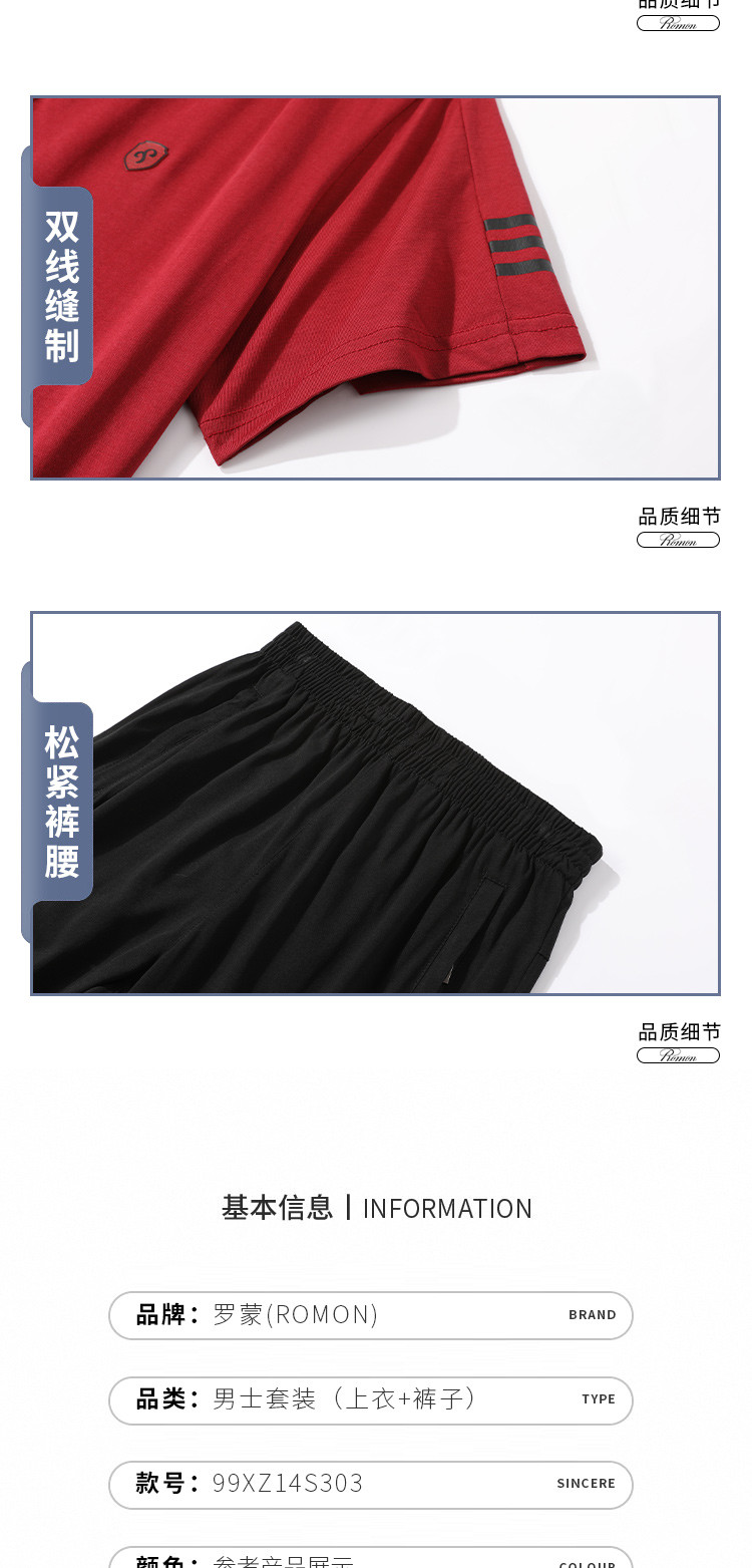 【上衣+裤子】罗蒙夏季新款男士套装 新疆长绒棉 凉爽透气 绵柔亲肤 休闲短袖两件套
