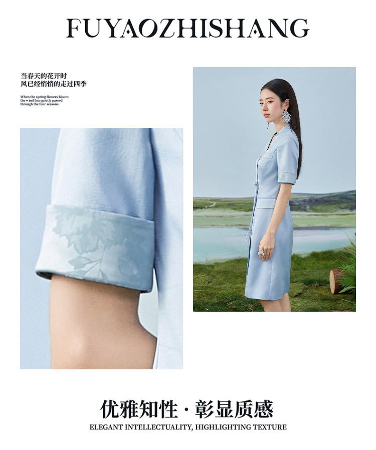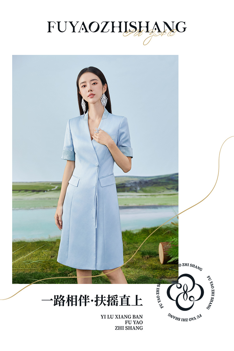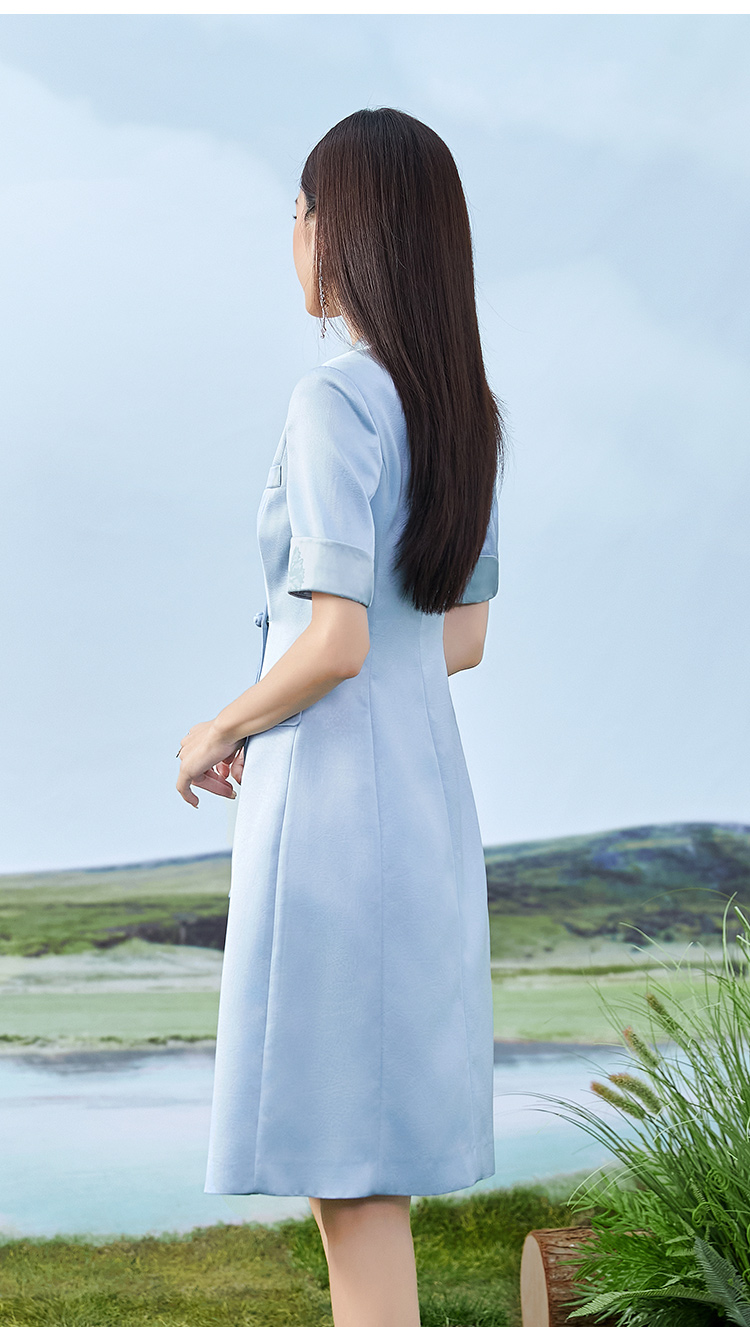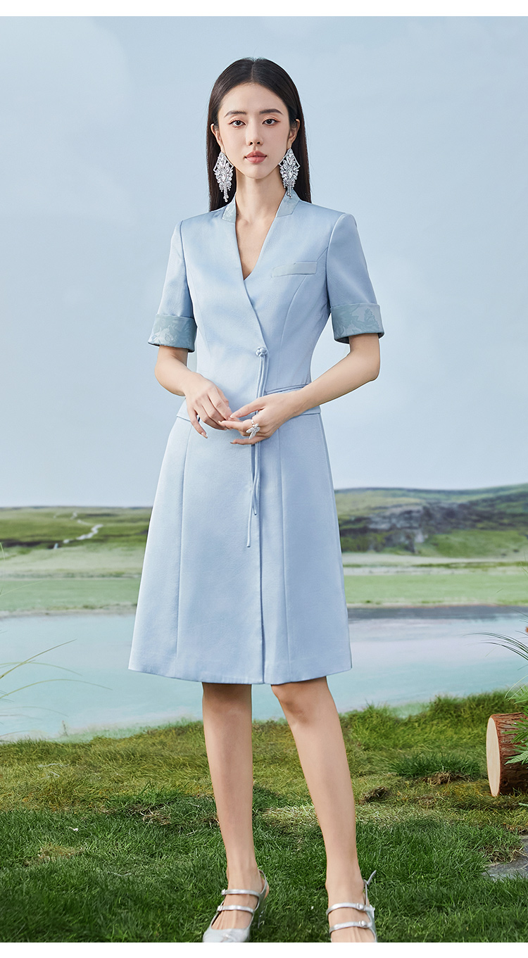 IWY/扶摇系列 蓝色夏季职场轻熟风国风盘扣西装裙FYQ371