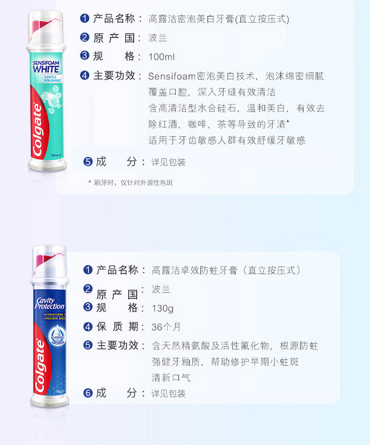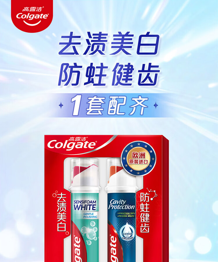 高露洁卓效防蛀+焕白臻效(直立式)牙膏组合装