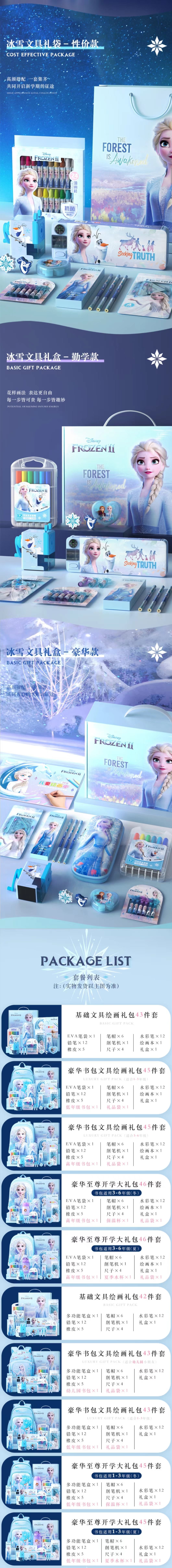 迪士尼(Disney)文具套装 开学礼物小学生书包文具礼盒 开学大礼包儿童生日礼物女孩 冰雪奇缘系列