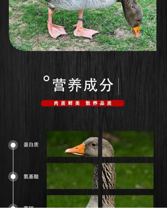 高品质雁鹅堪称与羊肉相媲美,雁鹅是杂食性动物肉质鲜嫩松软,清香不腻, 富含人体必需的多种氨基酸其中不饱含脂肪酸含量高,对健康十分有利。