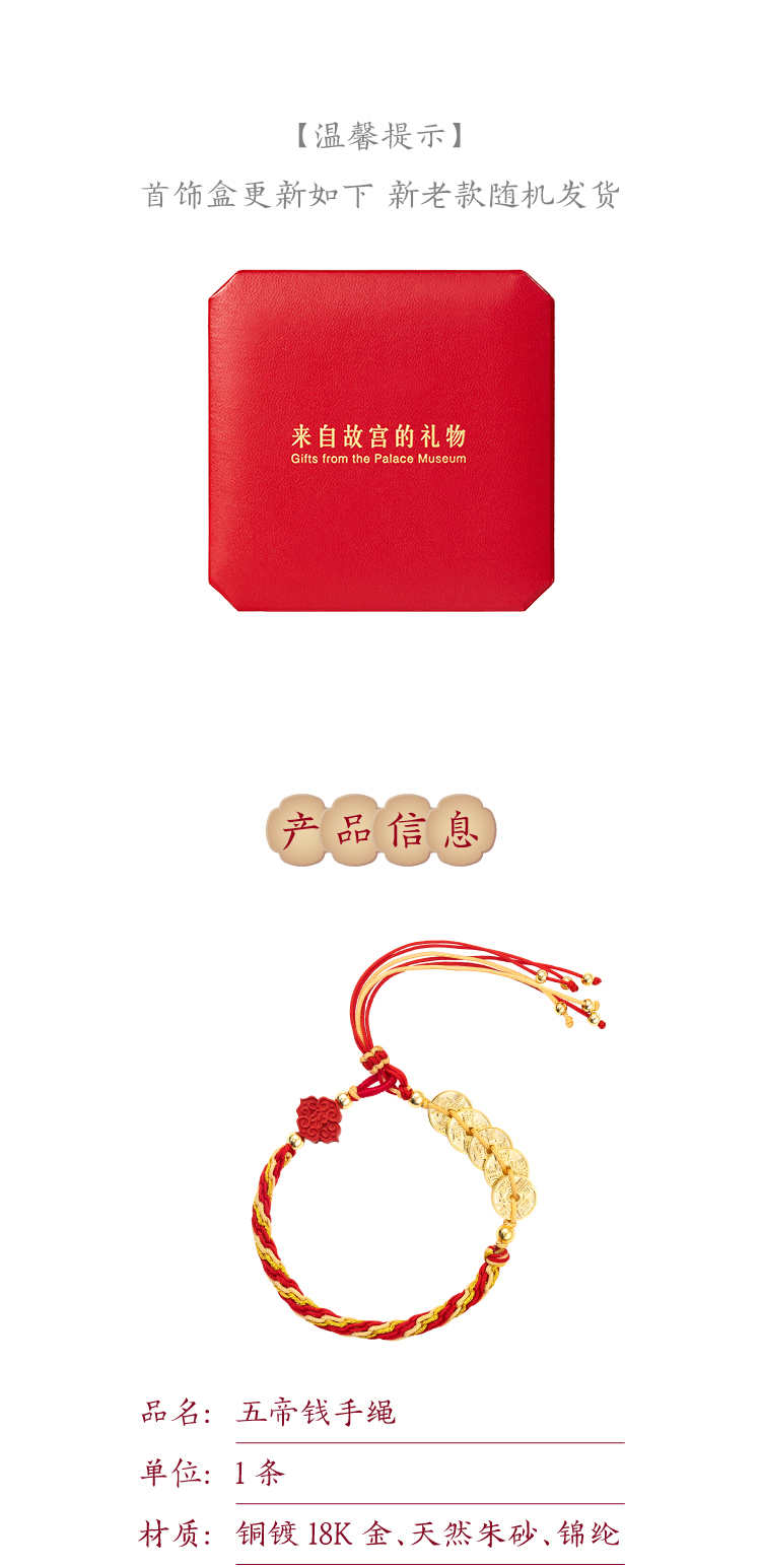 【故宫饰品】五帝钱红手绳本命年手串生日礼物