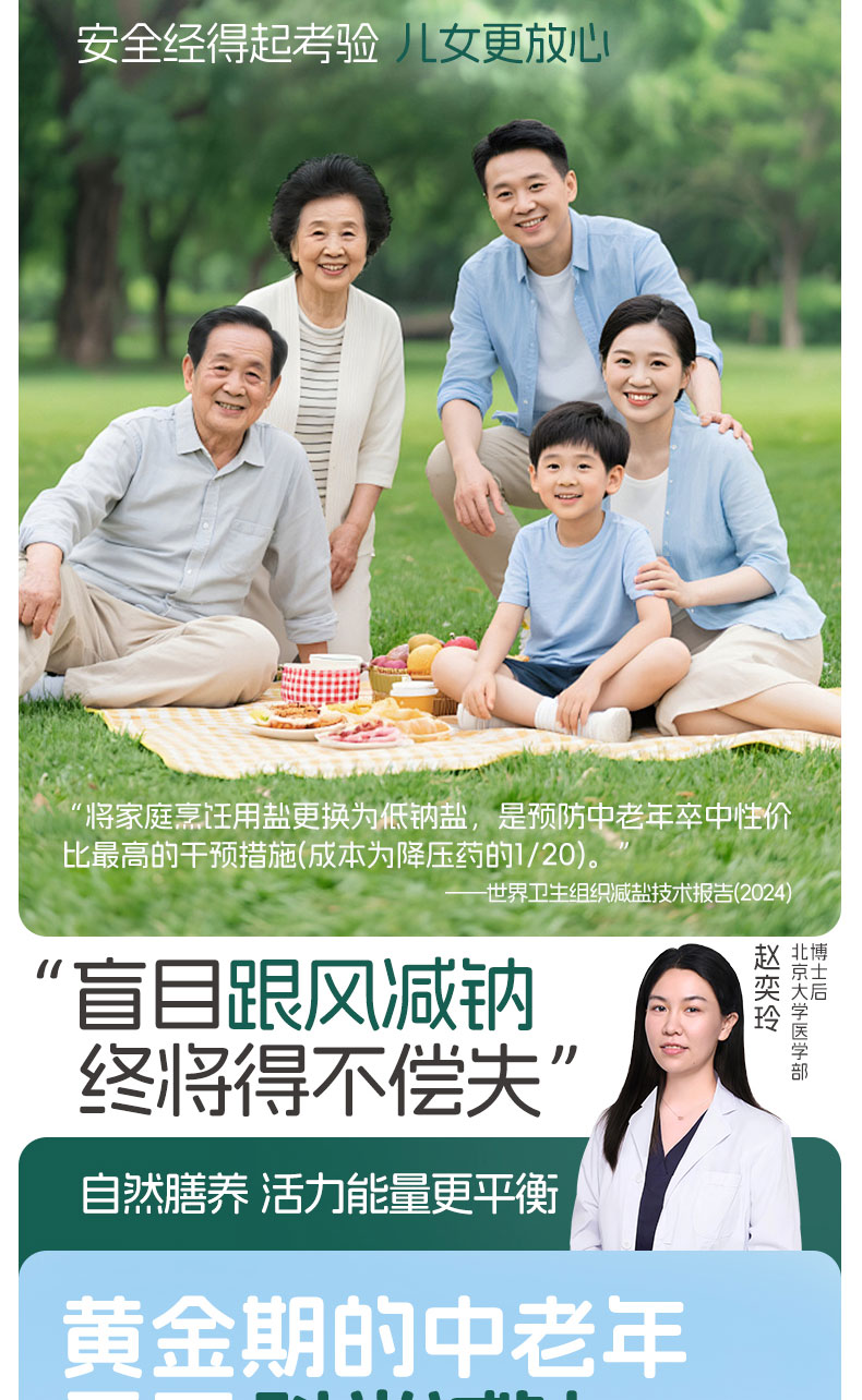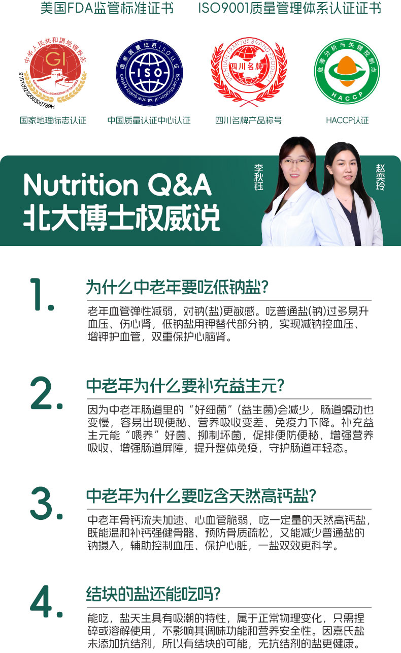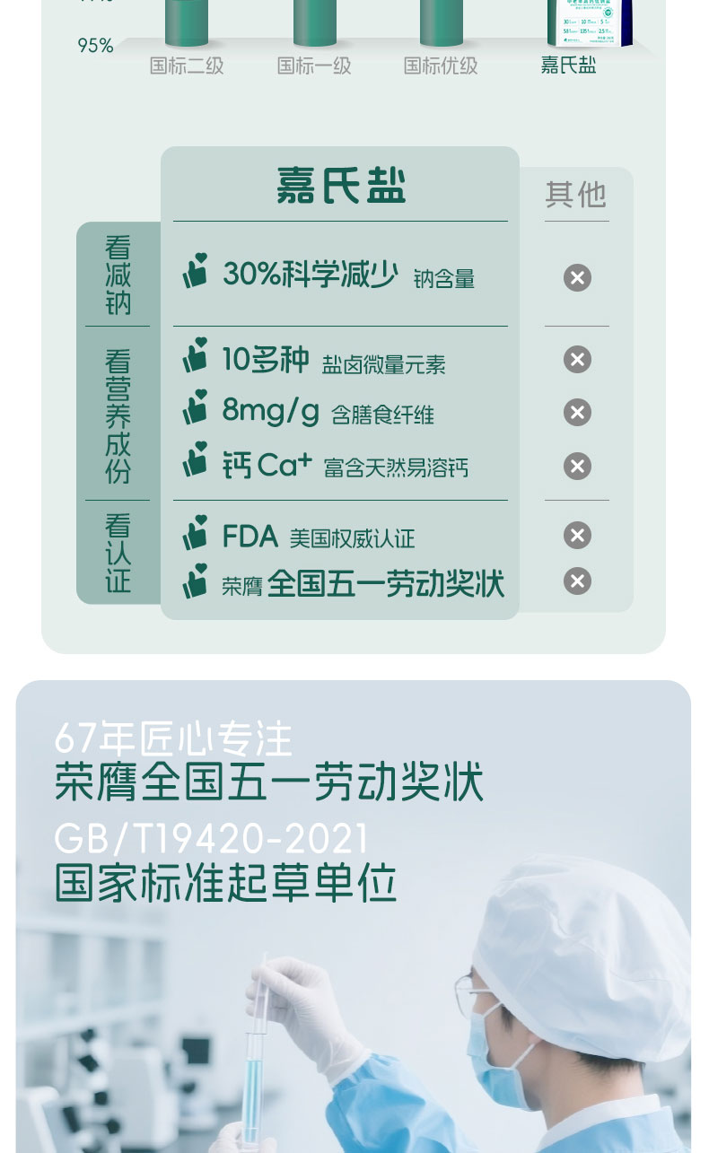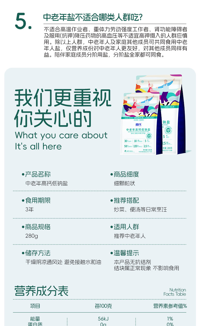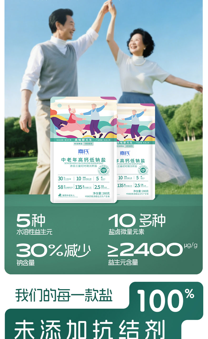 嘉氏中老年高钙低钠盐食用盐低钠高钙富钾无碘零添加抗结剂家用食盐