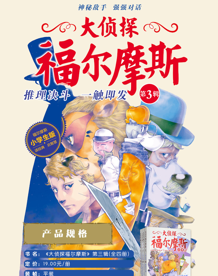 《大侦探福尔摩斯》已经出版5辑了,每一辑推出不久,总会收到小读者们热切的来信,有用稚嫩的笔触写下的问候,有小读者亲自编写的谜题,这让“亲爱的大侦探”兴奋无比。当然,还有更多小读者询问什么时候可以看到第三辑。现在,《大侦探福尔摩斯》第三辑终于与大家见面了,仍以最紧凑动人的探案情节、最吸引眼球的漫画插图、最传神的人物形象、思考性的互动问答,延续前两辑的精彩效果。同时,第三辑又有很大的突破: