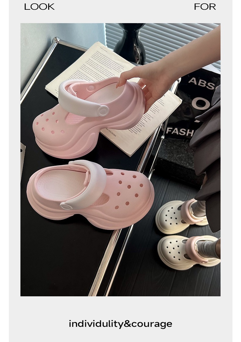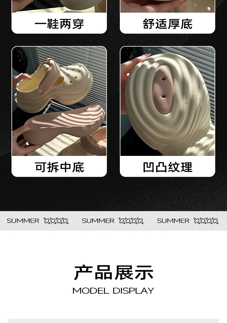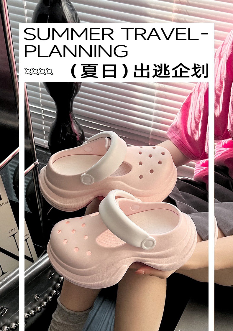 蚂蚁之恋品牌春夏新品时尚简约小蛮腰洞洞鞋 两穿厚底增高EVA沙滩鞋