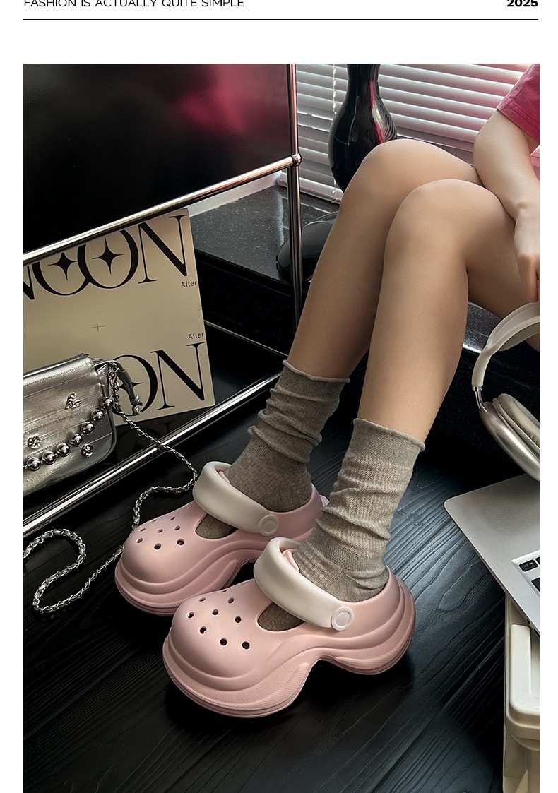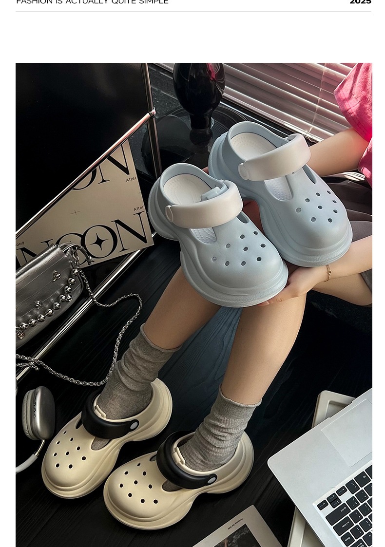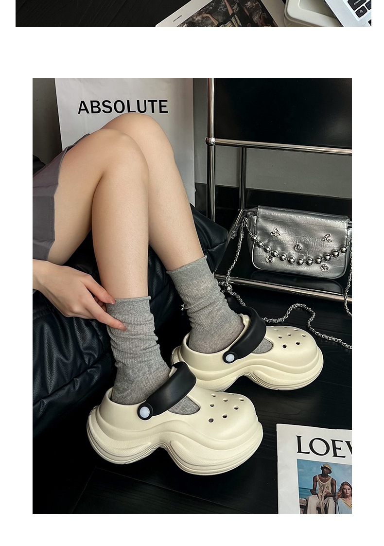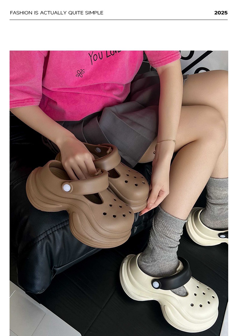 蚂蚁之恋品牌春夏新品时尚简约小蛮腰洞洞鞋 两穿厚底增高EVA沙滩鞋