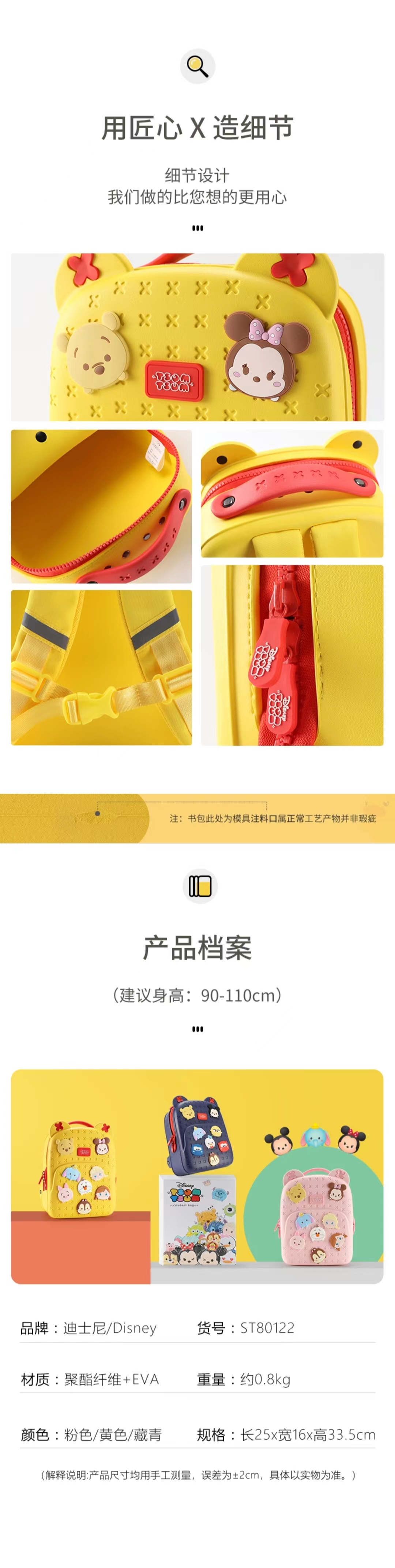 迪士尼(Disney)松松儿童书包幼儿园3-6岁男女童可爱外出送礼背包潮ST80122
