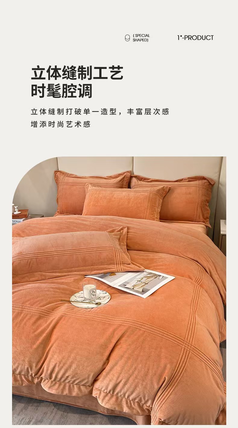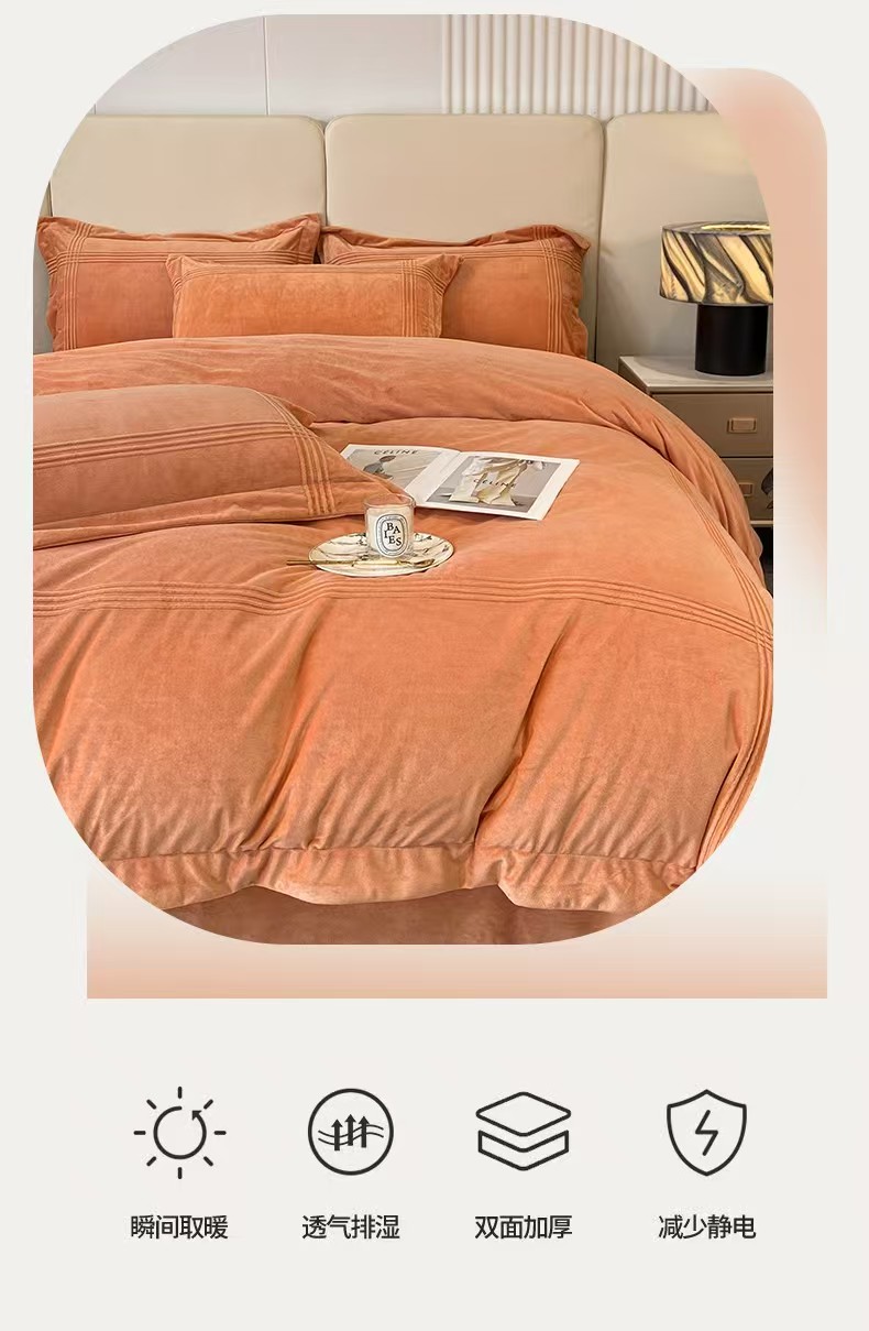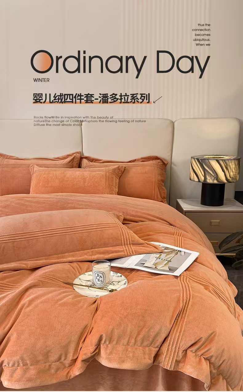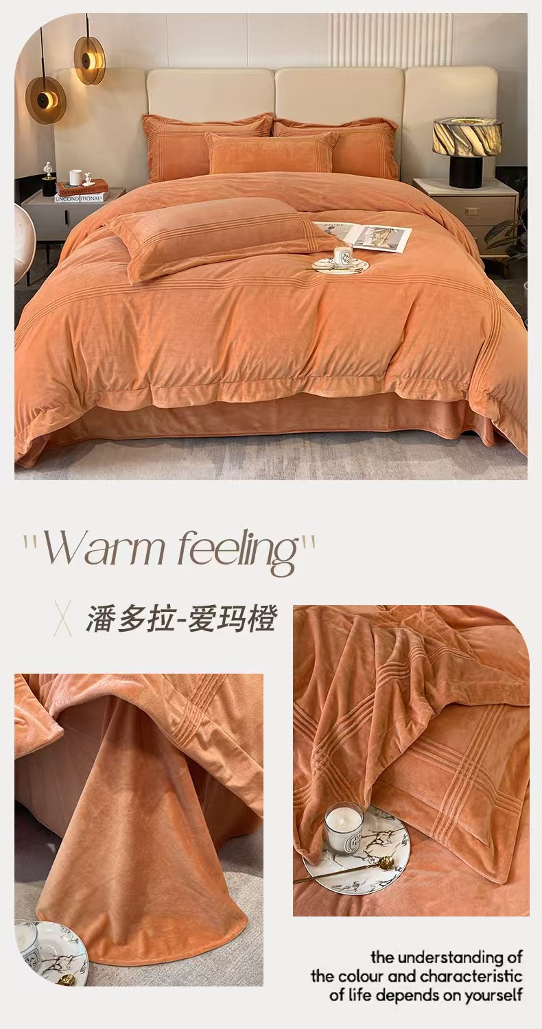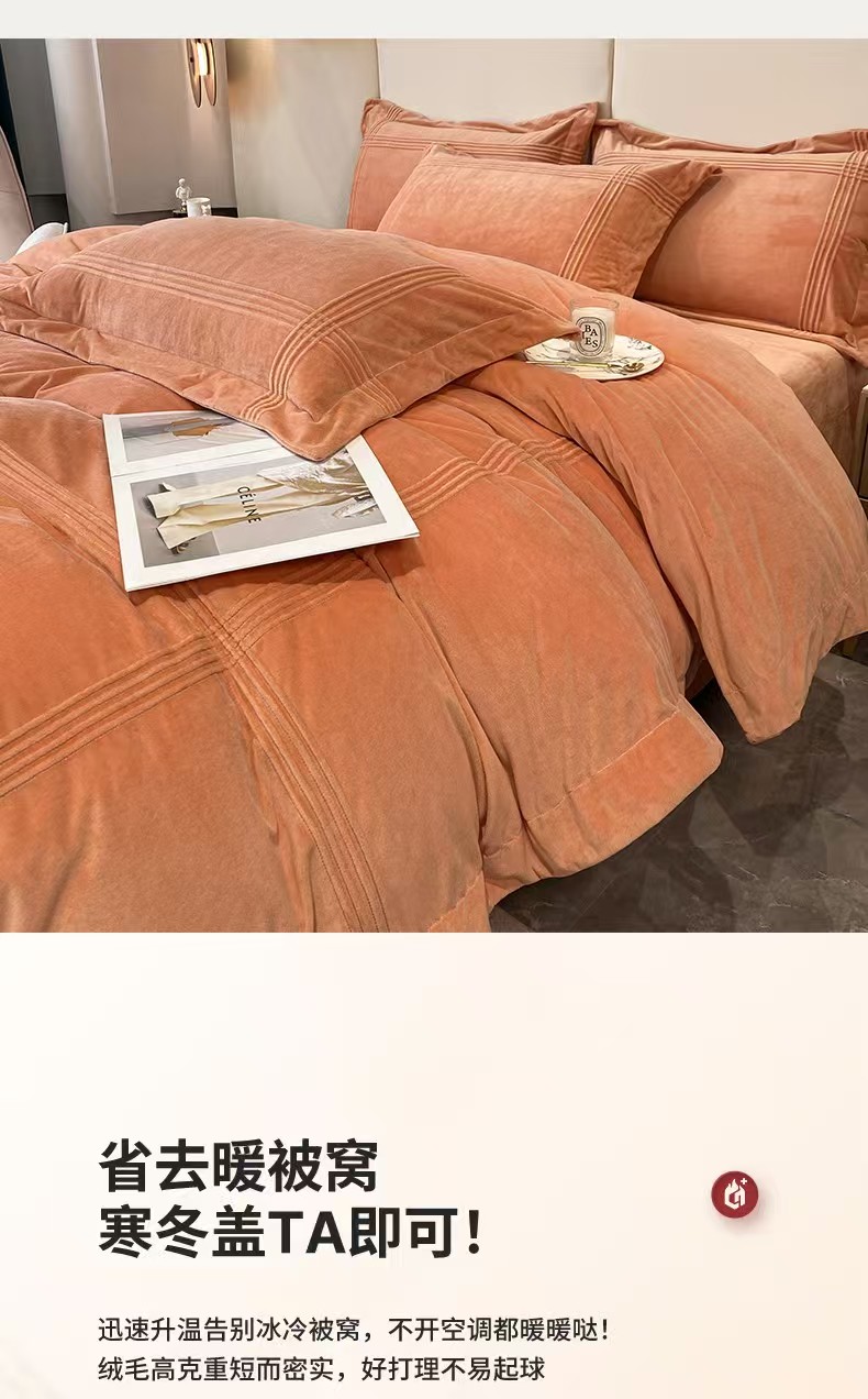 热卖中!!【潘多拉系列-四件套】2025秋冬新款婴儿暖绒埋绳款四件套 双面加厚 高级感橙橘桔色珊瑚绒