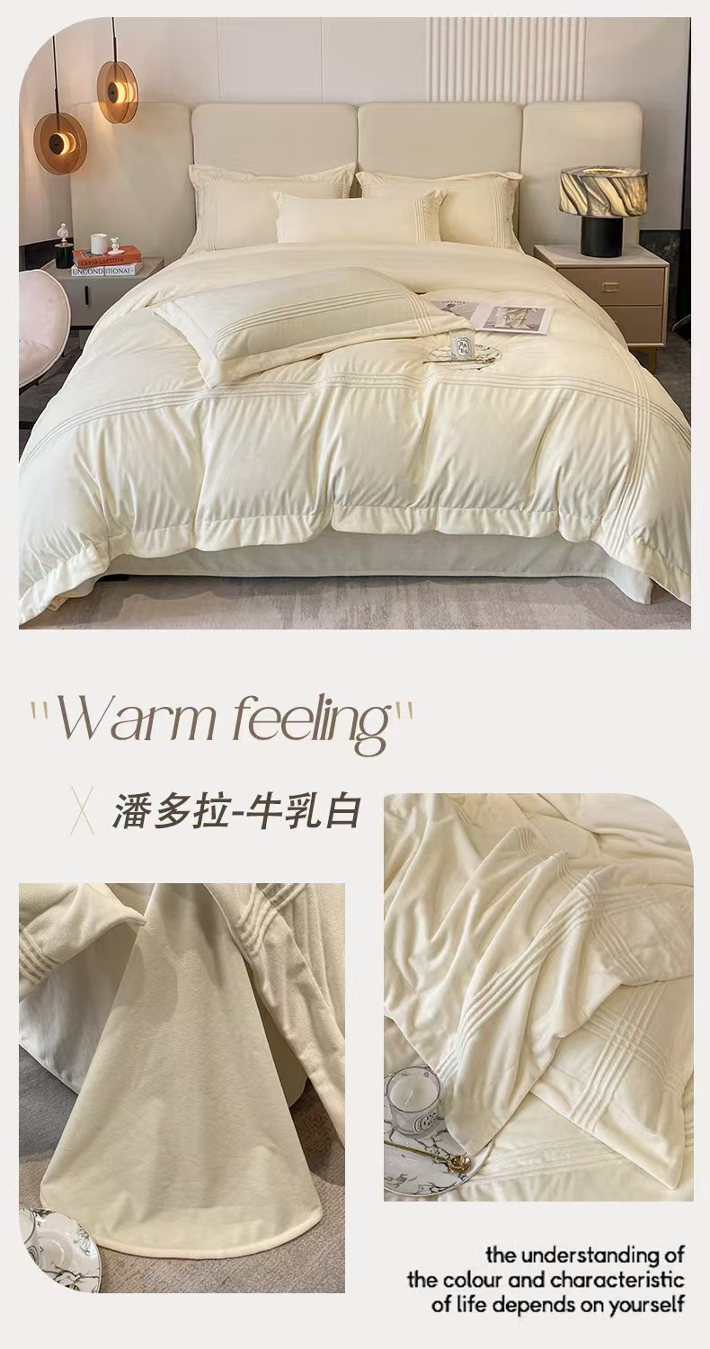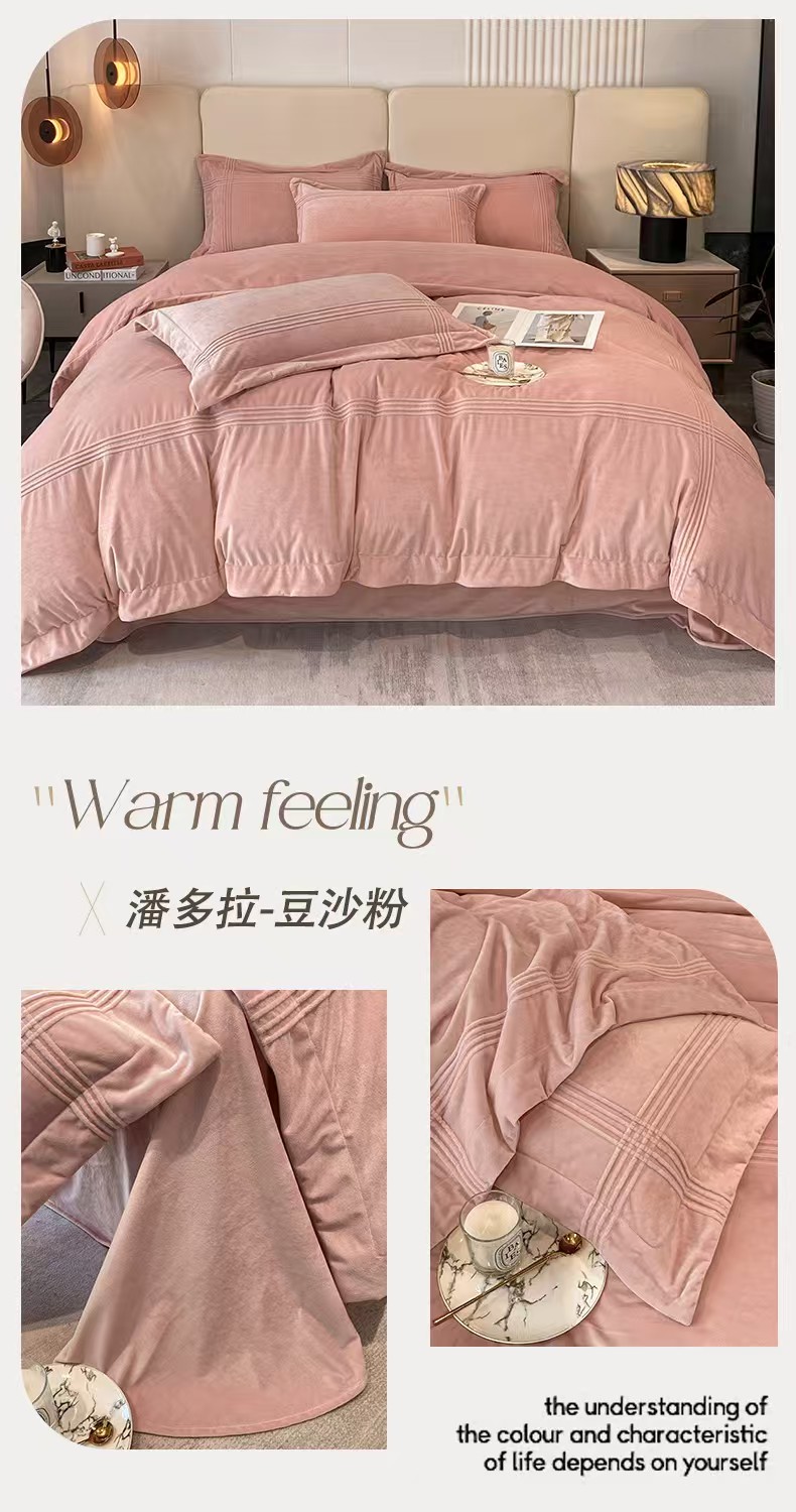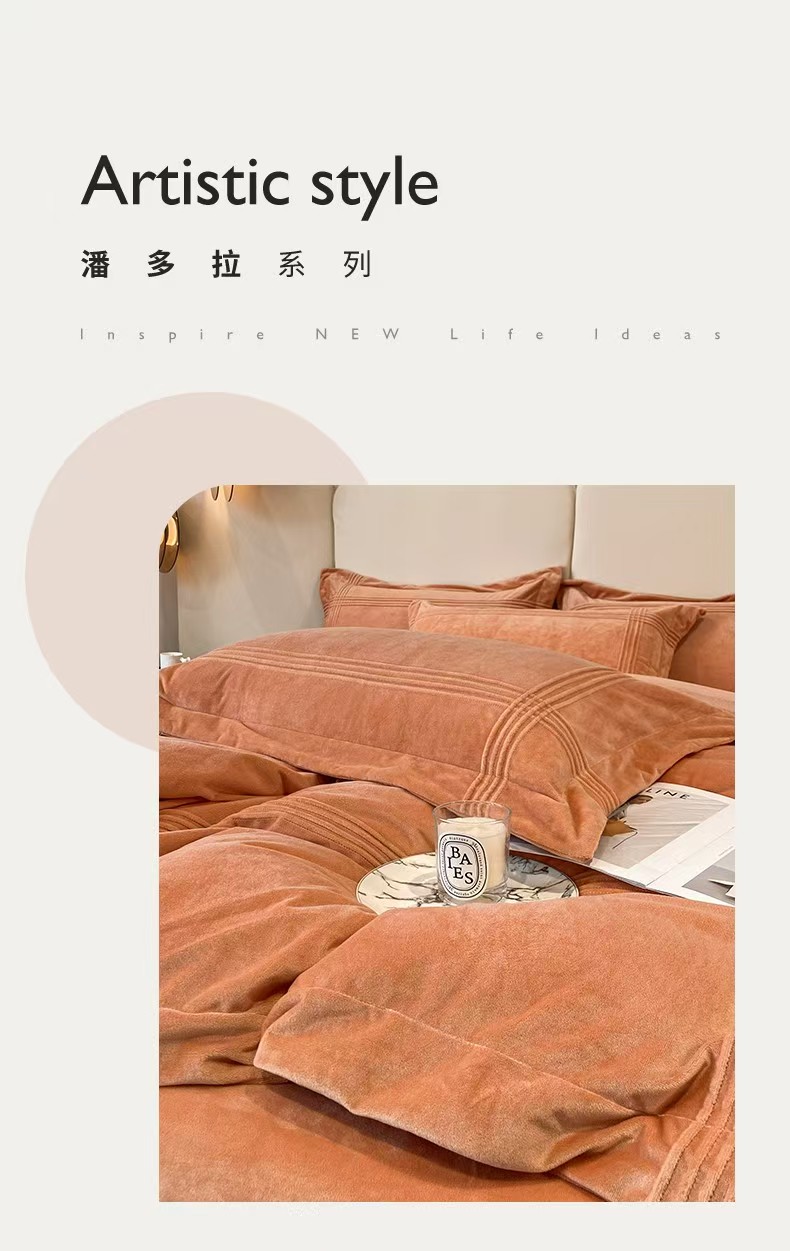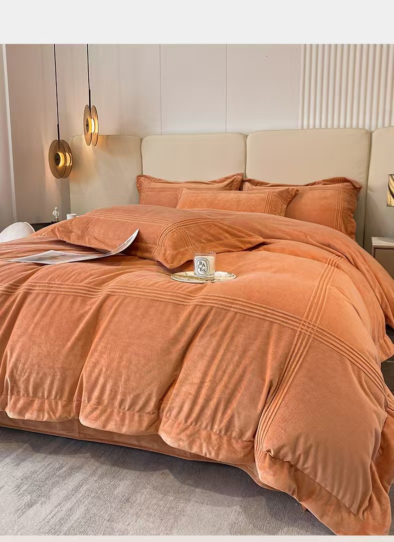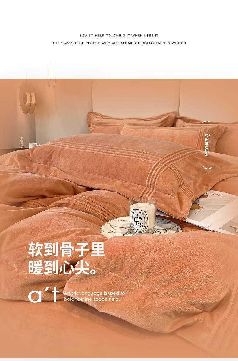 热卖中!!【潘多拉系列-四件套】2025秋冬新款婴儿暖绒埋绳款四件套 双面加厚 高级感橙橘桔色珊瑚绒