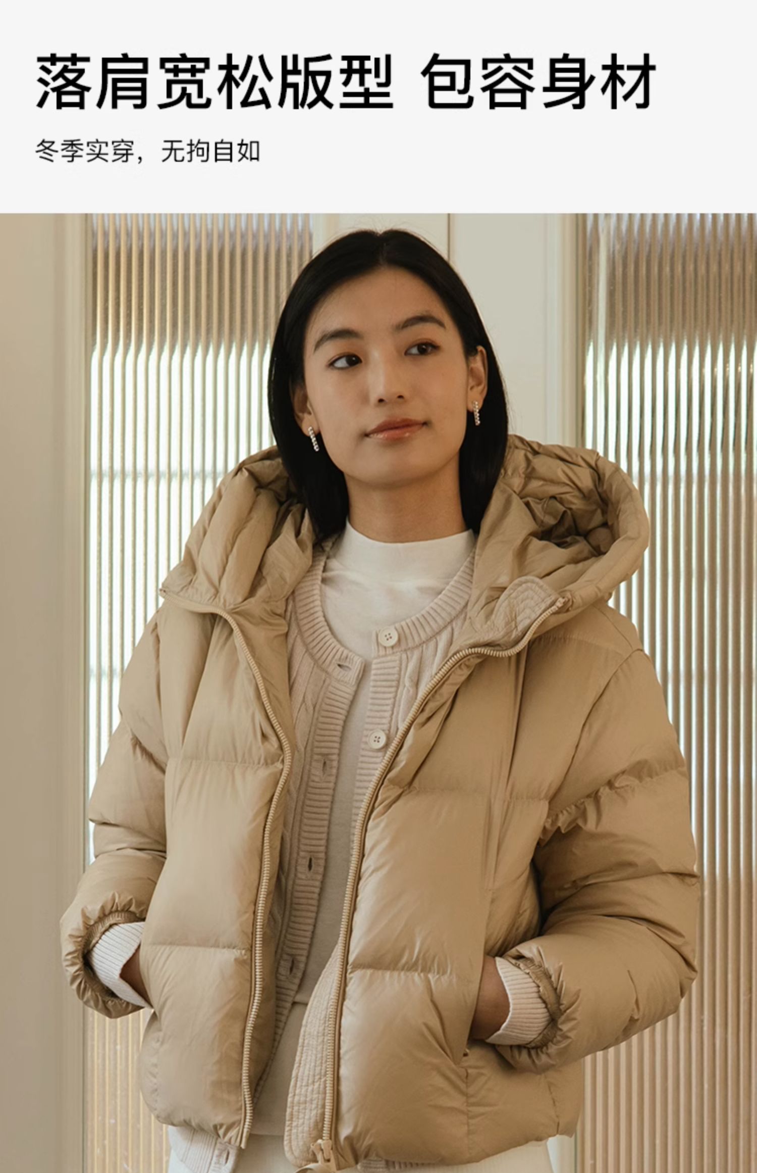 Marc O'Polo/MOP冬季新款黑金短款保暖连帽羽绒服女士面包服