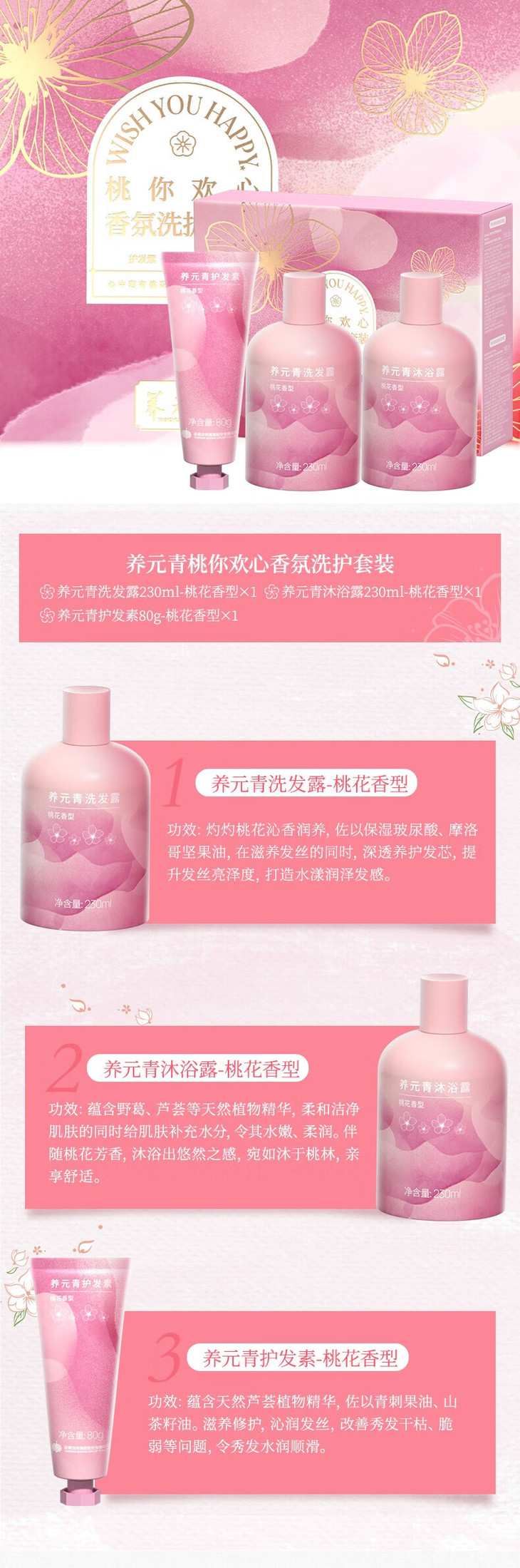 【官方正品】云南白药养元青粉福香氛洗护套装桃花香型洗发露沐浴露护发素组合伴手礼盒