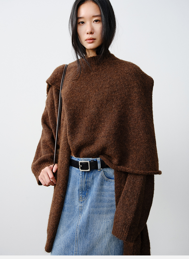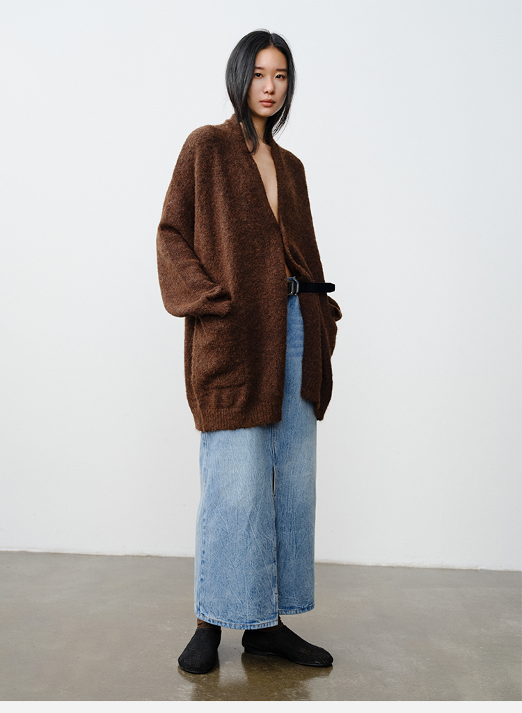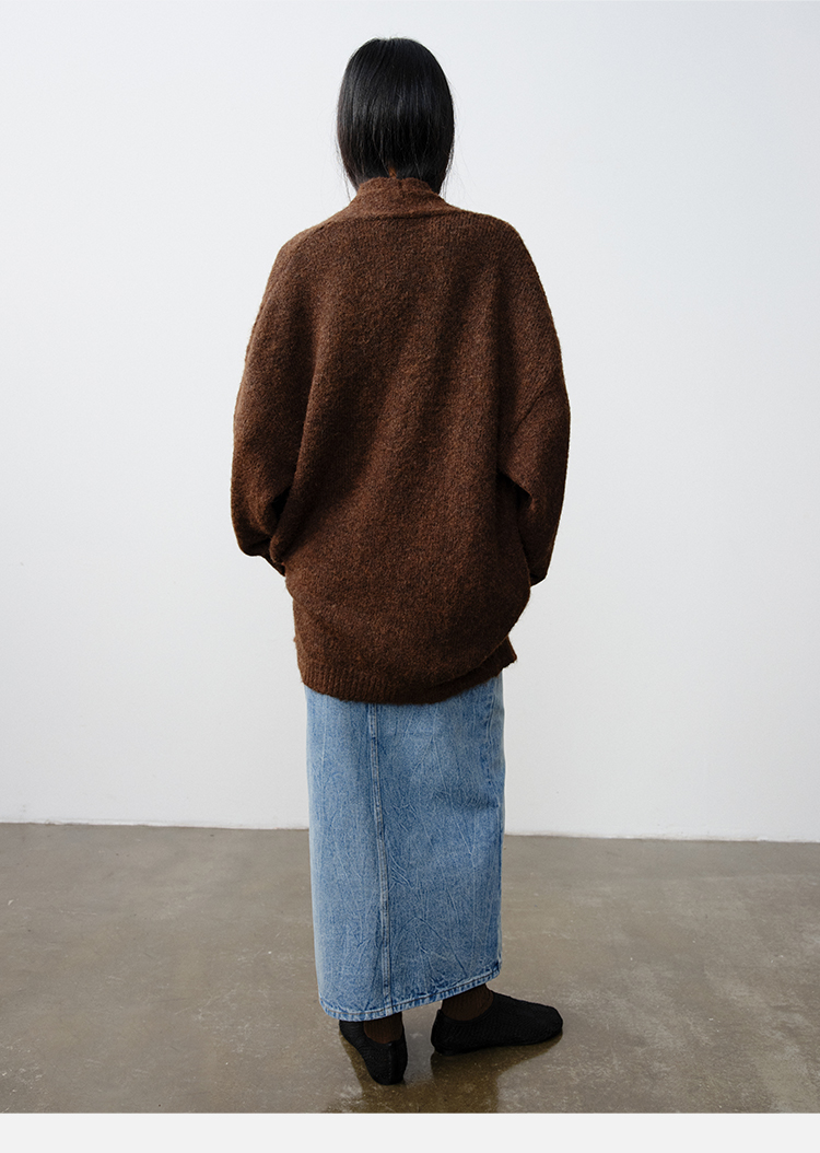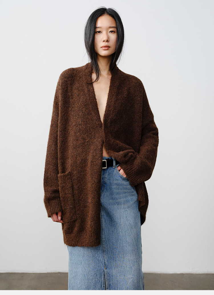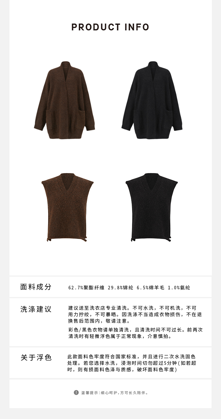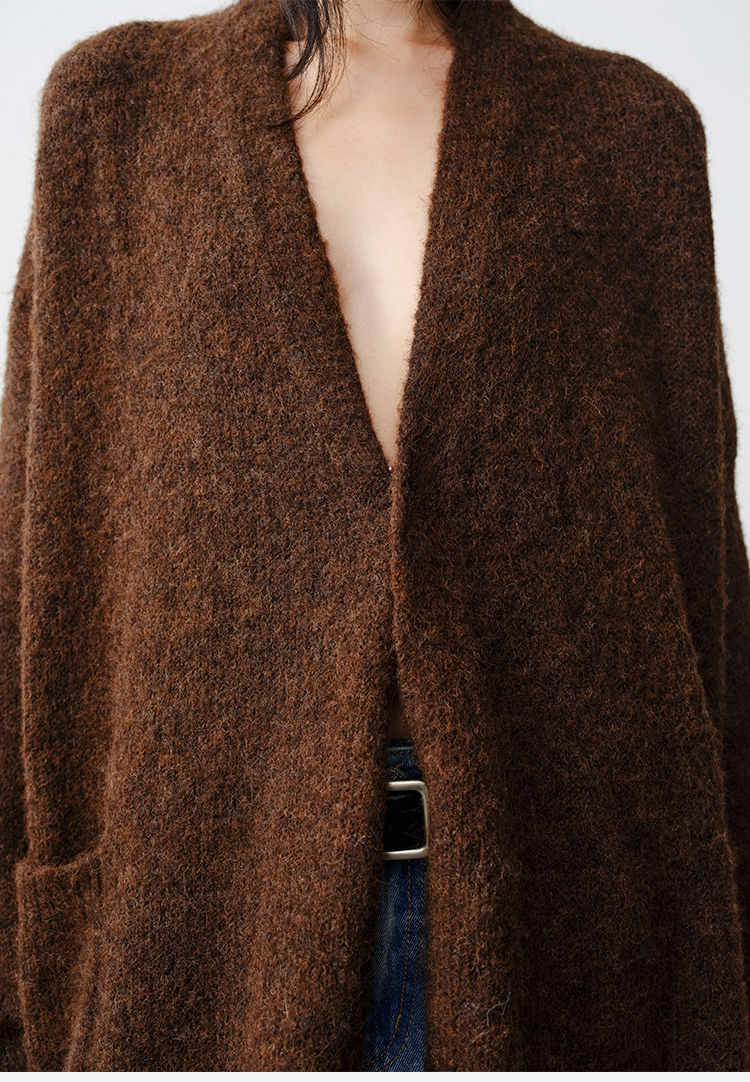 HIDEMI 厚款粗针V领慵懒口袋针织毛衣开衫外套大衣/坎肩