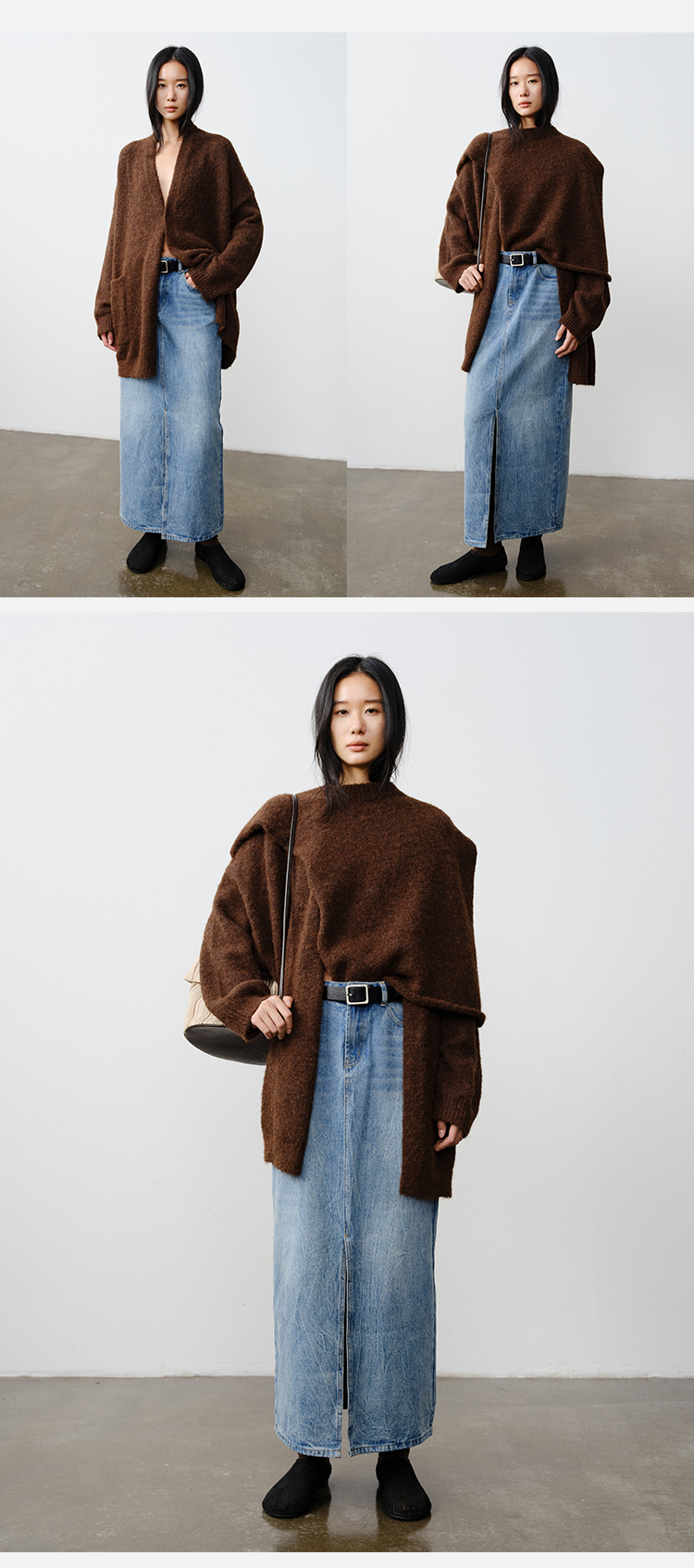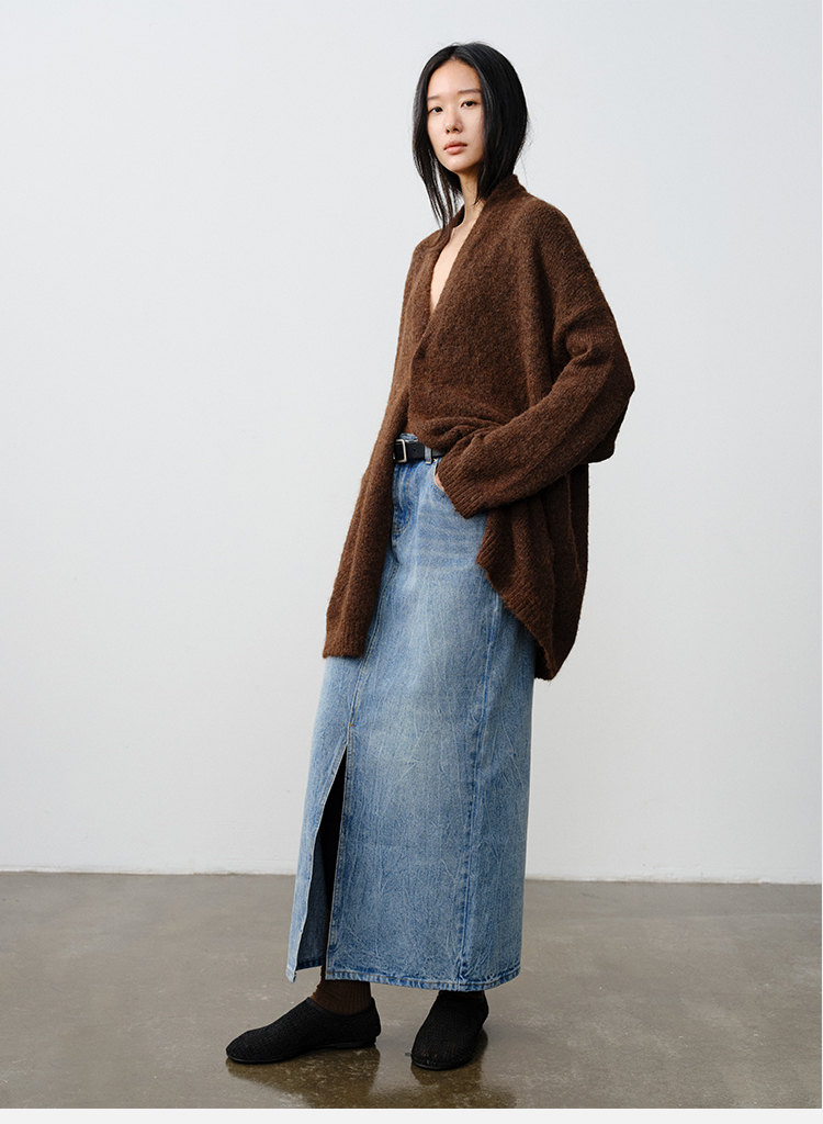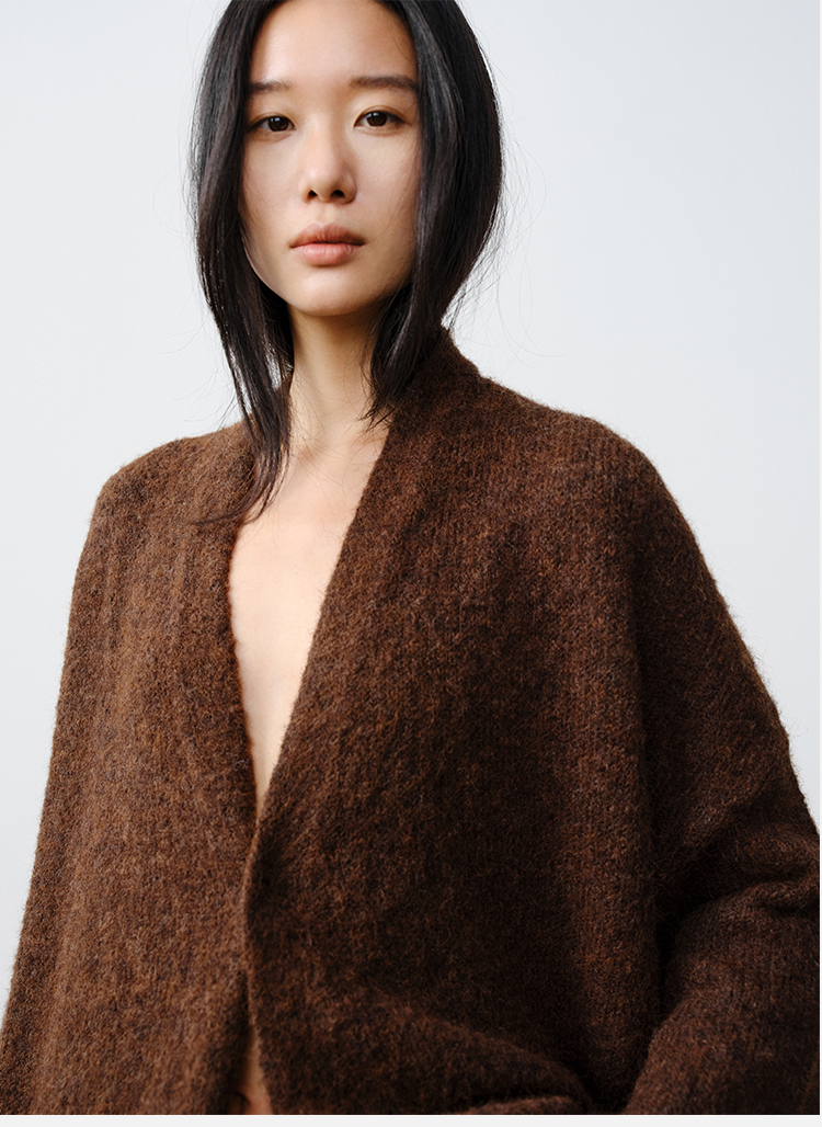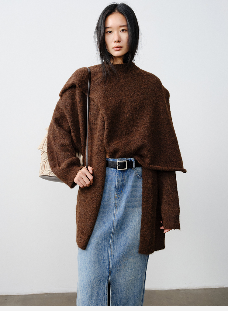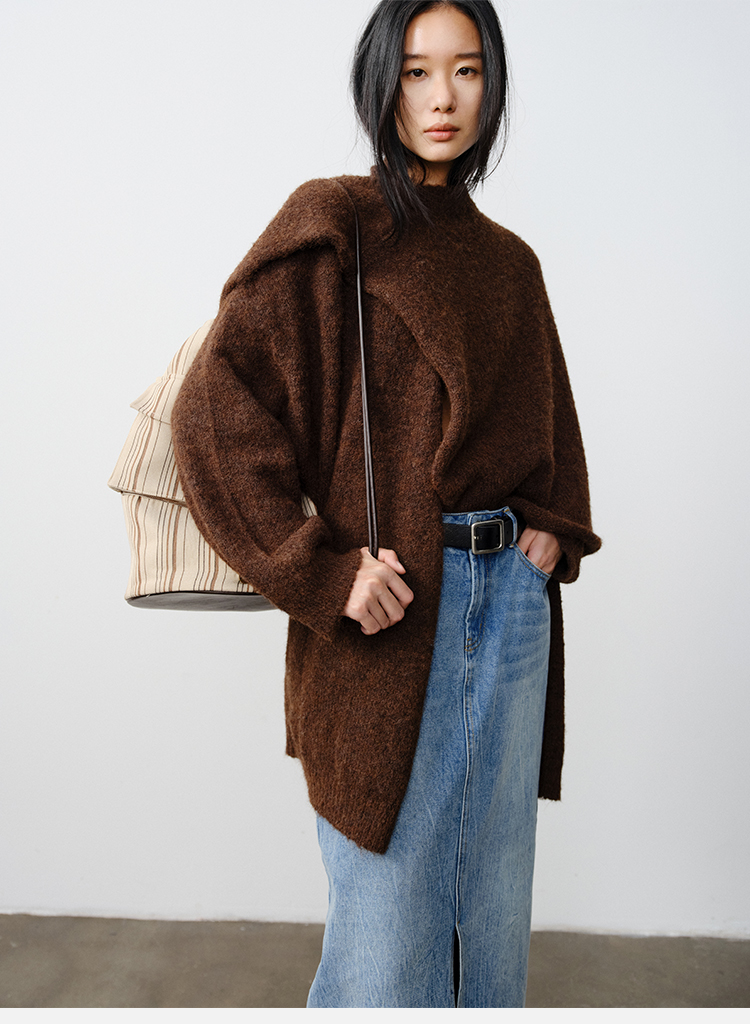 HIDEMI 厚款粗针V领慵懒口袋针织毛衣开衫外套大衣/坎肩