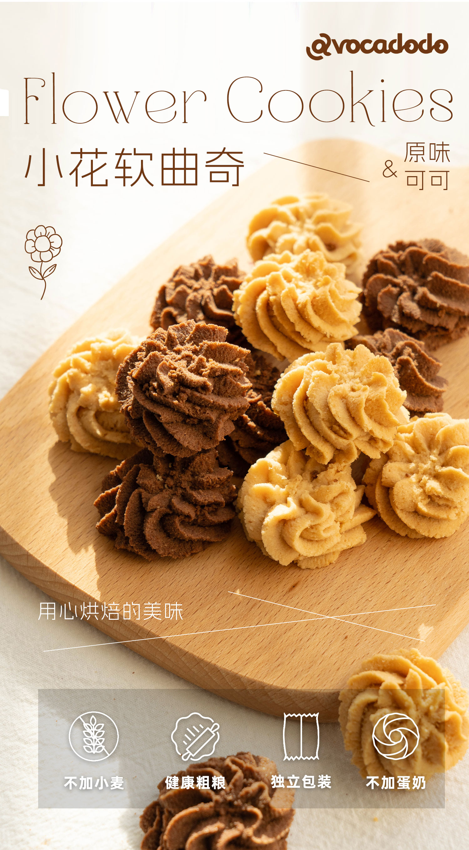 Avocadodo小花曲奇饼干不加蛋奶小麦麸质敏宝牛油果果桥本早餐
