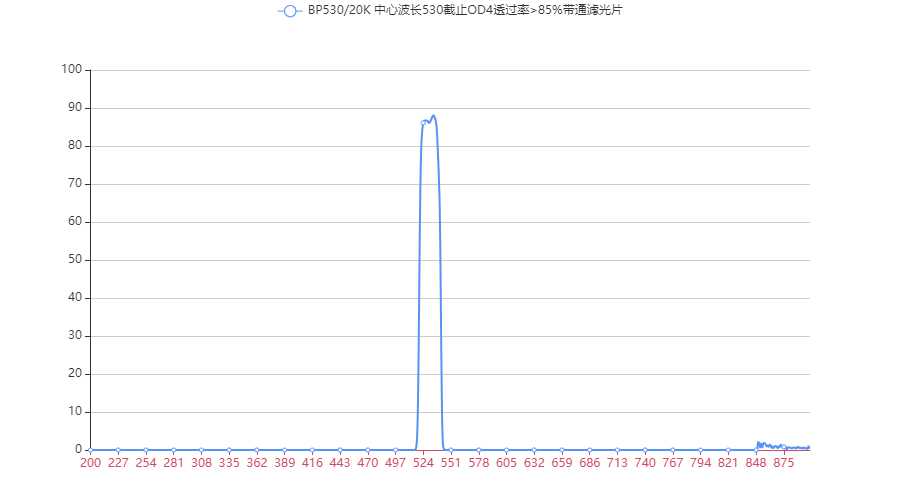 BP530/20K OD4@200-900 T>85% Φ12.7*6 带通滤光片 (带套圈)