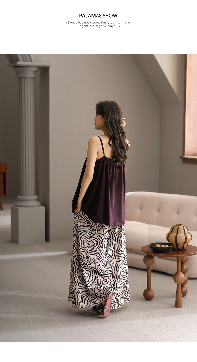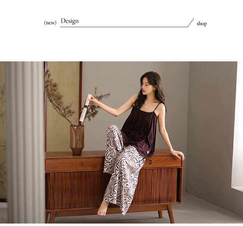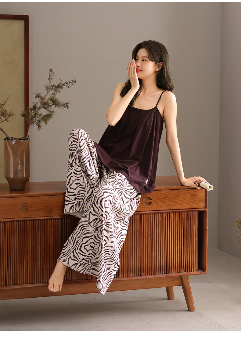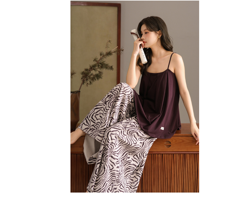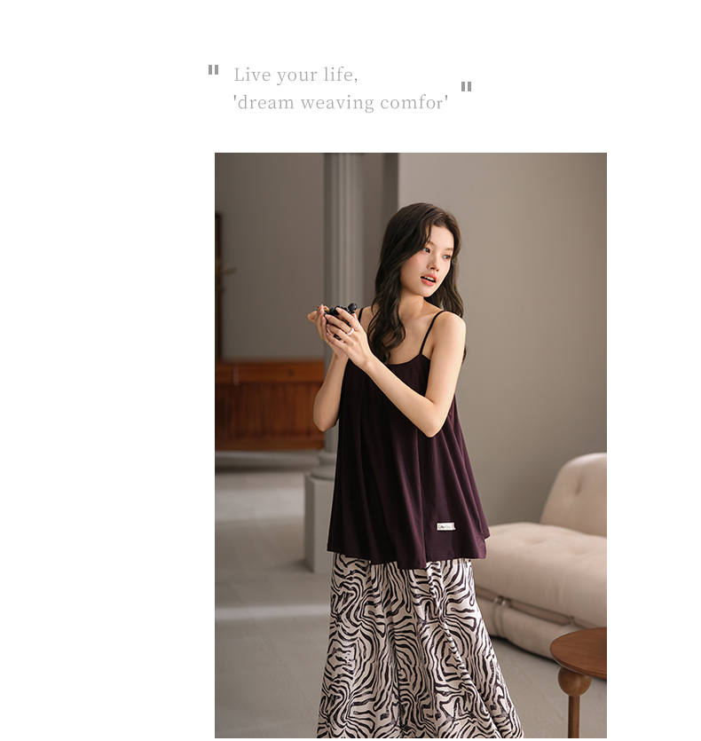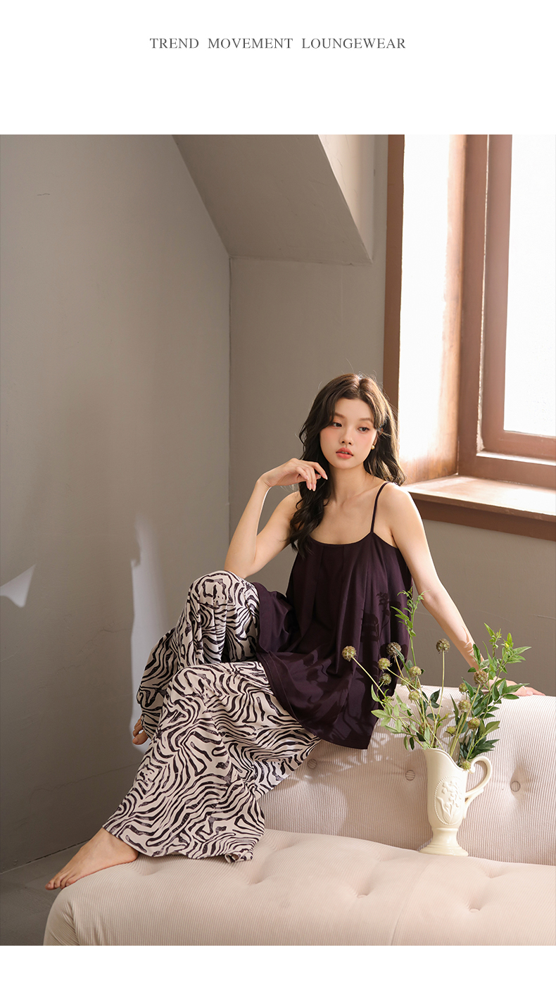 可人儿带bra睡衣夏季凉感莫代尔女士吊带阔腿长裤可外穿家居服