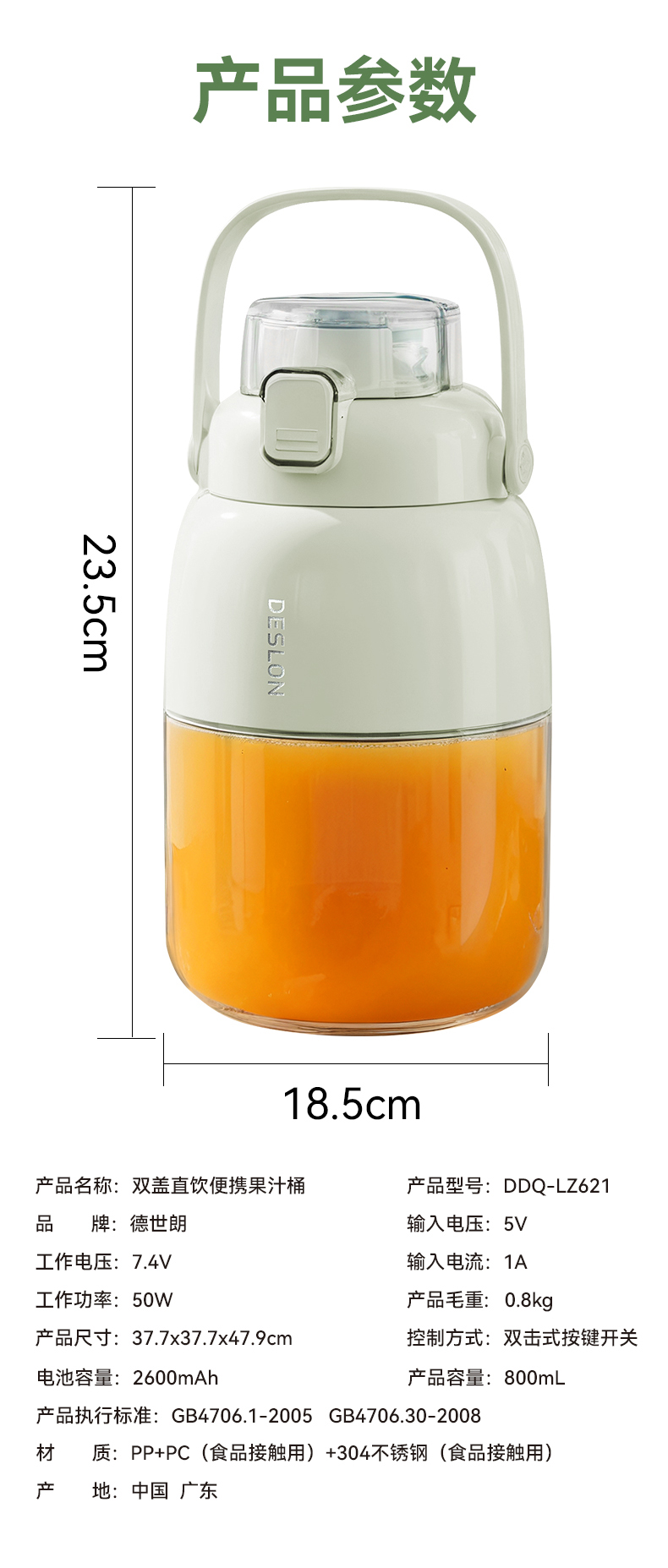 【品名】德世朗 便携榨汁机 榨汁/直饮双头随意切换 DDQ-LZ621 【规格】白色 【产地】国内 【发货包装】独立包装 【发货地】广东 【发货快递】中通、圆通、申通、韵达、百世随机发 【不发货区域】新疆、西藏、港澳台 【发货时效】48-72小时,周末节假日顺延 |