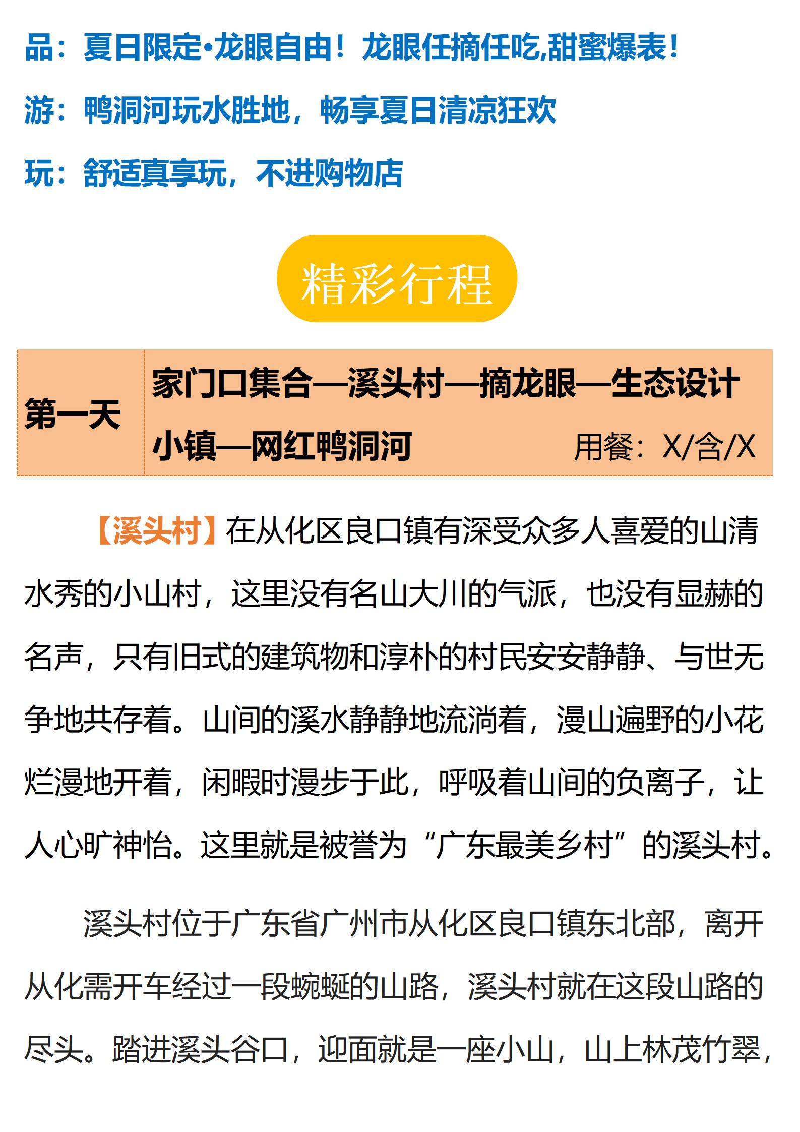 【溪野寻踪】 从化溪头村&生态设计小镇&摘龙眼&网红鸭洞河纯玩一日游,美的业主专享