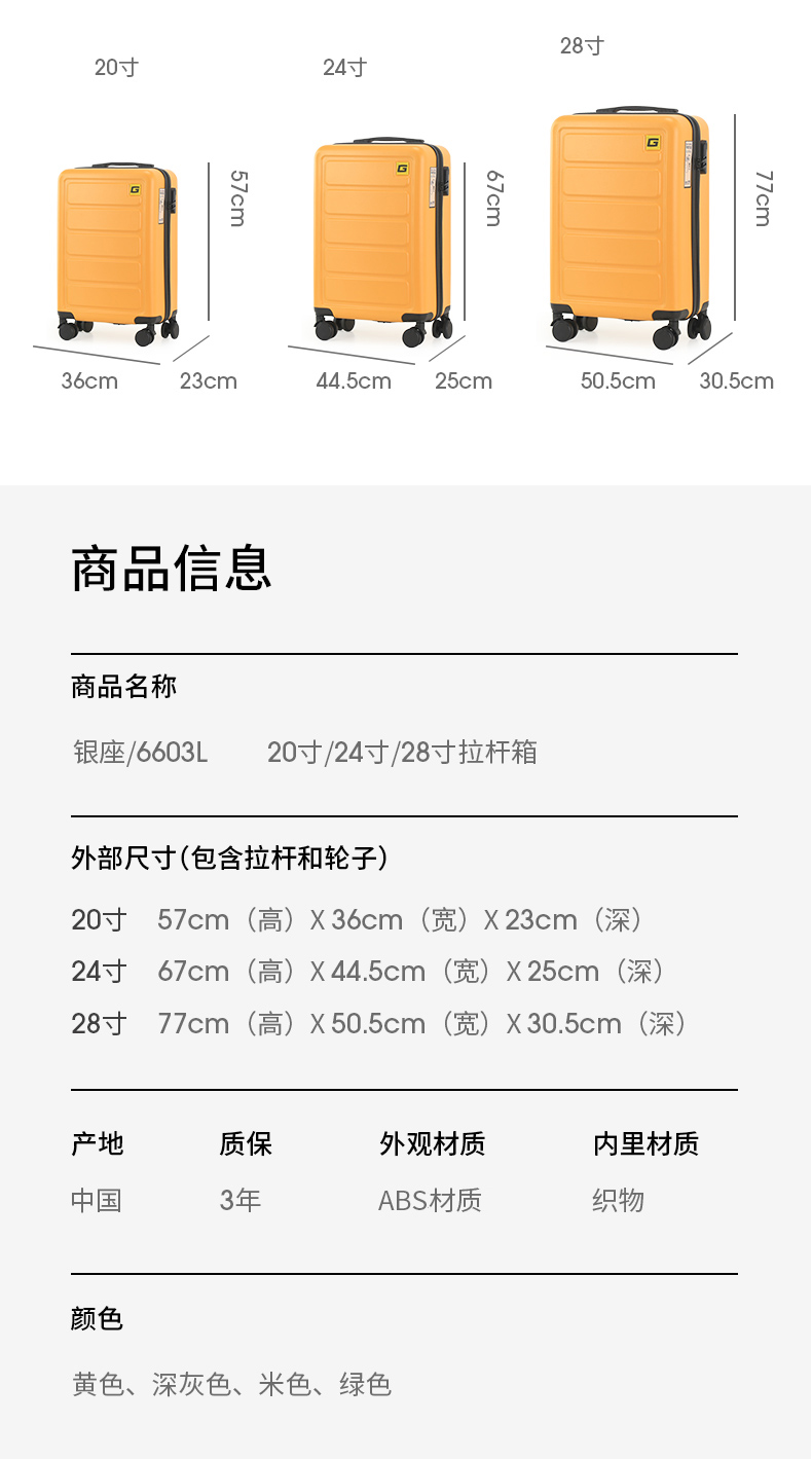 银座行李箱新款ins风学生高颜值耐用旅行箱6603L