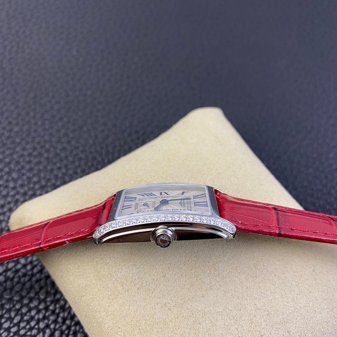 ️3、表盘抗磨蓝宝石,表壳展现小卡地亚坦克经典线条。