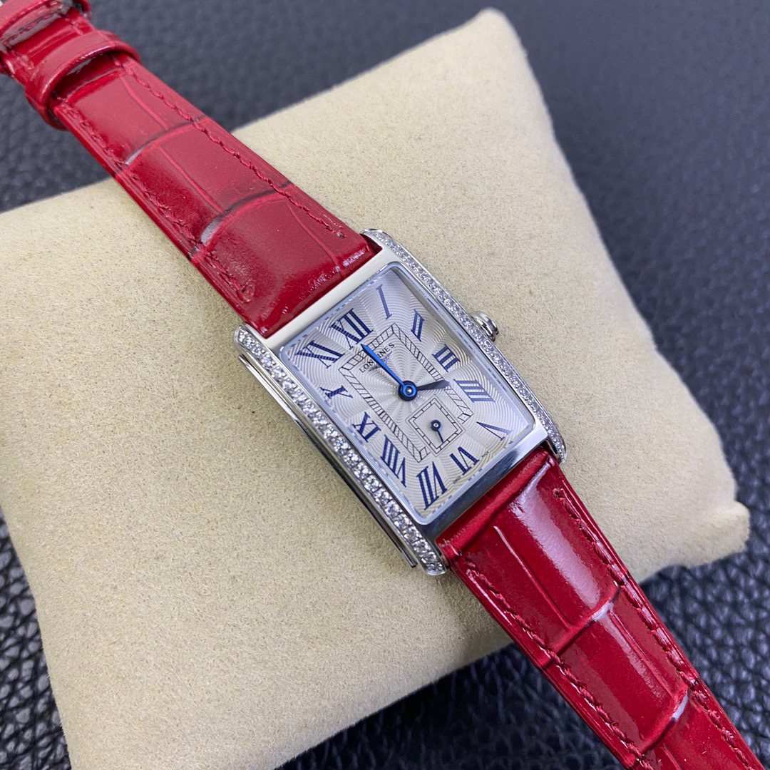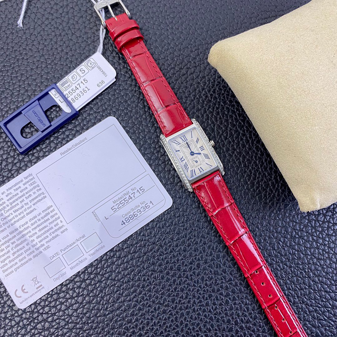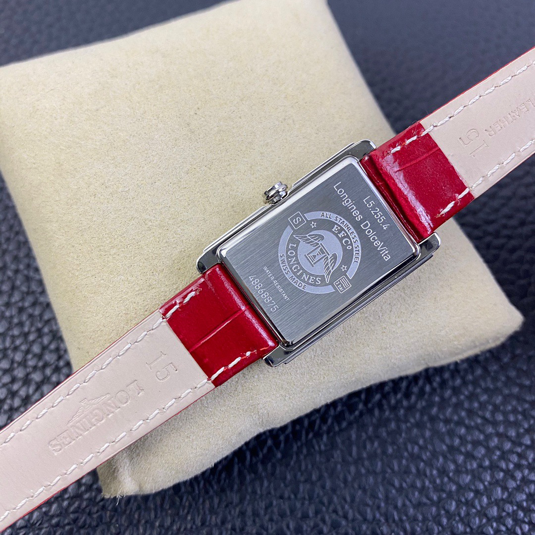 8848F浪qin戴卓维纳系列,尺寸20.8mmX32mm,️机芯采用的是L178.2,️红色鳄鱼表带,女士腕表,皮表带,石英机芯,密底。