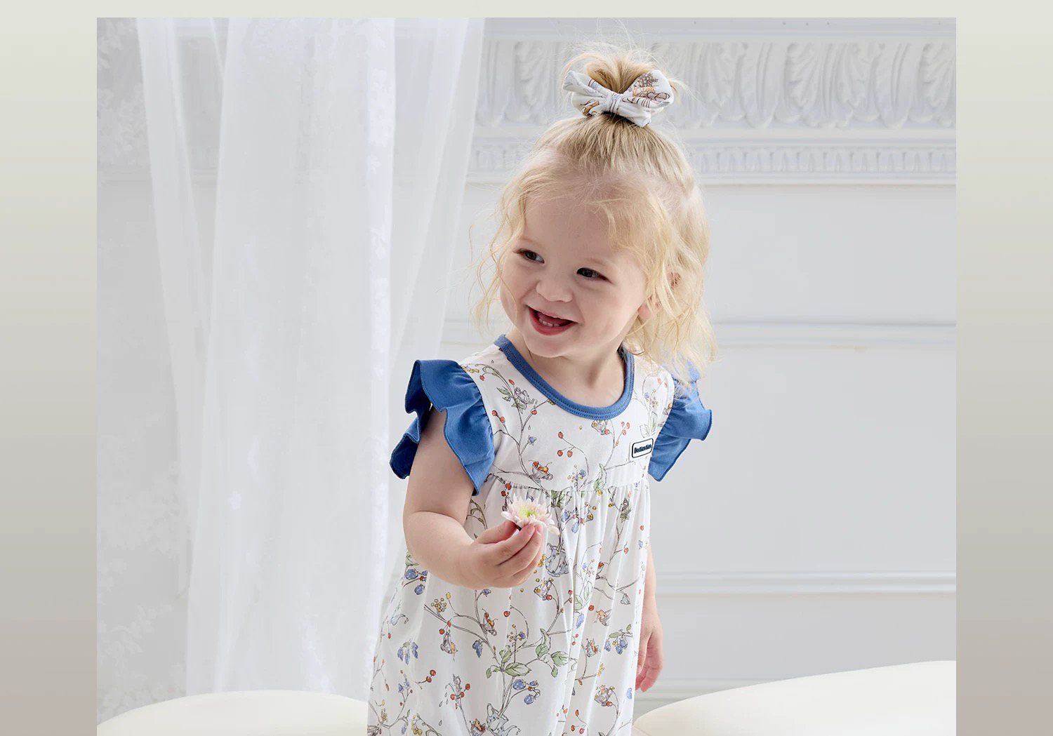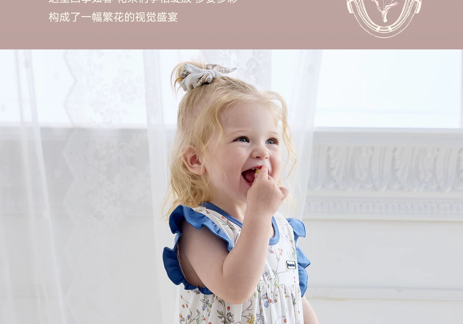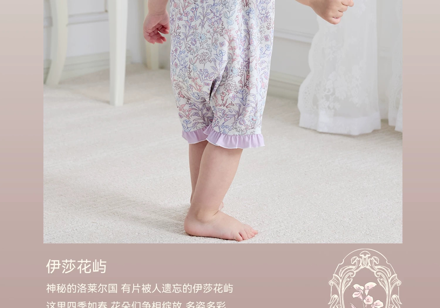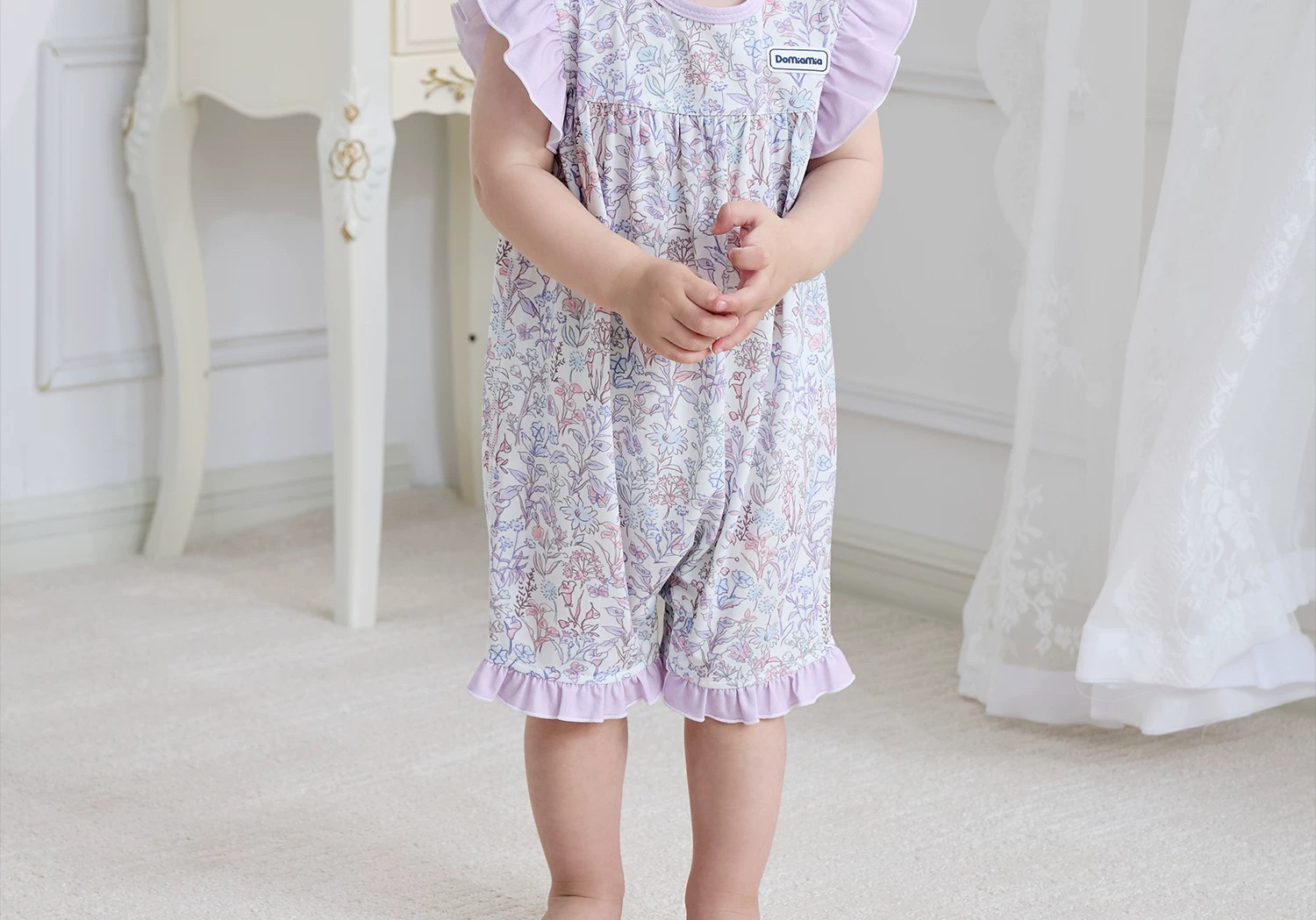 Domiamia 女宝宝针织无袖花边爬服 夏季婴儿小碎花连体衣