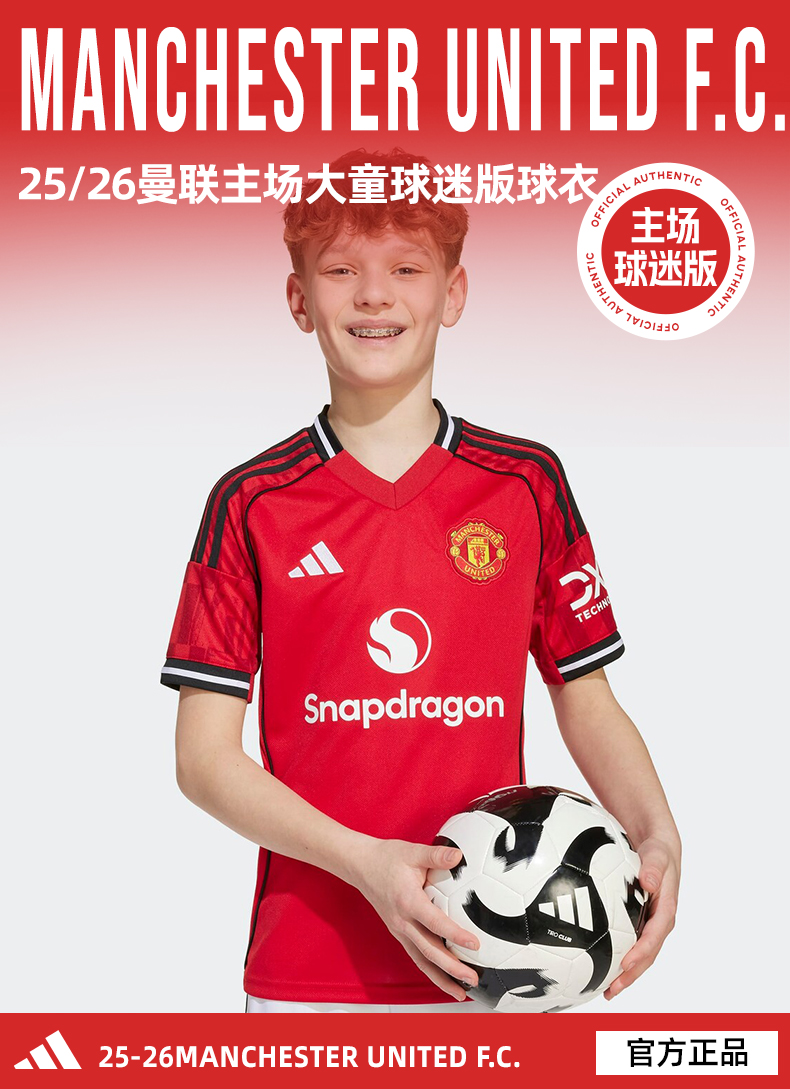 SFS阿迪达斯Adidas曼联25/26主场大童球迷版球衣短袖足球服JP3013