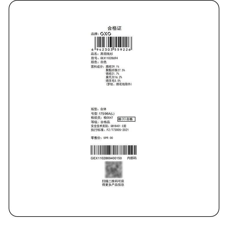 GXG男装 多色毛衫保暖高领线衫亲肤毛衫冬季热卖绵羊毛毛衫GEX11028694