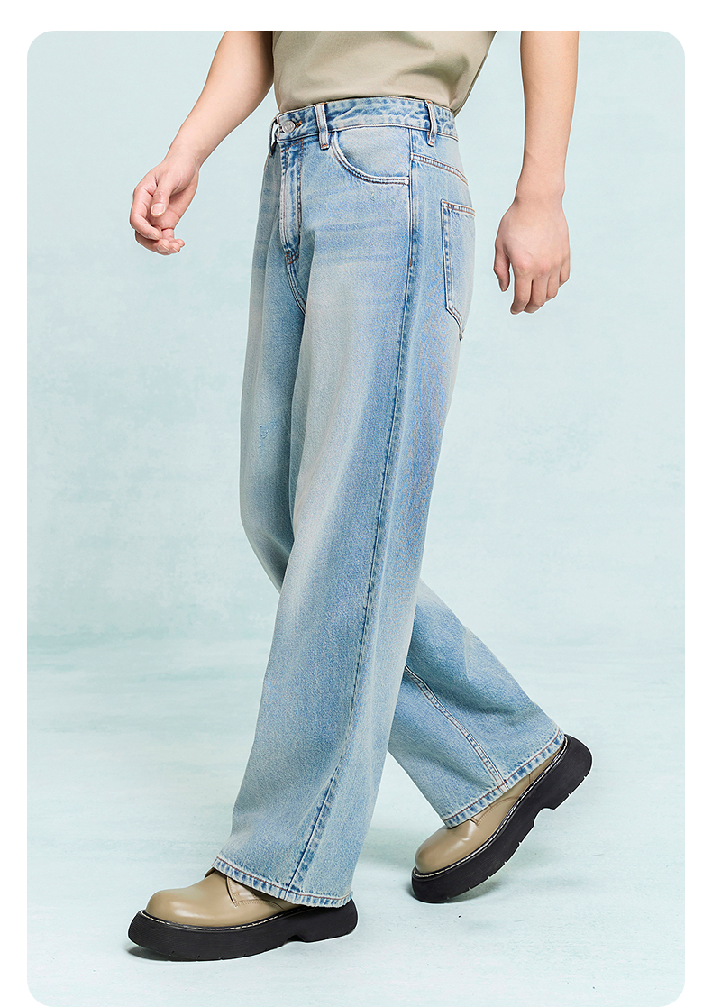 GXG男装 经典蓝色阔腿牛仔裤休闲裤弹力长裤子 2025夏季热卖