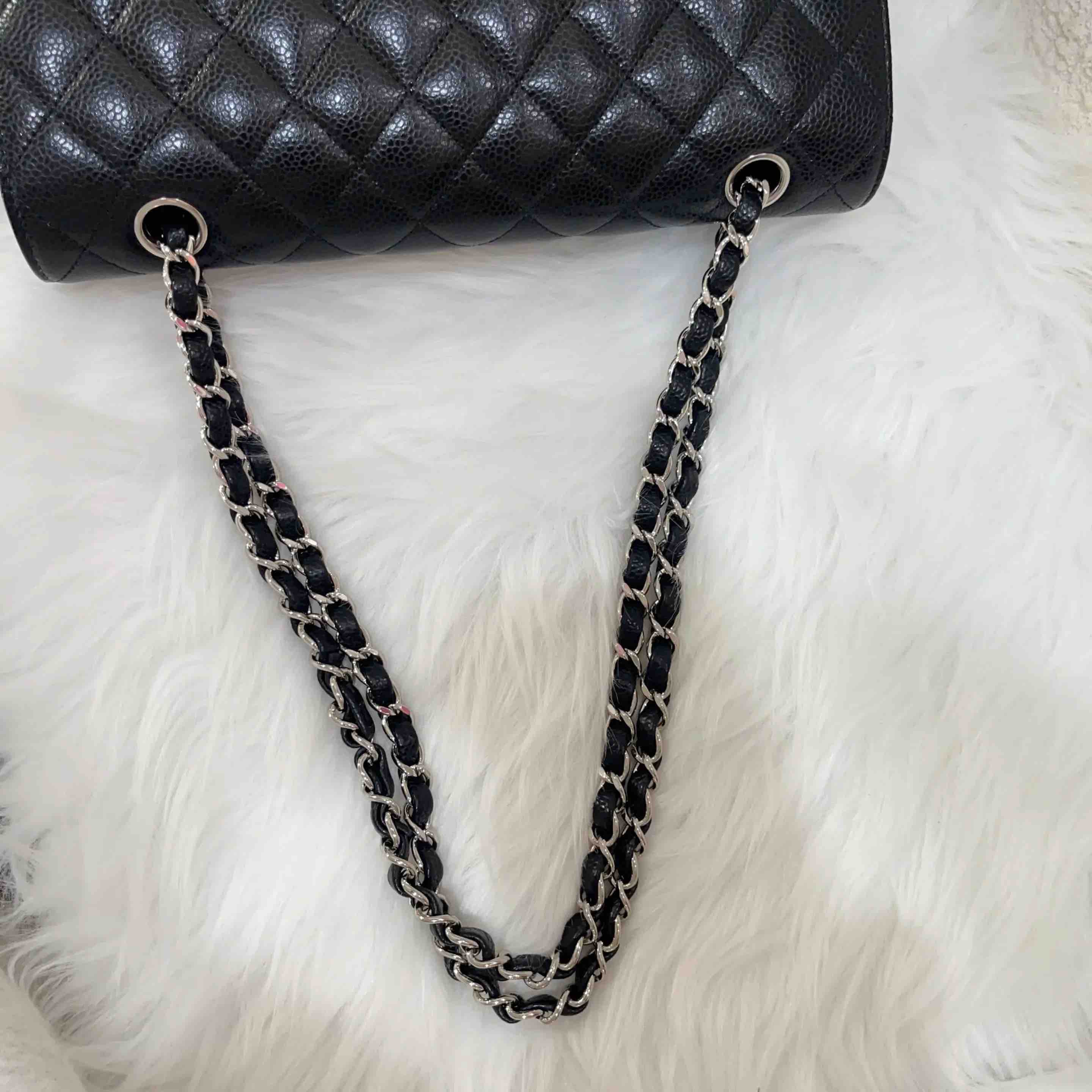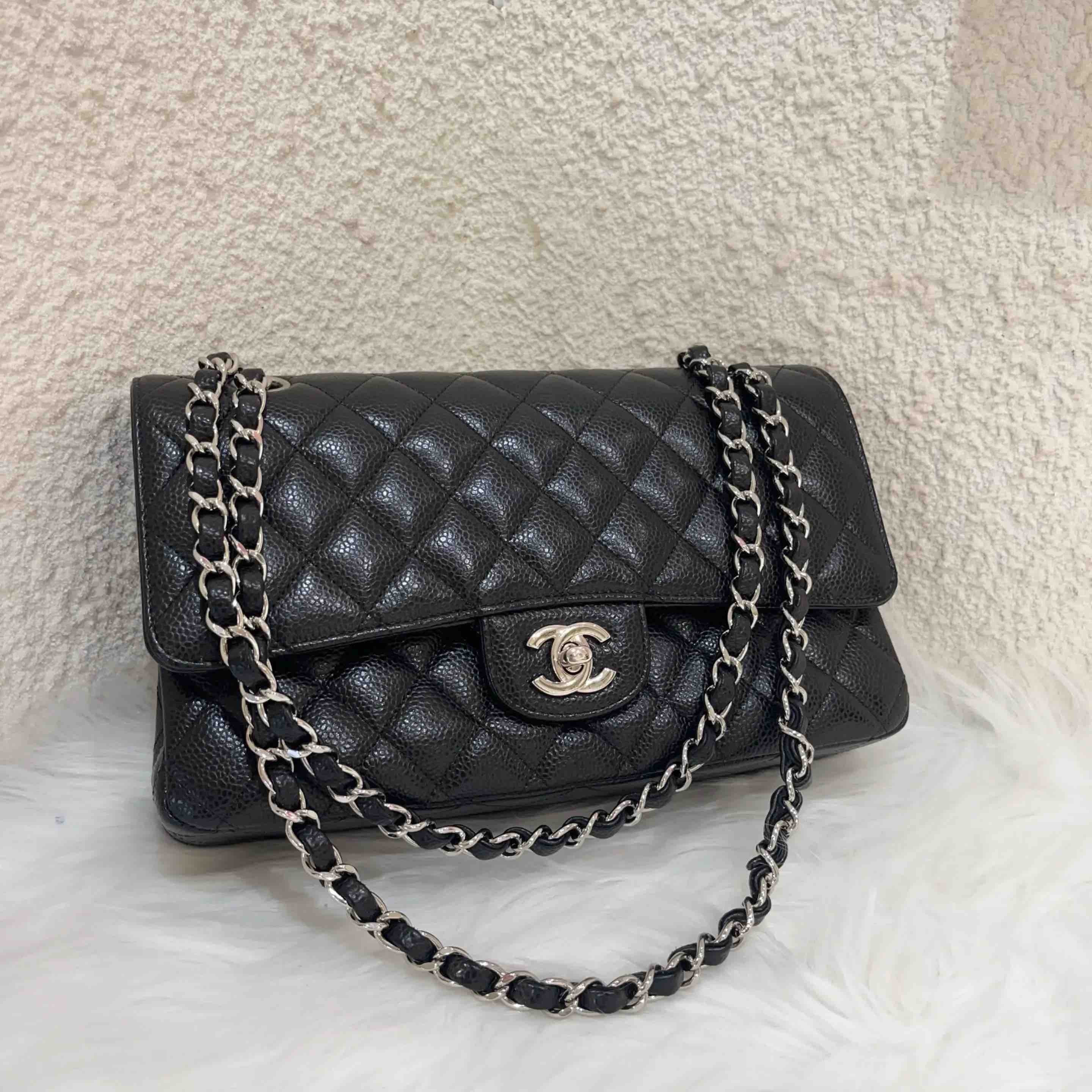 【商品详情】正品二手 Chanel cf 中号 黑金 荔枝纹牛皮 斜挎包🌼97新 25x15 镭射29开。必买包王。
