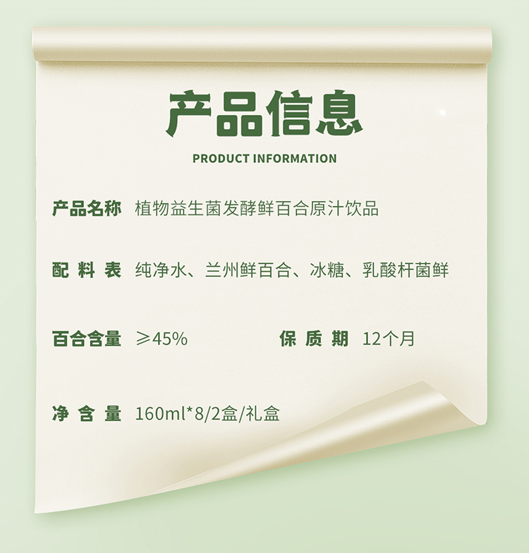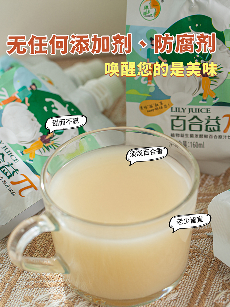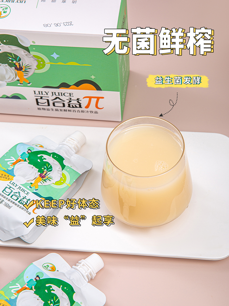 百合益π 植物益生菌发酵鲜百合原汁饮品 无任何添加剂、防腐剂,0脂肪,清爽解腻,补充能量
