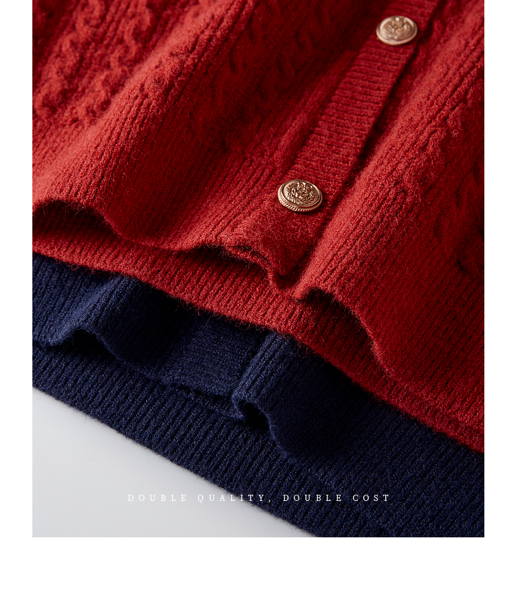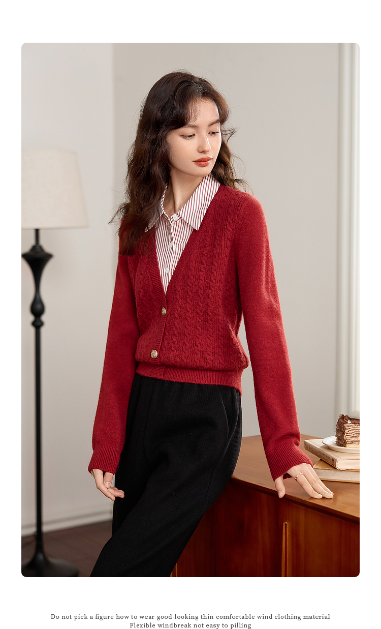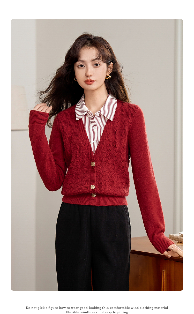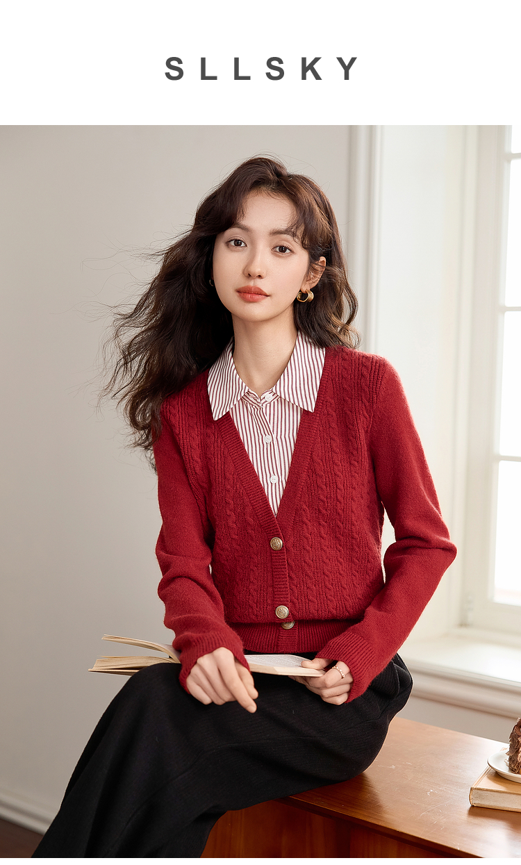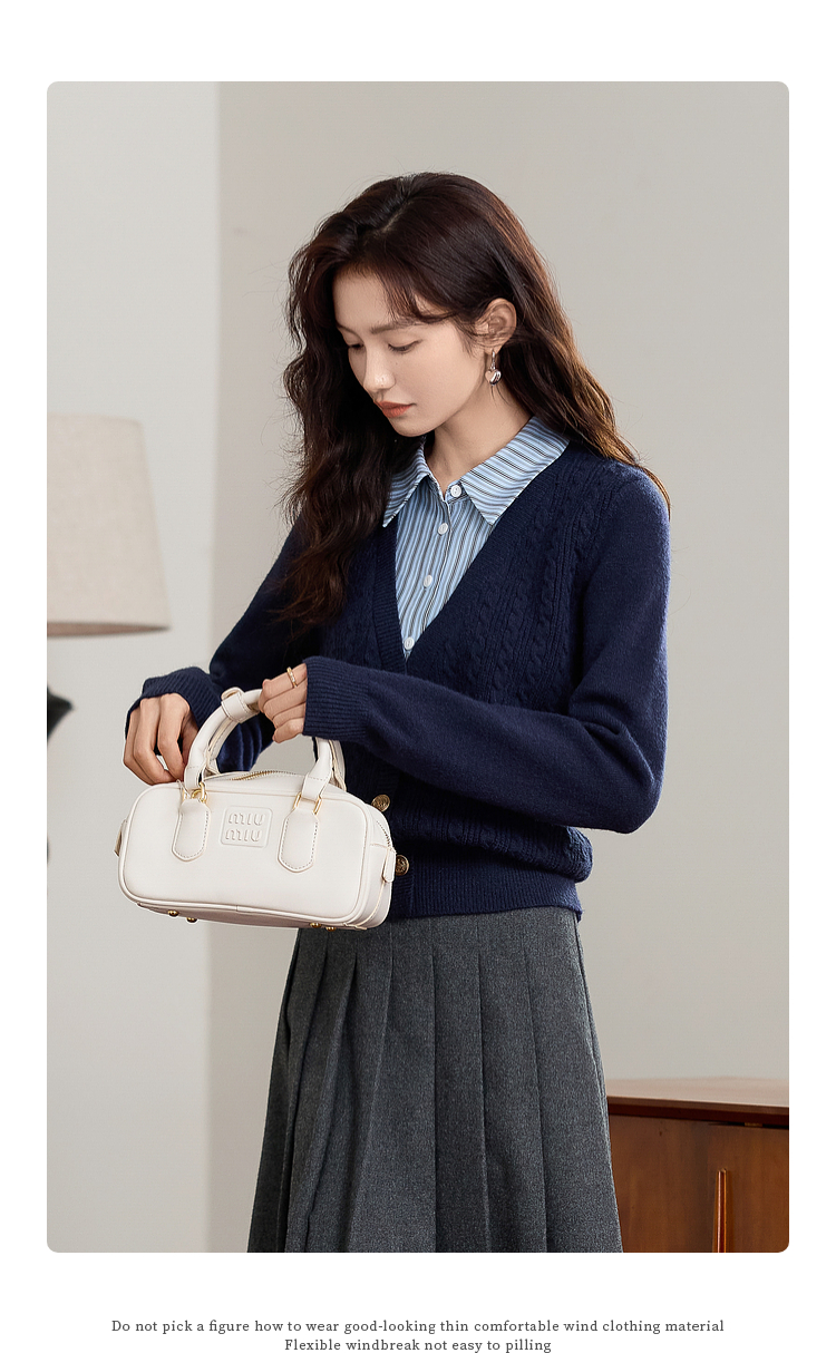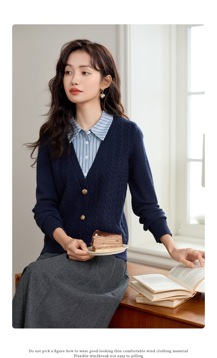 【年终特卖】熙世界秋冬款别致学院风条纹衬衫领假两件绞花针织衫毛衣