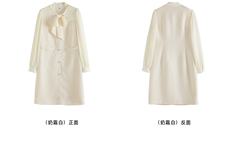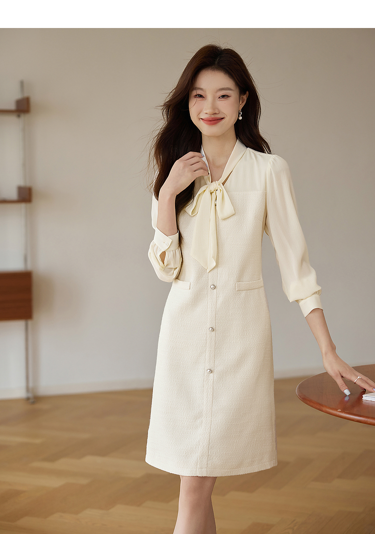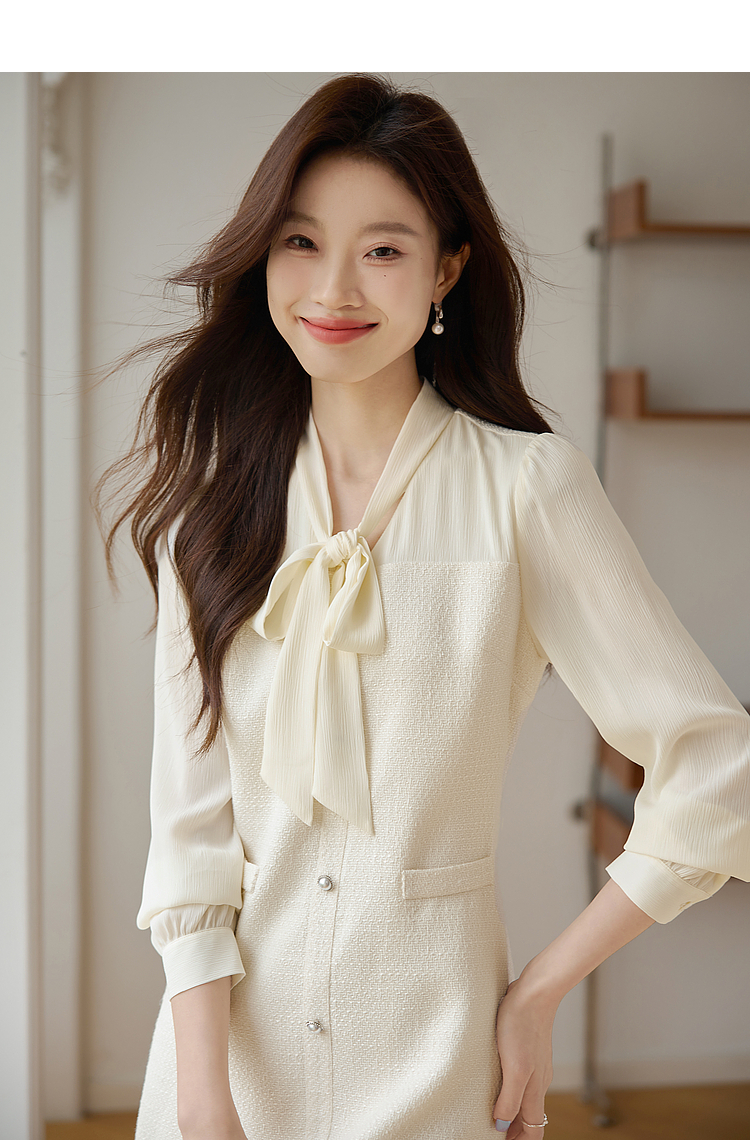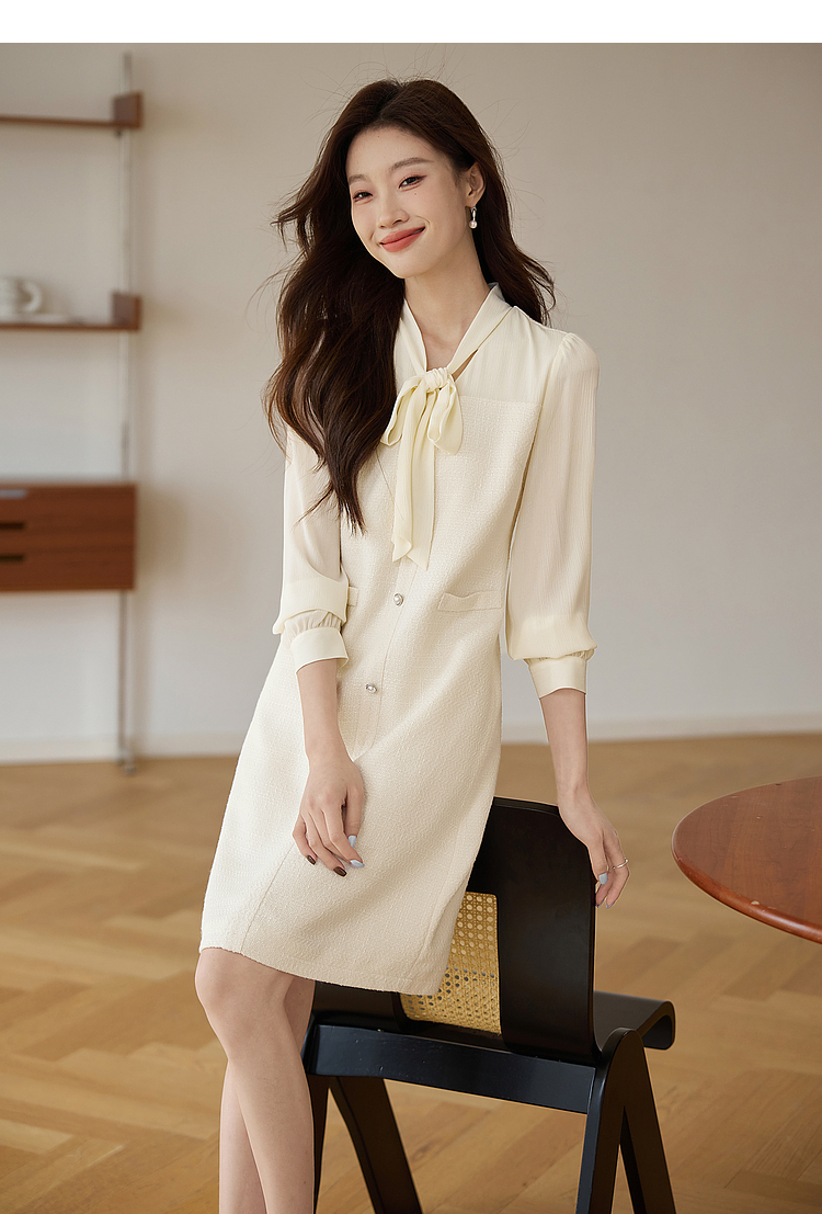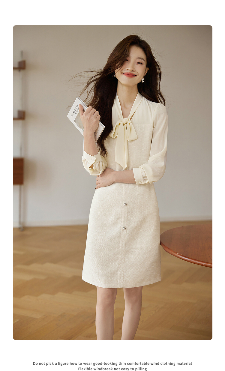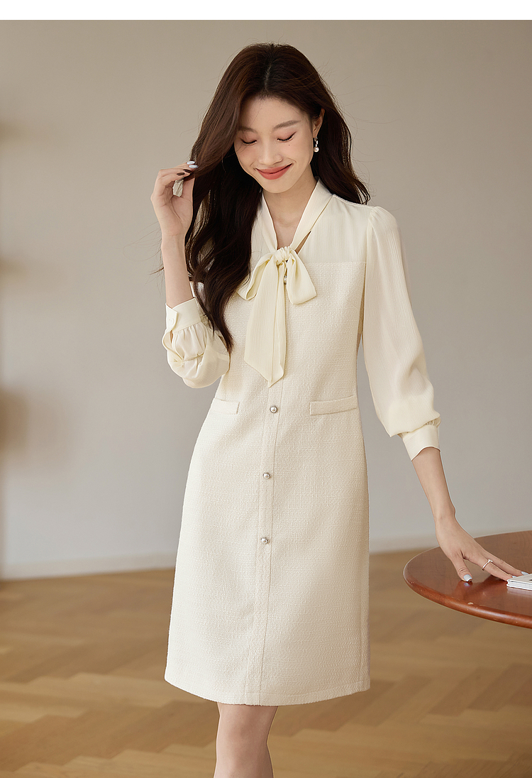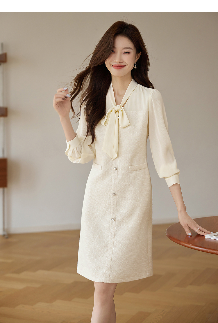 【专属特价】熙世界小香风蝴蝶结V领连衣裙秋装新款温柔法式气质长袖中长裙