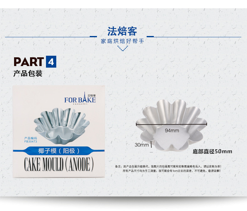 法焙客阳极椰子模 圆形花边蛋挞模具椰子蛋挞模 烘焙模具FB30473