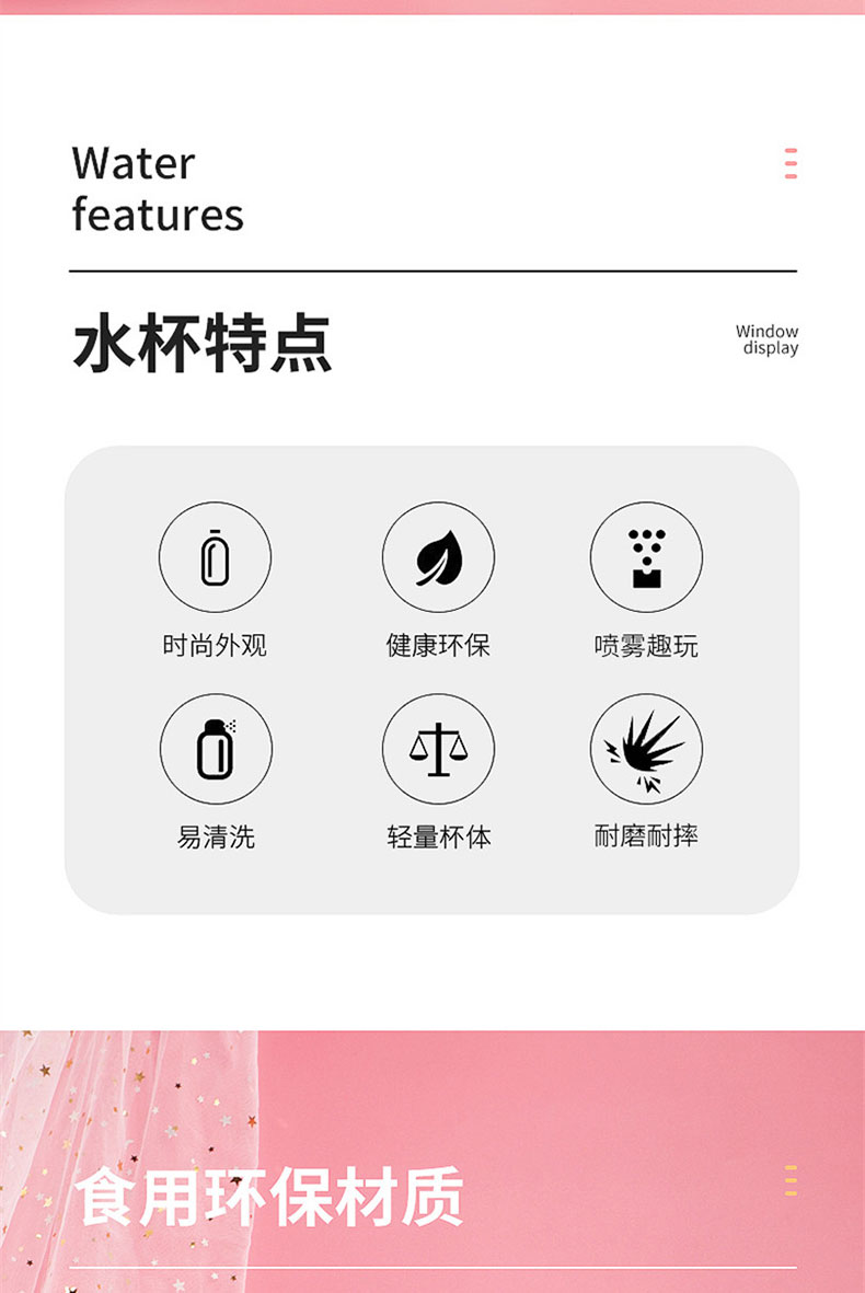 卡通运动喷雾水杯600ML