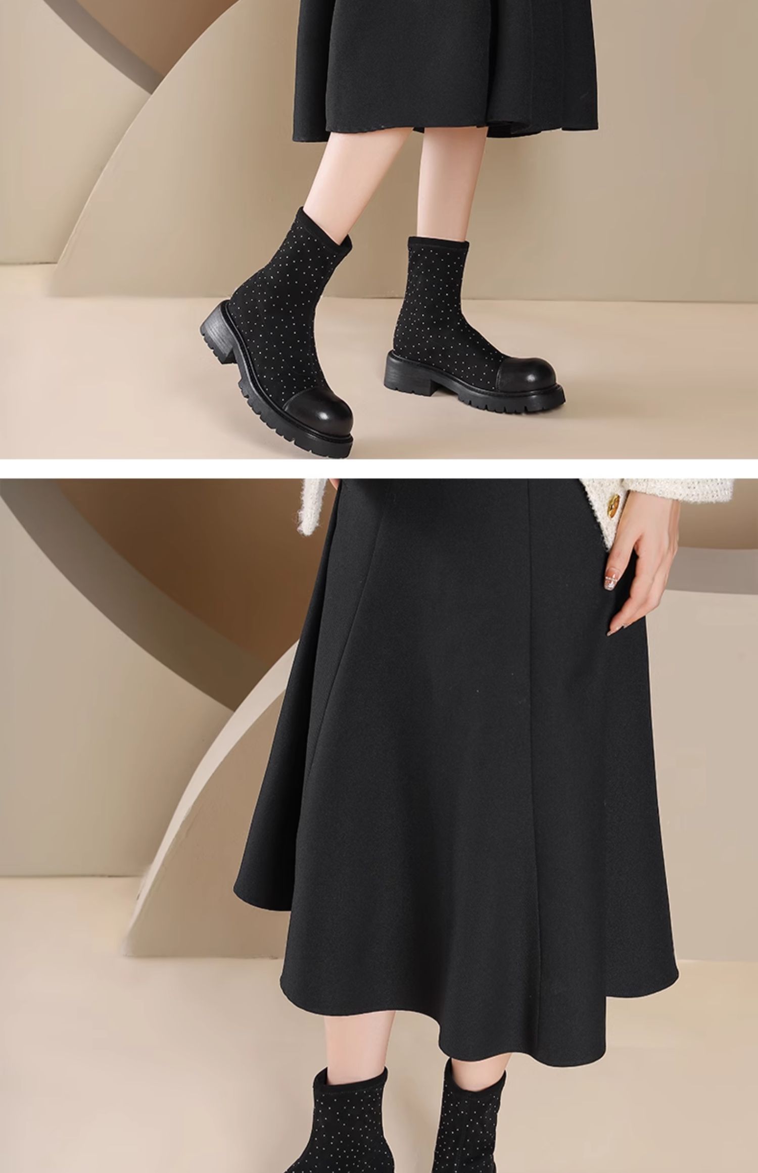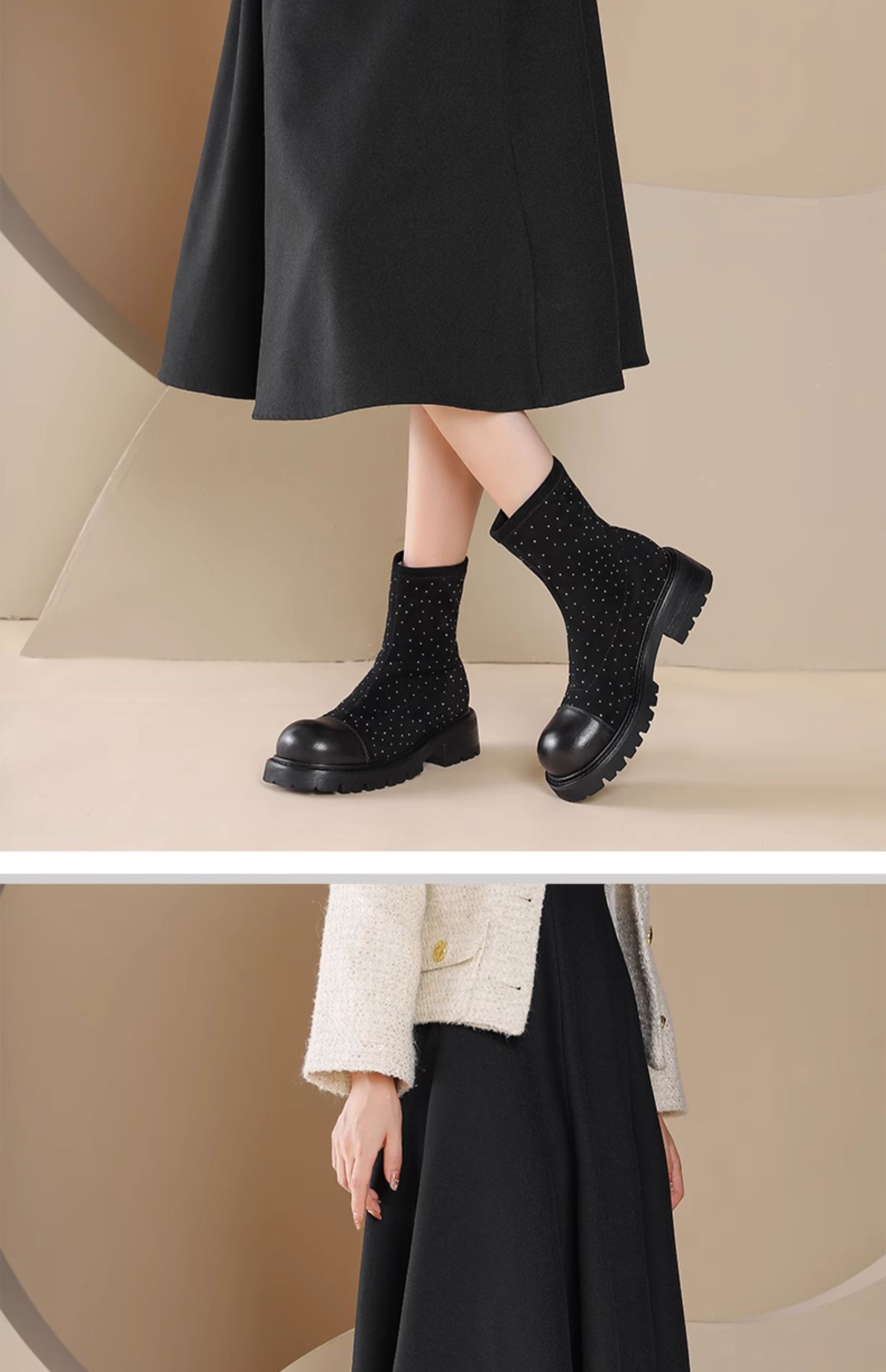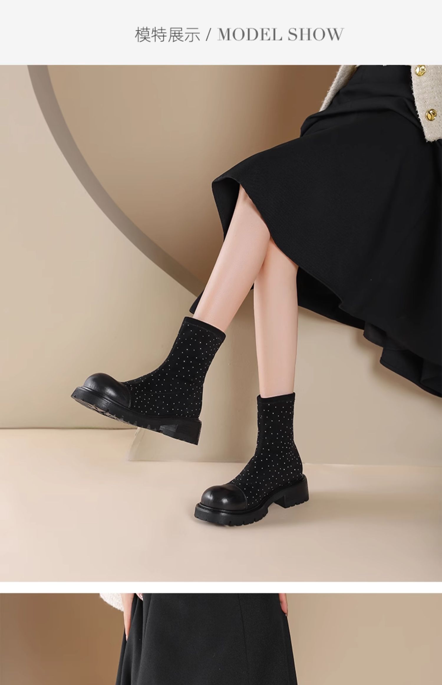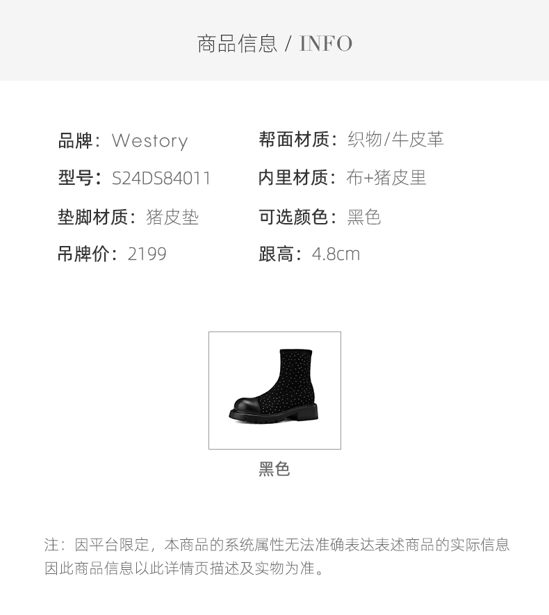 westory2024秋季新款英伦风厚底时尚百搭简约短筒复古靴女S24DS84011