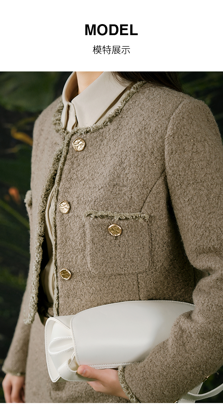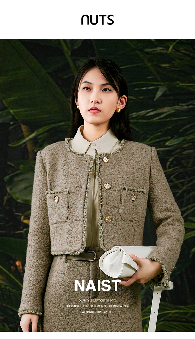 NUTS春秋季新款小香风气质直筒显瘦圆领短款外套女411041443