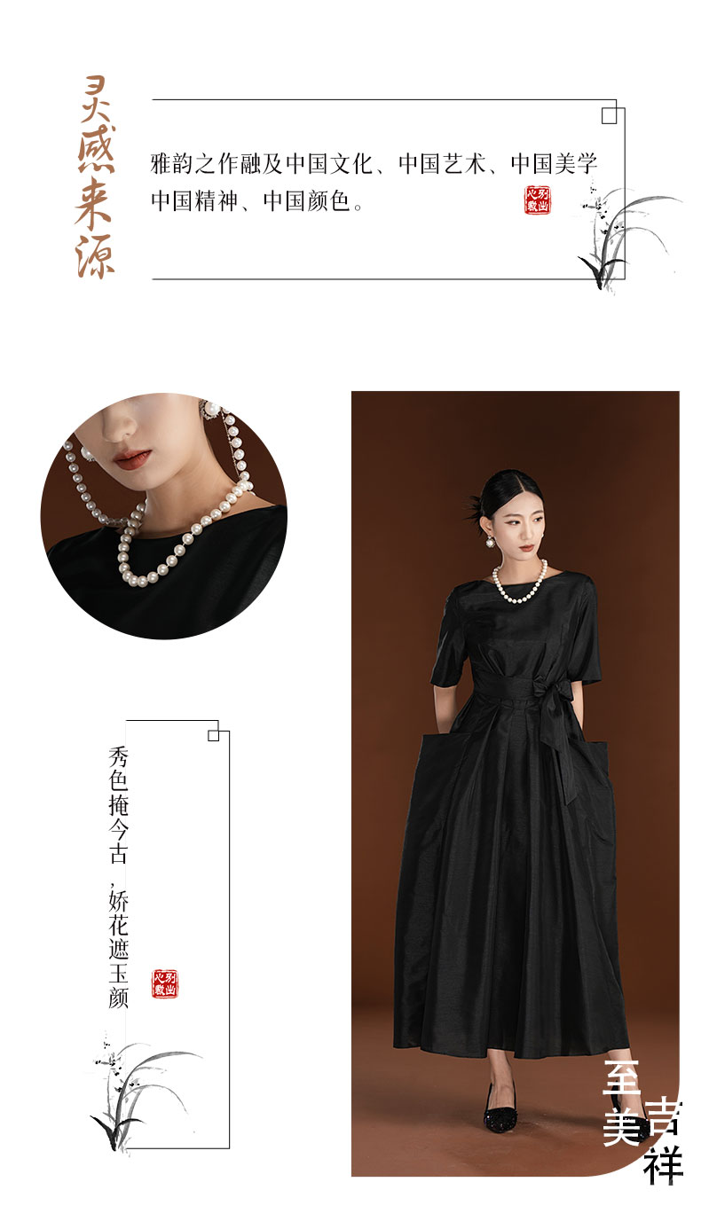 吉祥衣家新中式国风春夏新款裙子气质显瘦修身女装弦弹月连衣裙