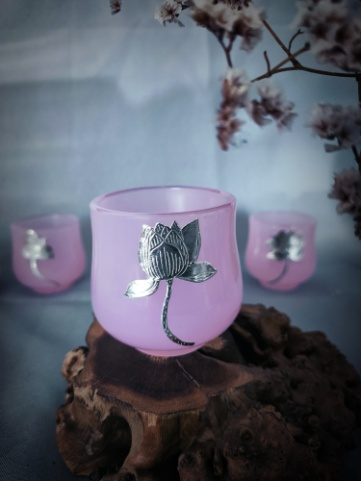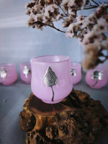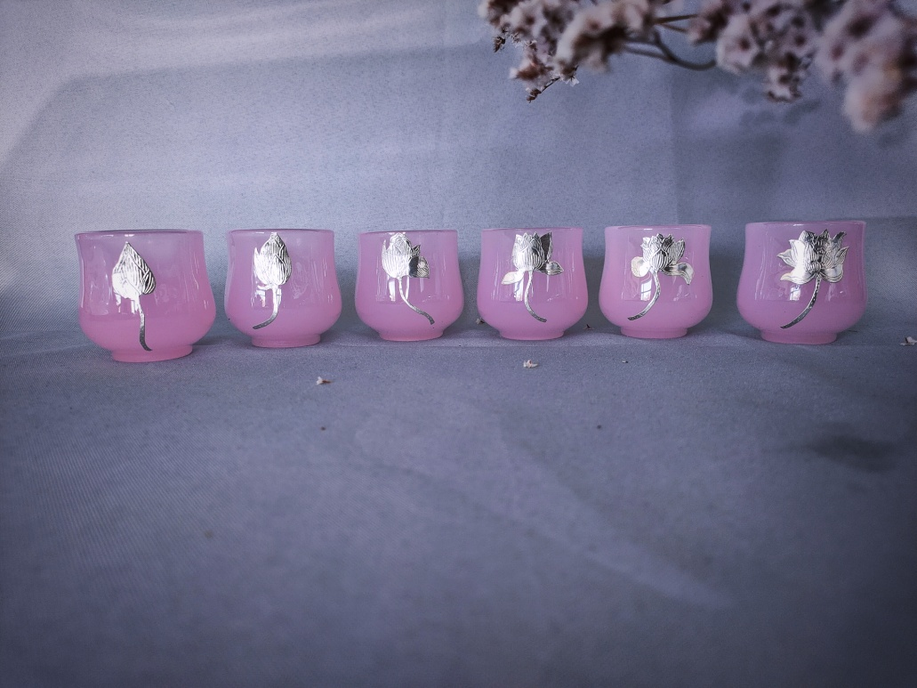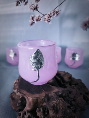 华艺银坊 绽放系列 粉玉瓷茶杯 纯银990
