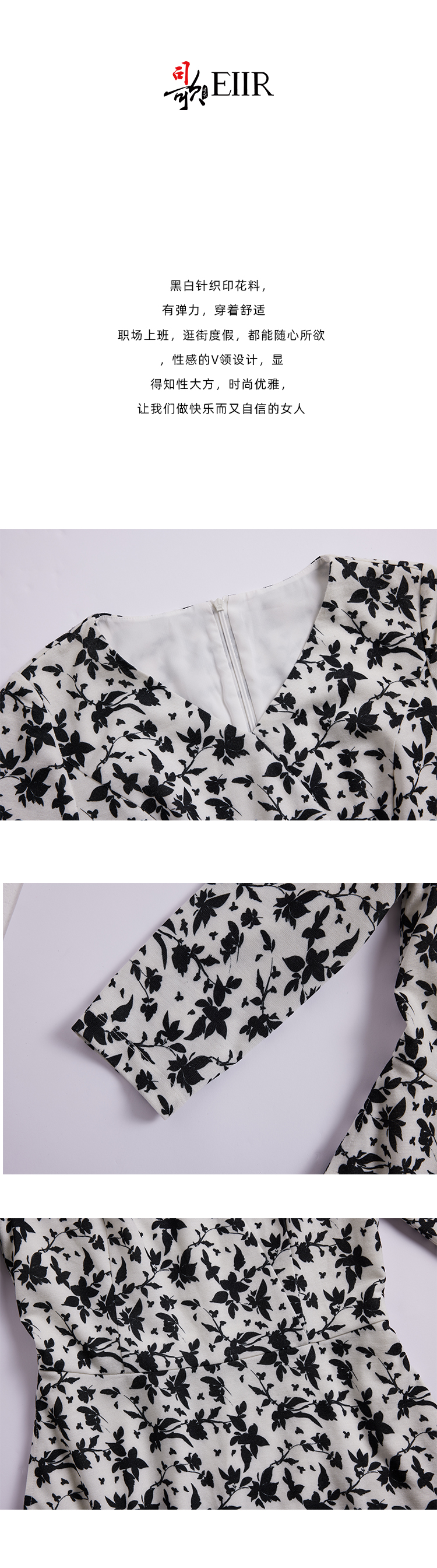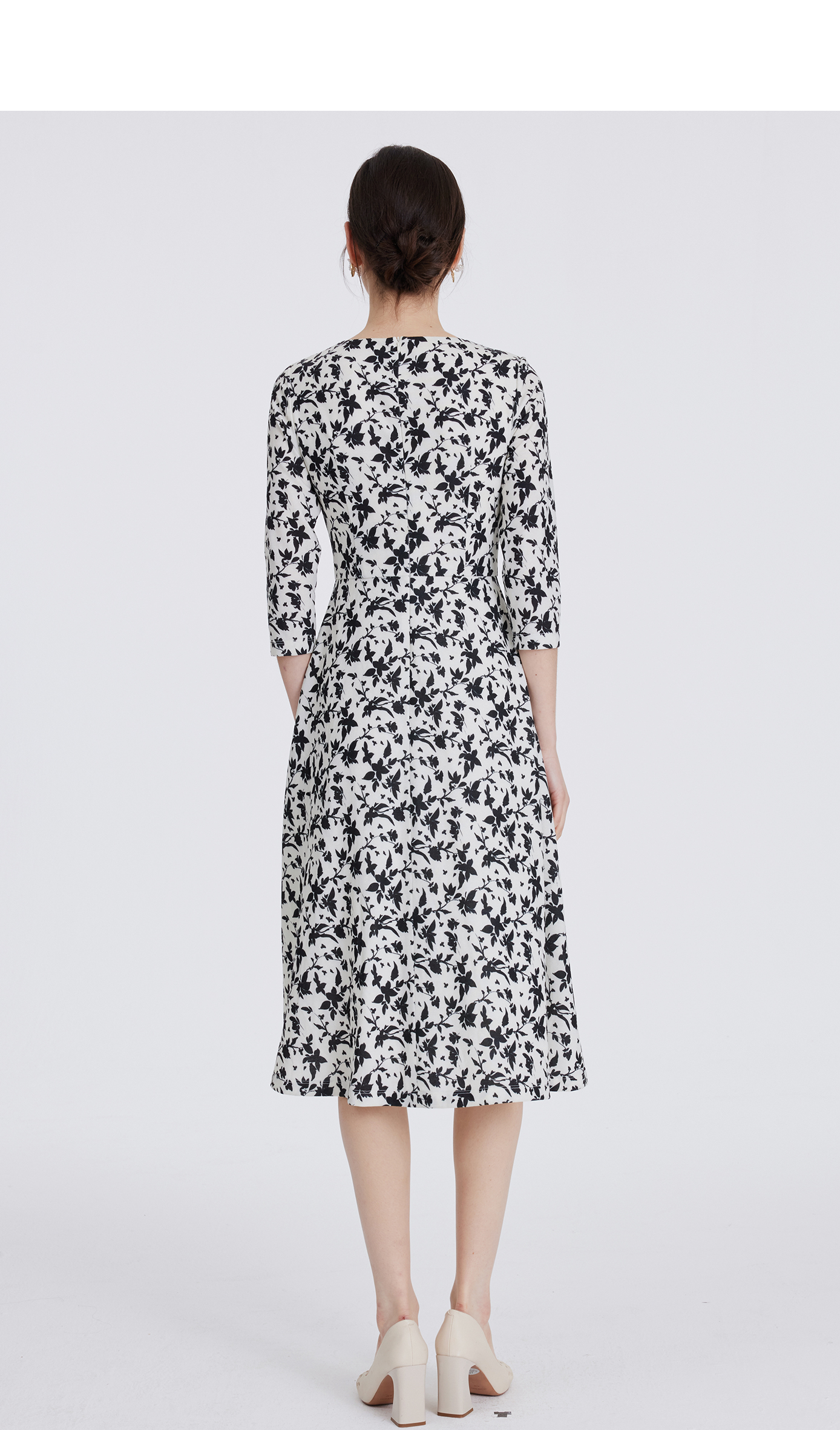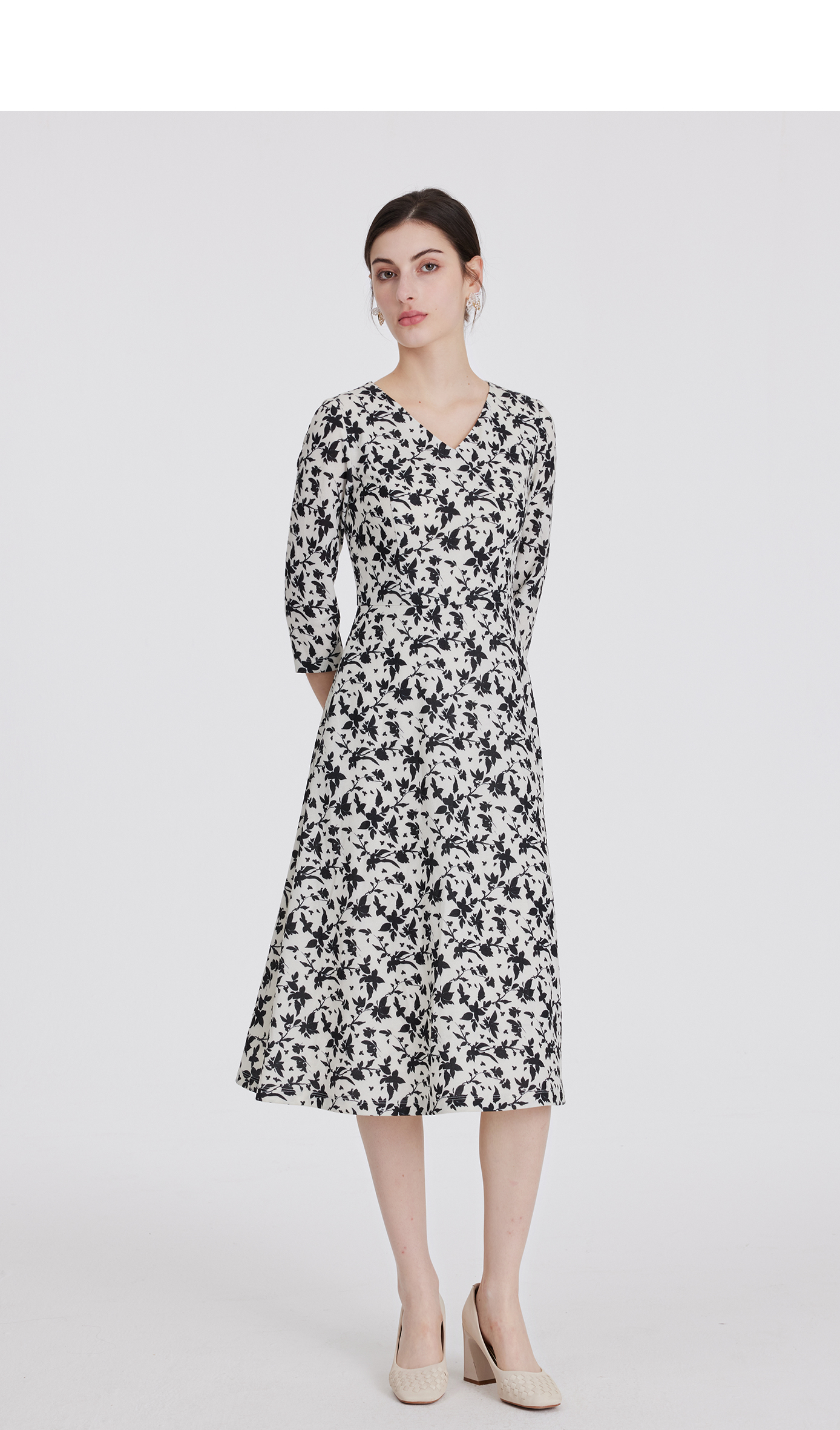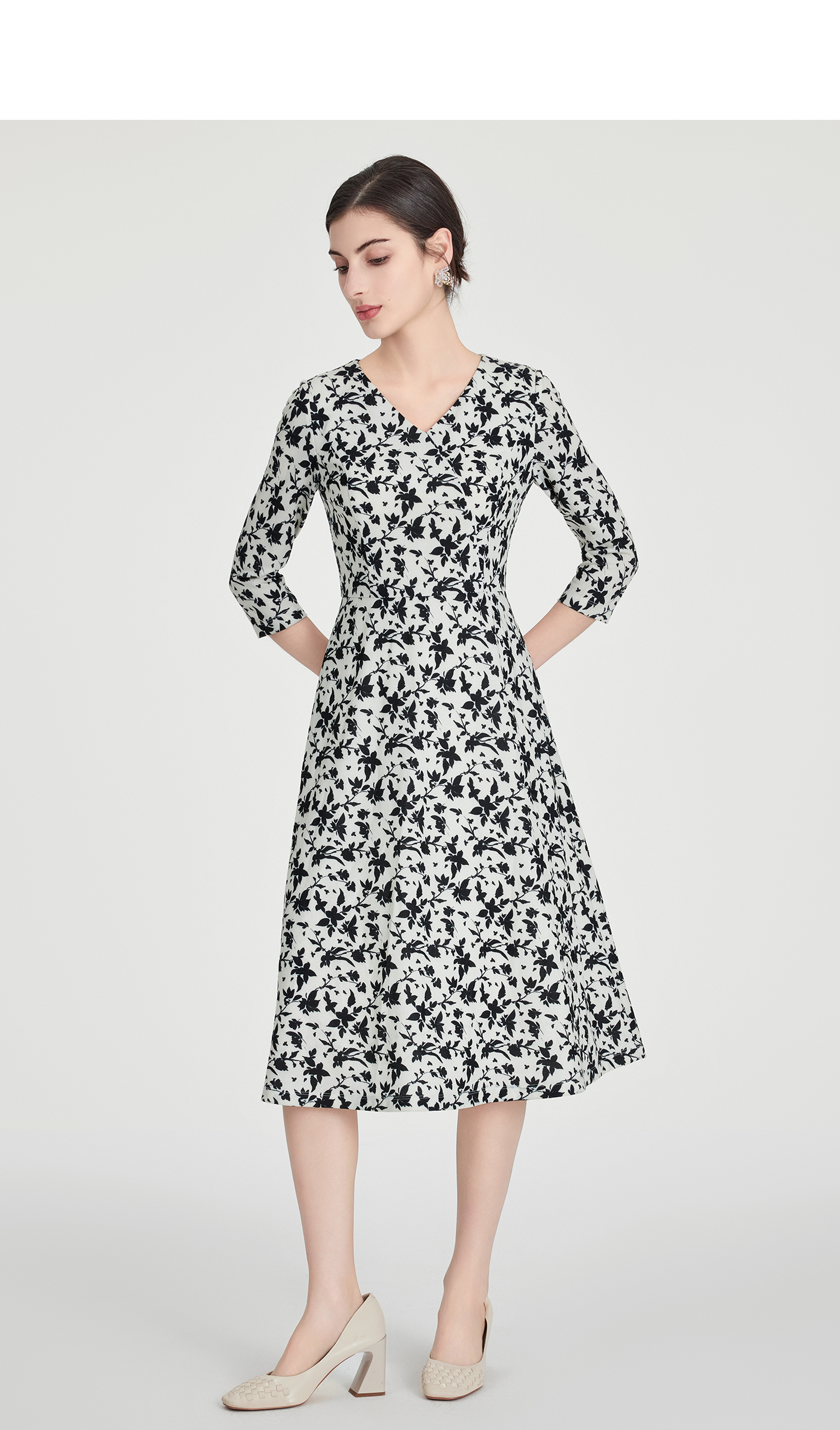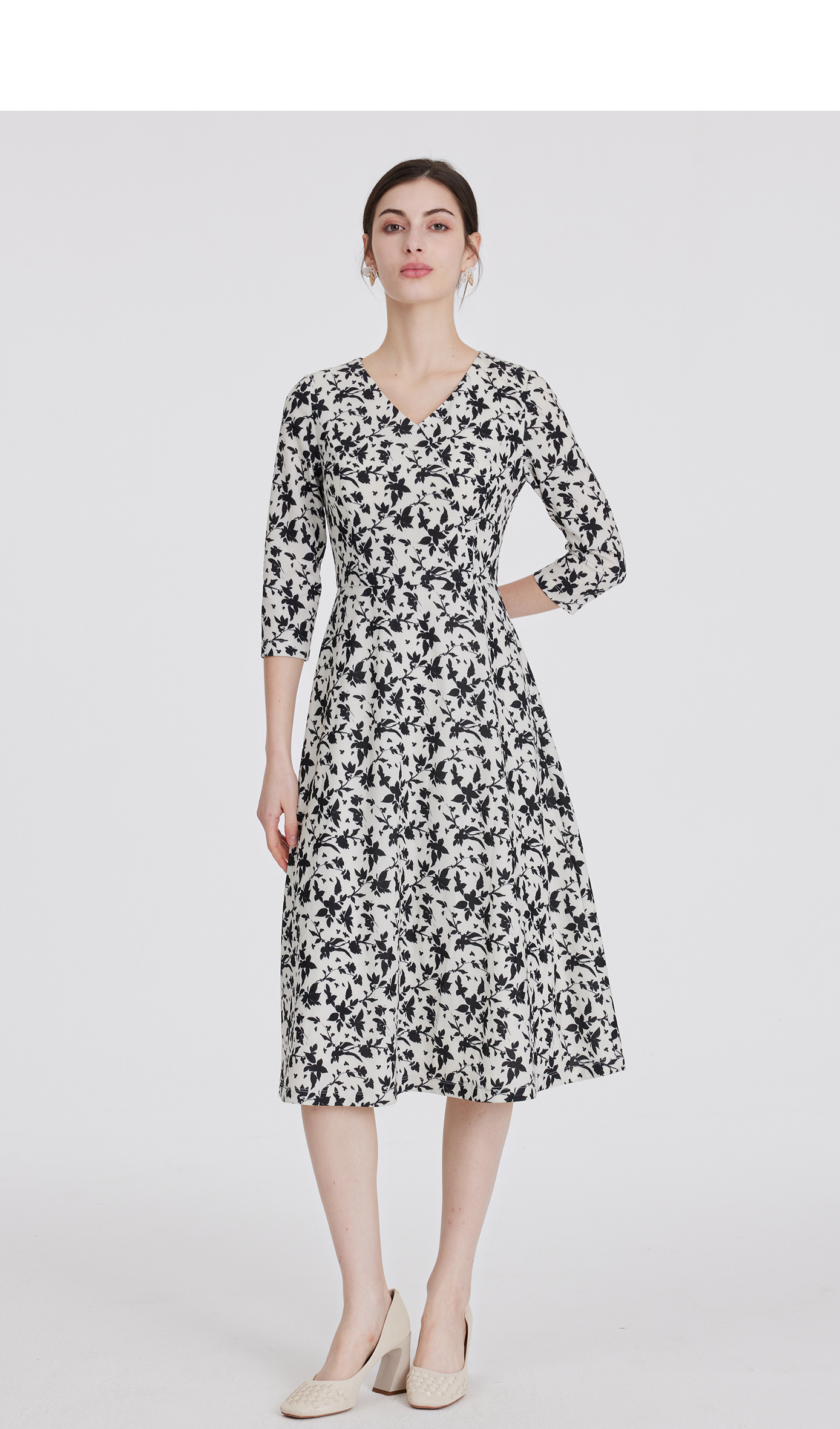 司歌v领七分袖连衣裙春秋端庄知性A891217X