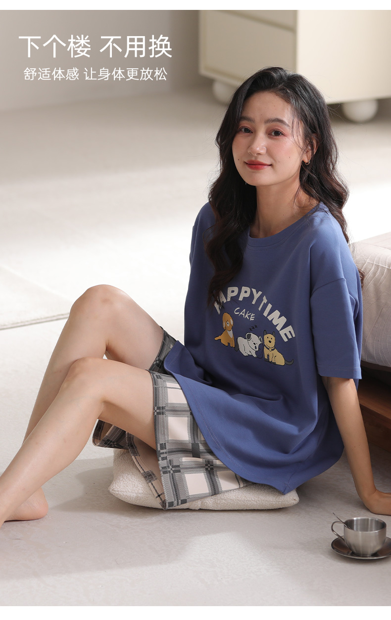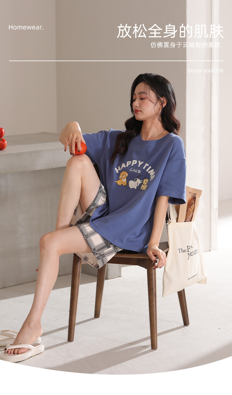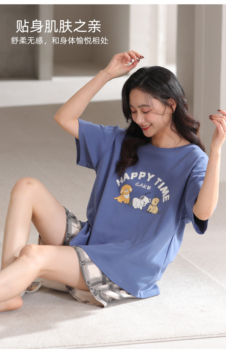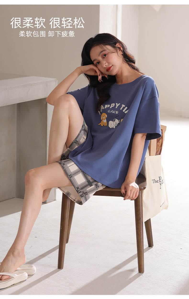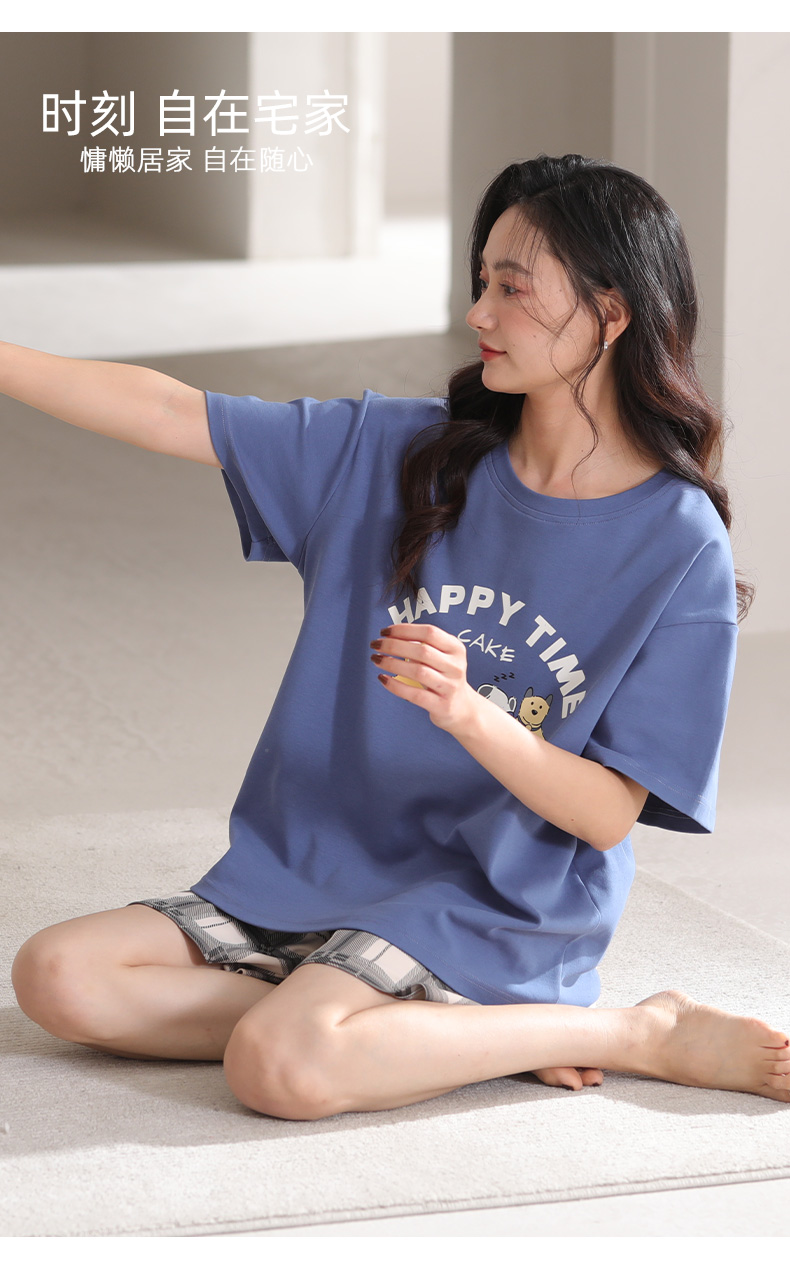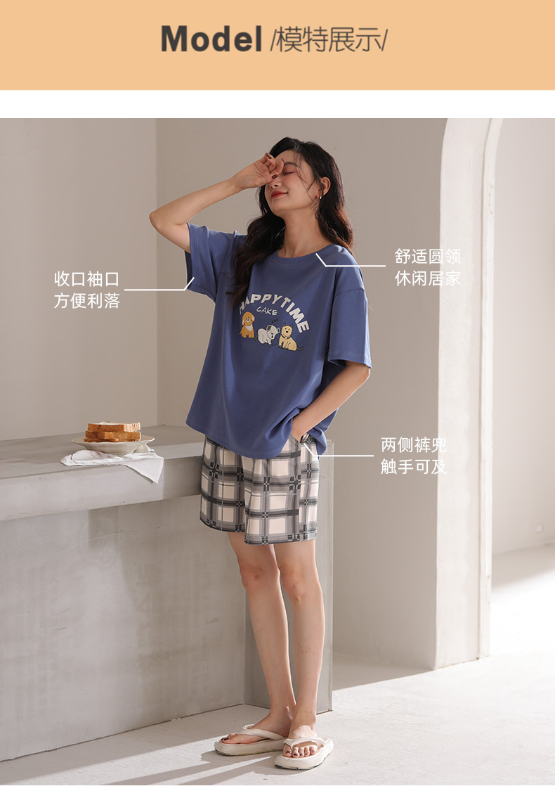 【清凉迎夏】洁丽雅新品女款家居服短袖短裤套装可爱卡通套头睡衣