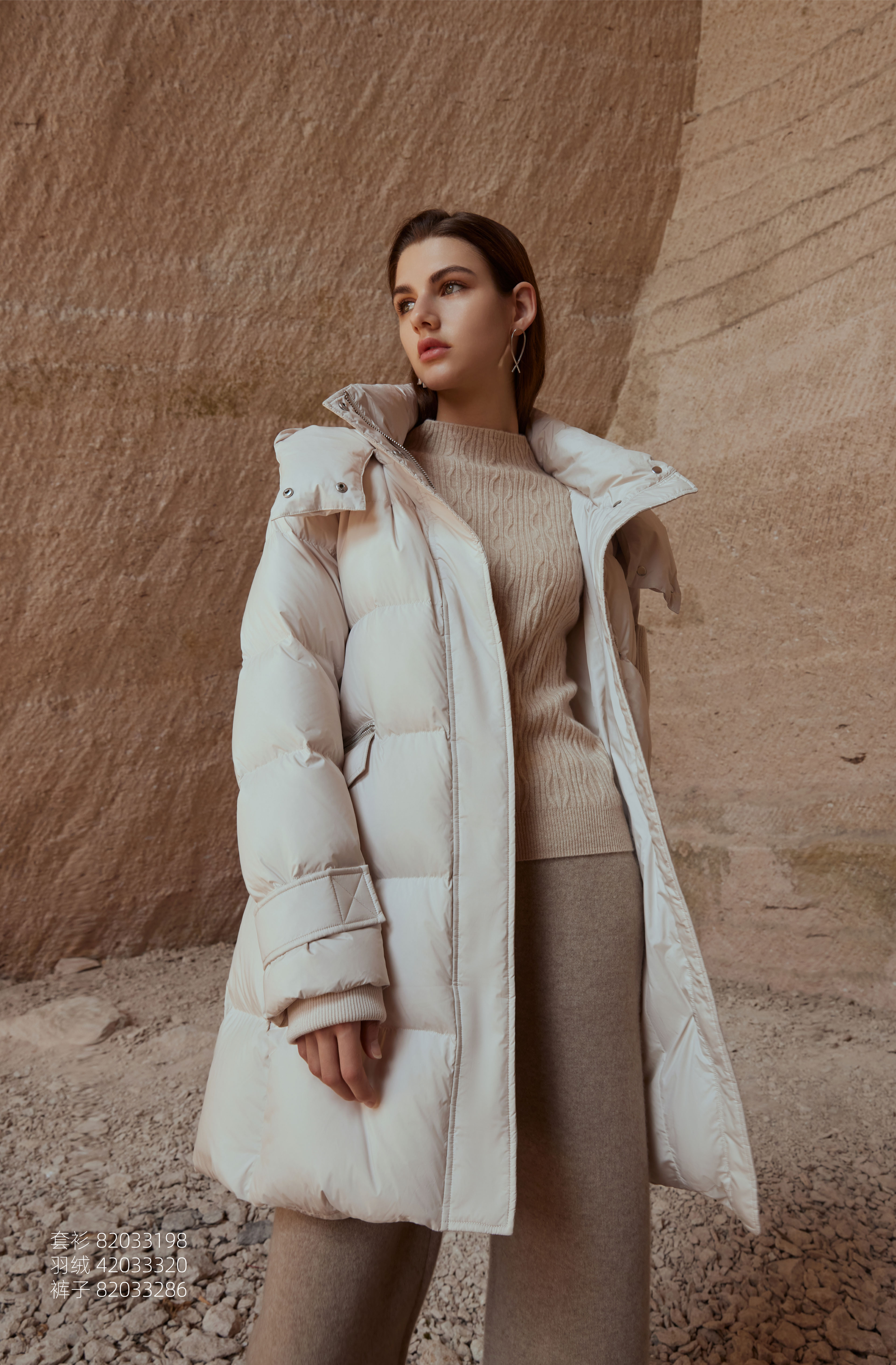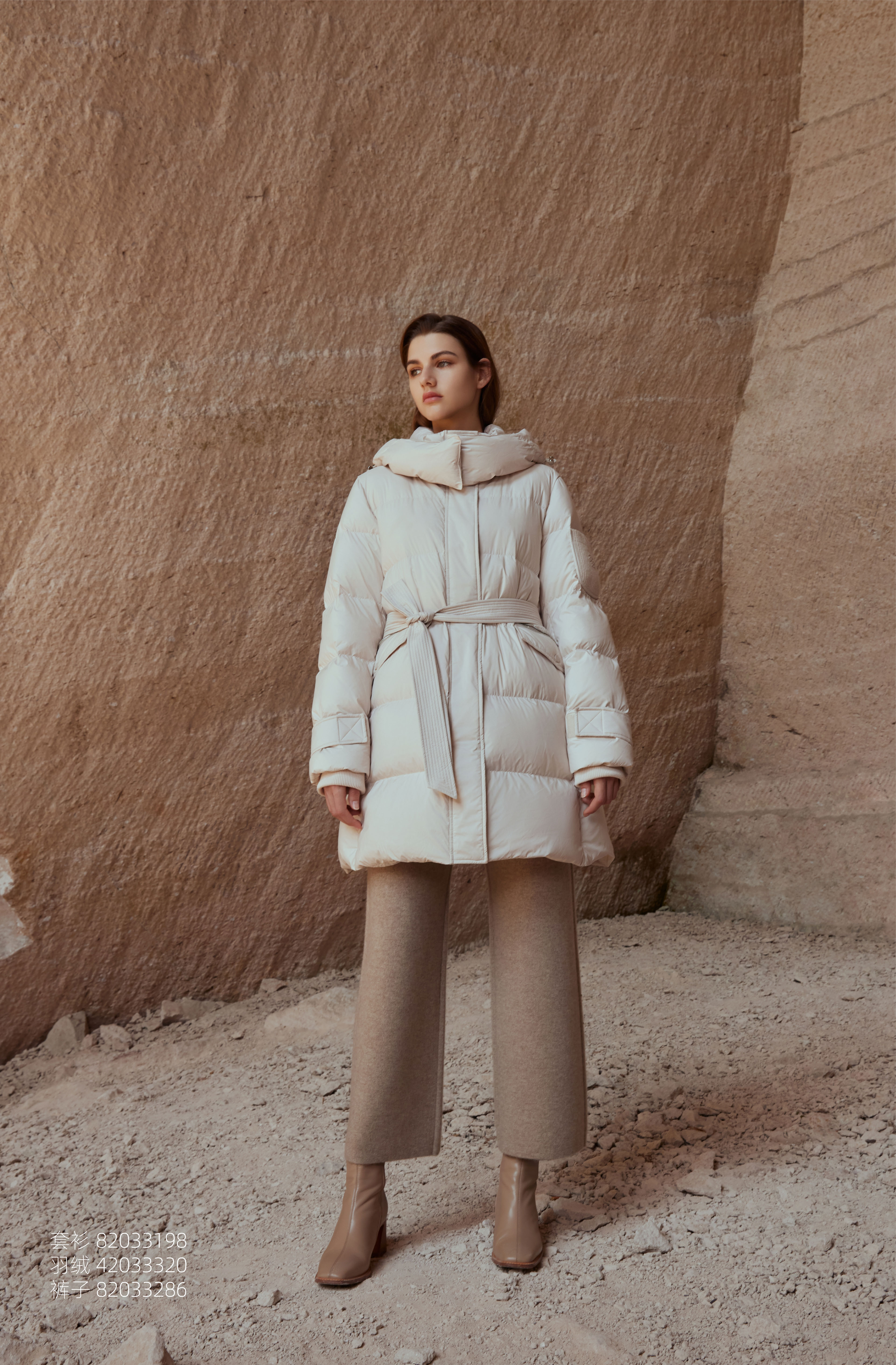 【中长款女士90白鹅绒服】23年冬季新品女士中长款连帽羽绒服腰带收腰外套
