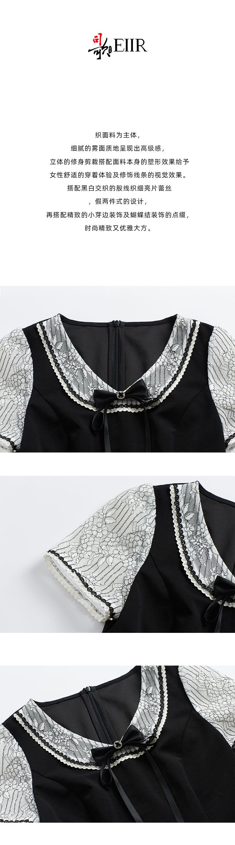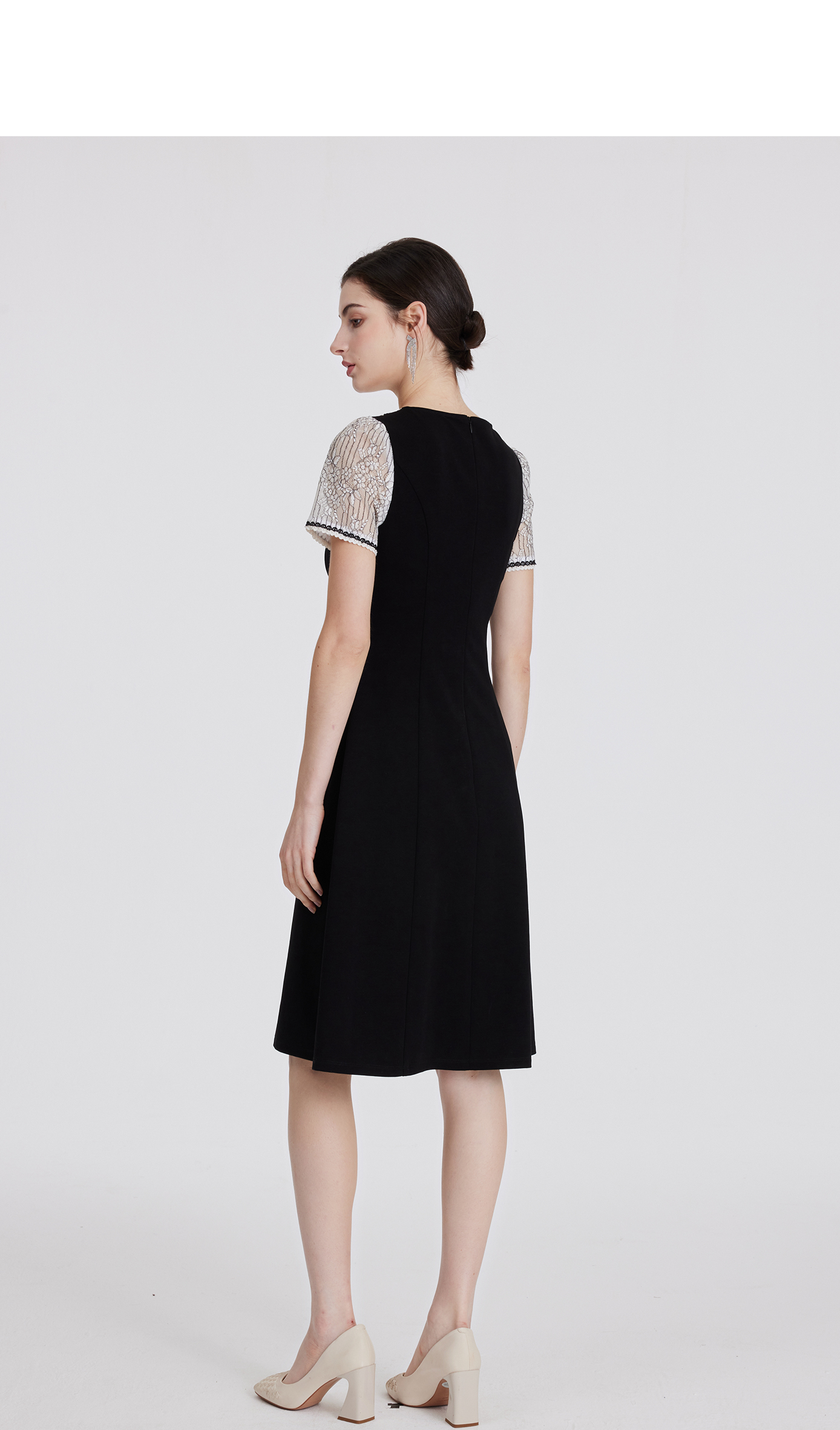 司歌刺绣印花连衣裙圆领短袖收腰优雅端庄A891054X