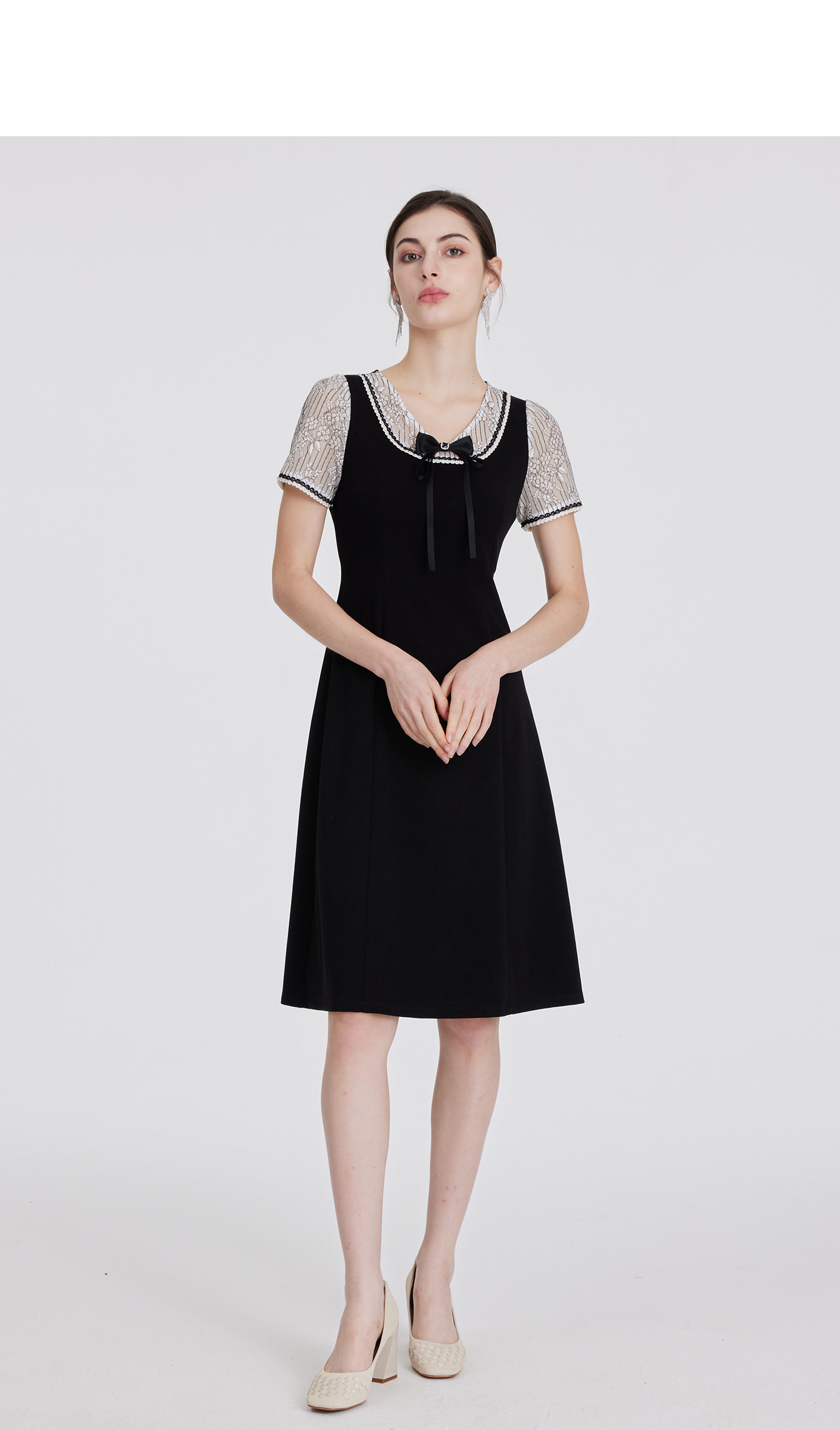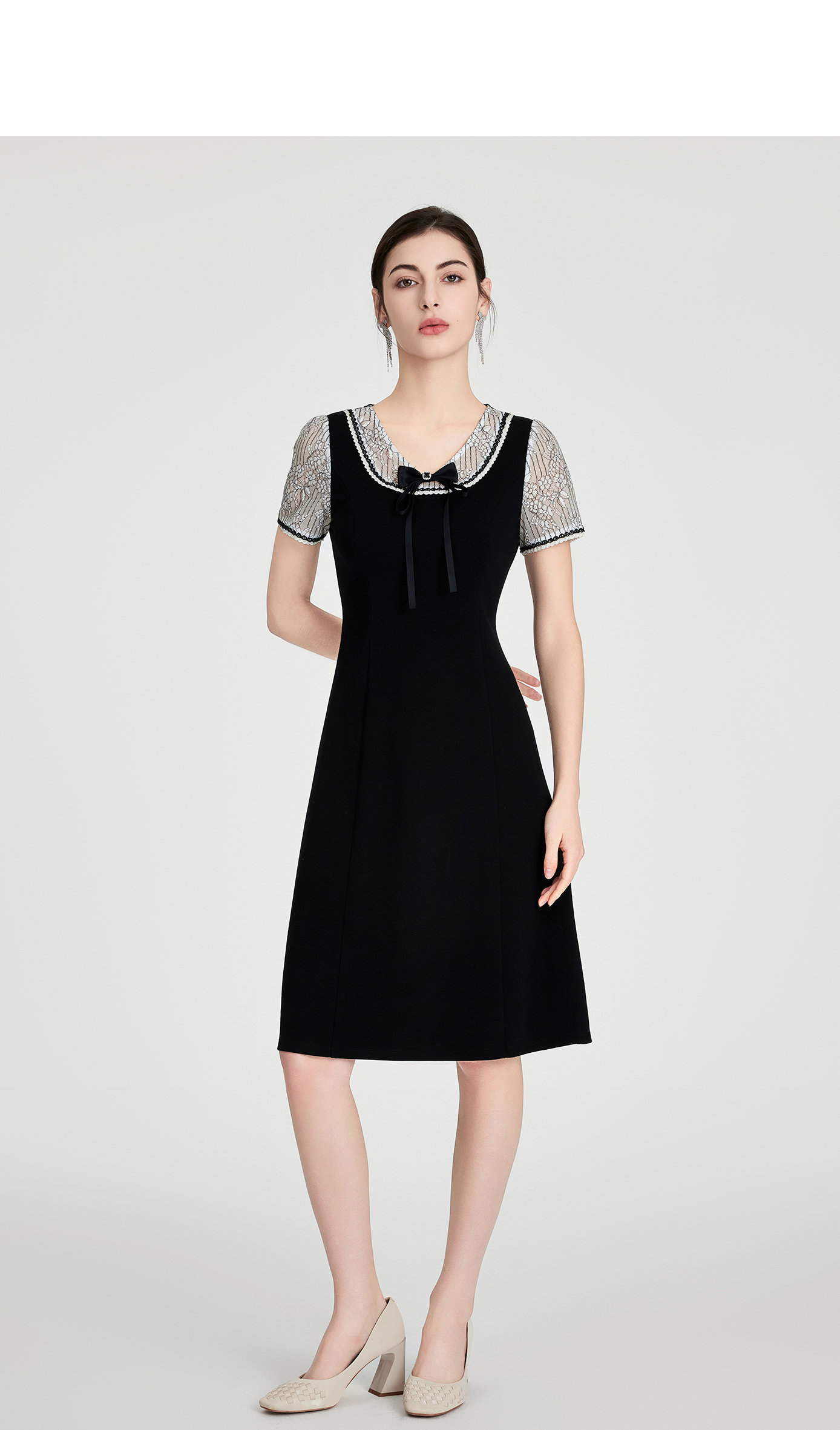 司歌弹力短袖连衣裙收腰小黑裙A891073X