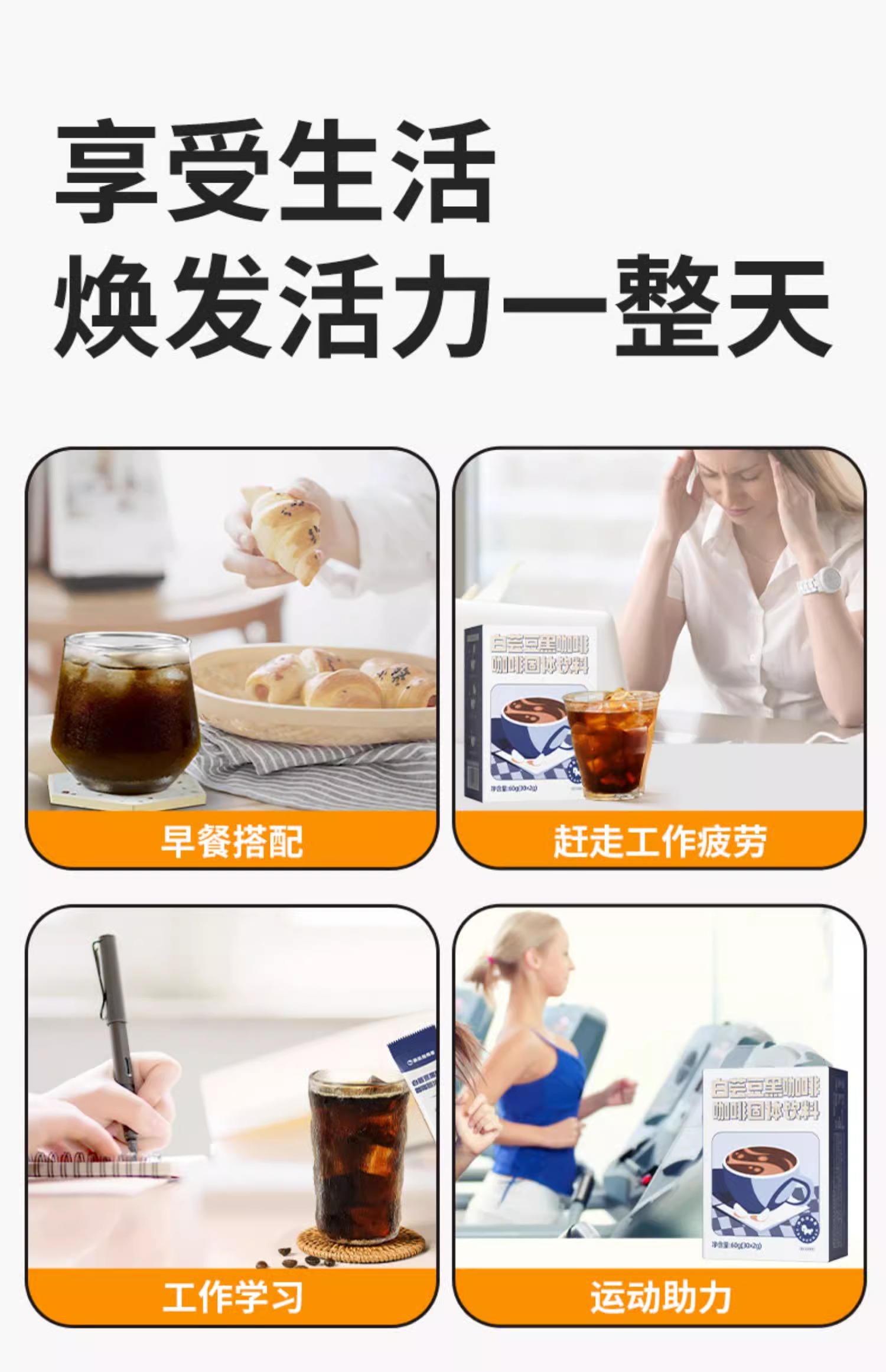 【暴肌独角兽】黑咖啡粉苹果C美式绿咖速溶无蔗糖0脂袋装白芸豆果咖啡